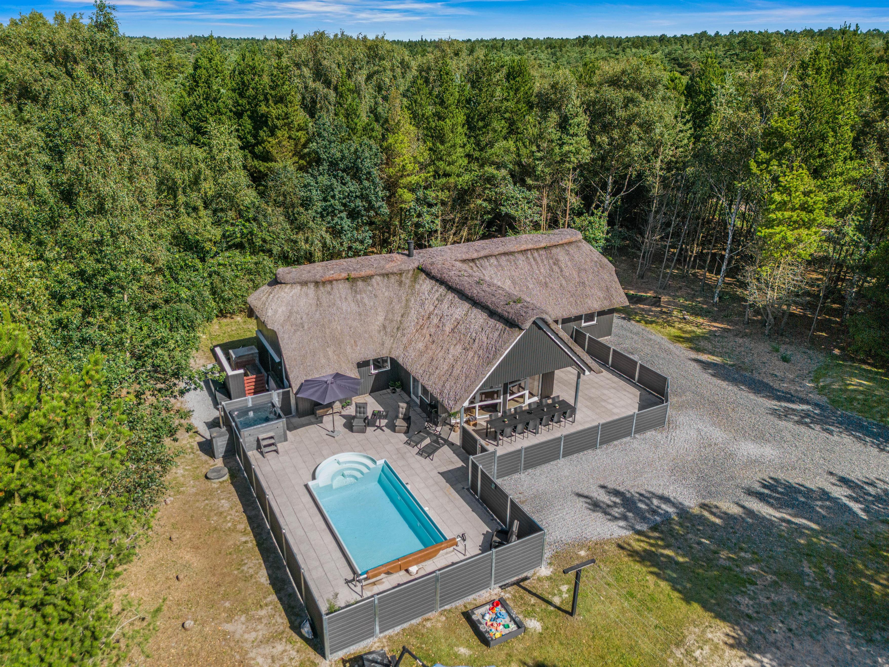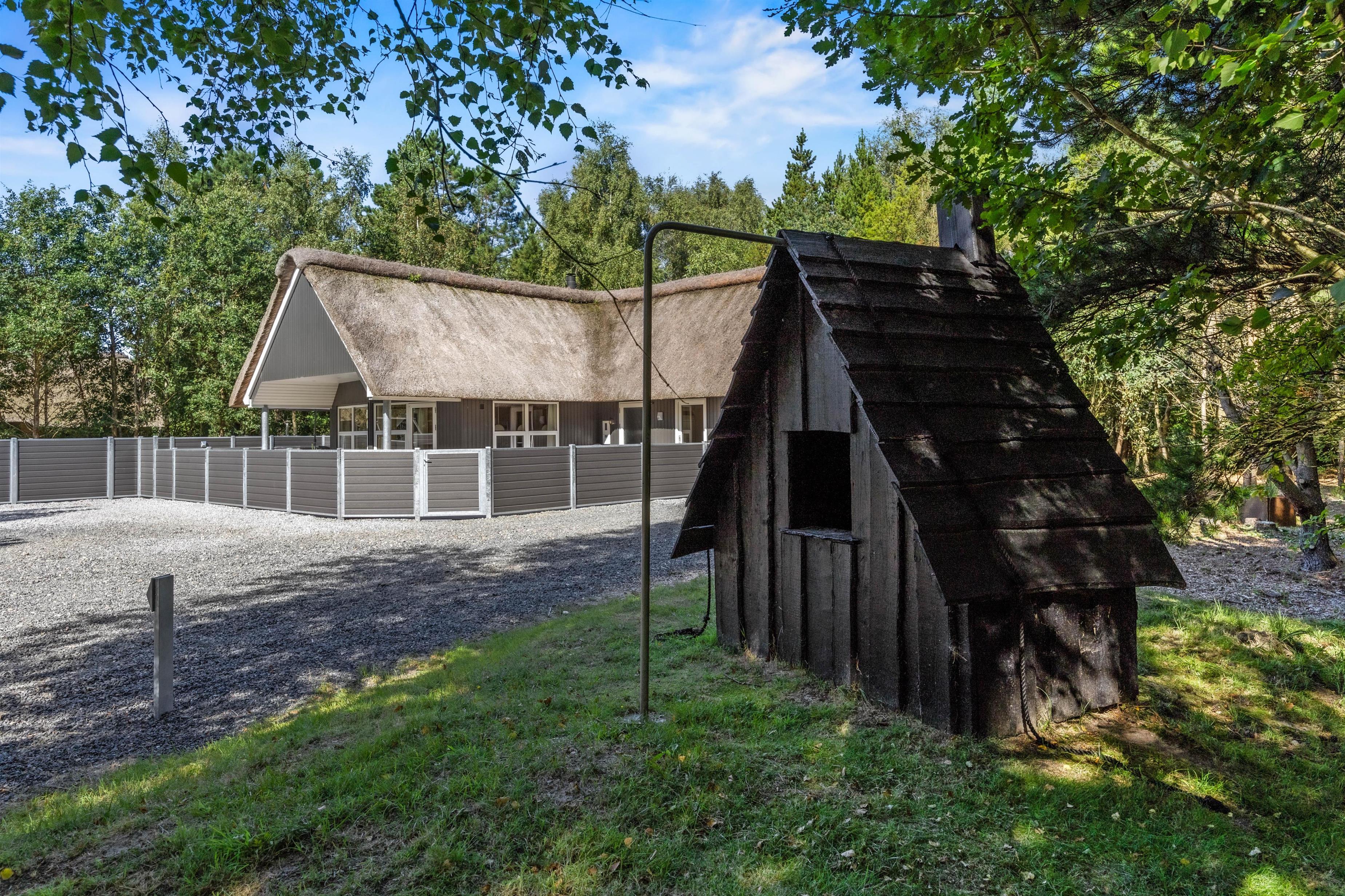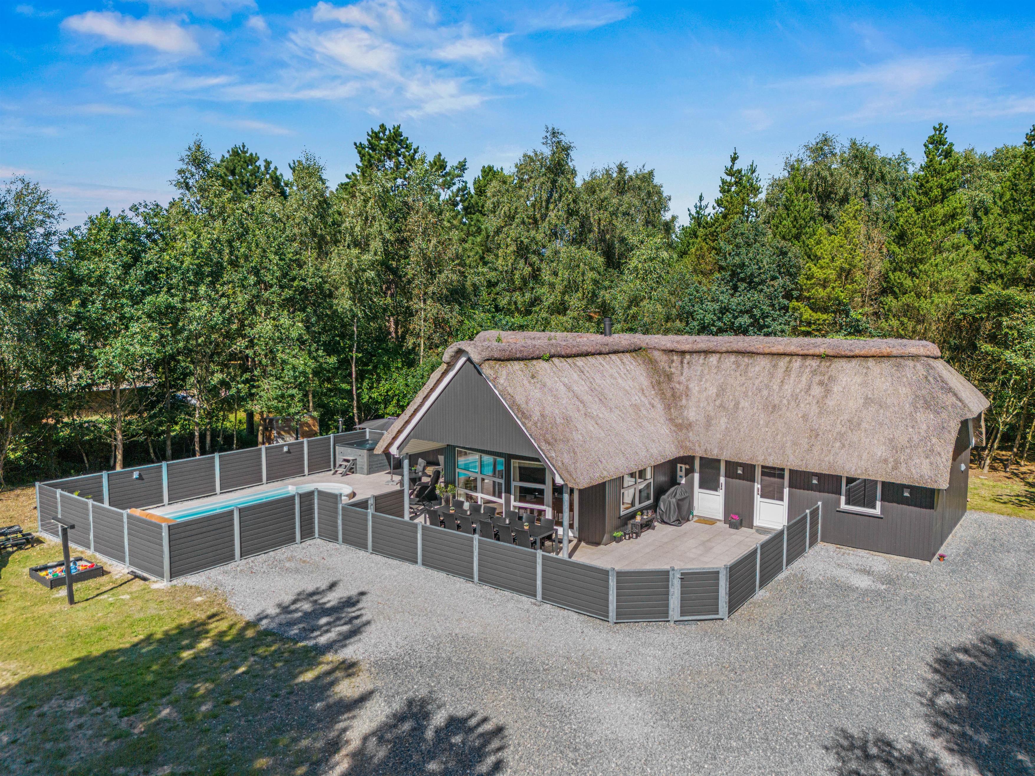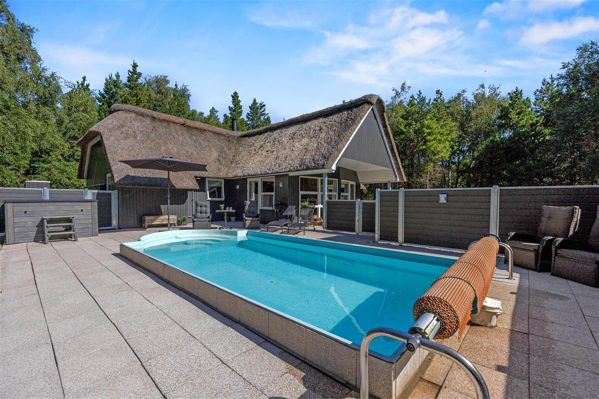 Dream of holidaying in a cosy thatched-roof holiday home set in beautiful natural grounds? Then Rylen 2 is the perfect spot. Renovated in 2023, this holiday home offers excellent comfort and relaxation features. You can enjoy the outdoor swimming pool and hot tub, and even play volleyball. If you prefer indoor relaxation, there's another whirlpool, sauna and wood-burning stove waiting for you.