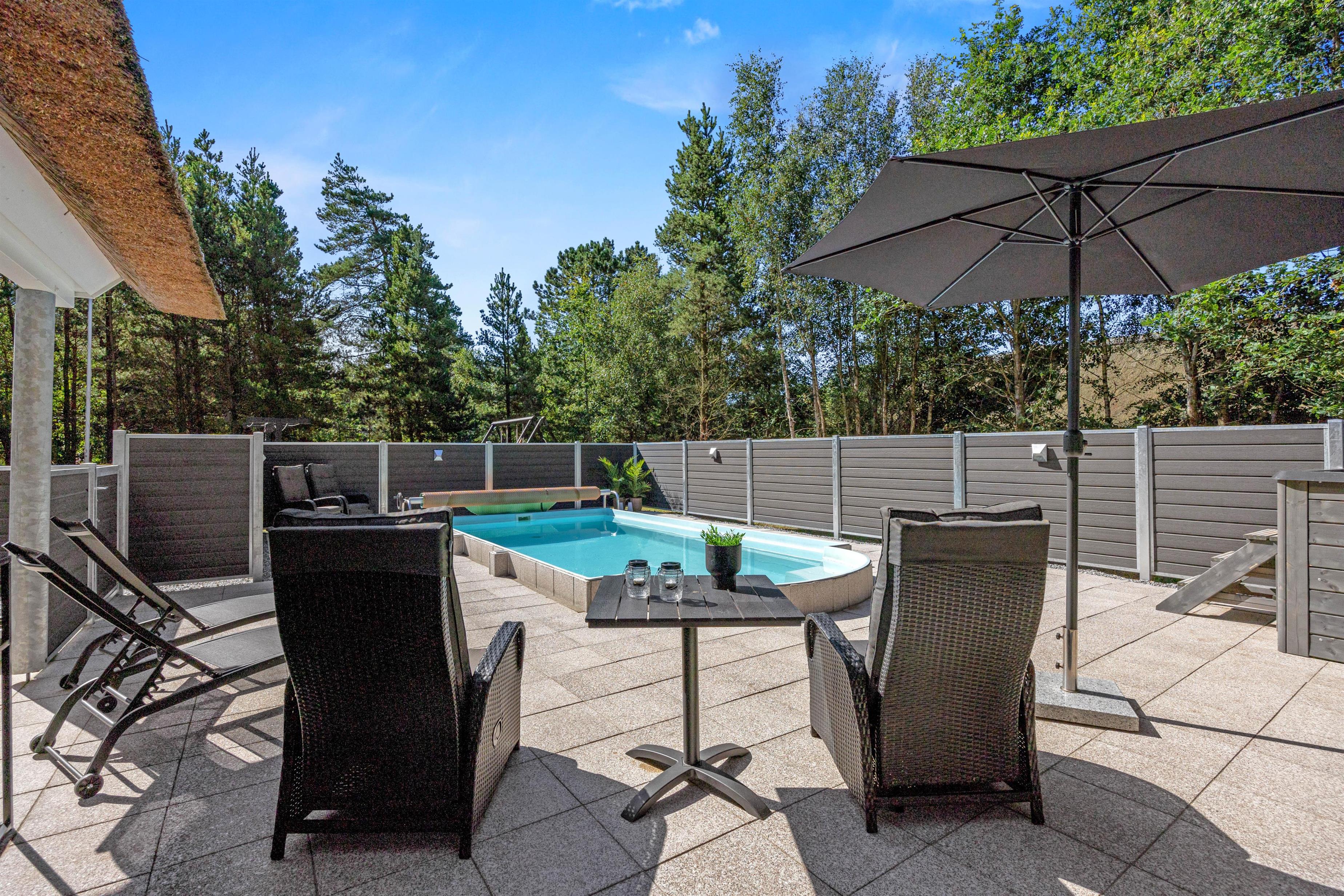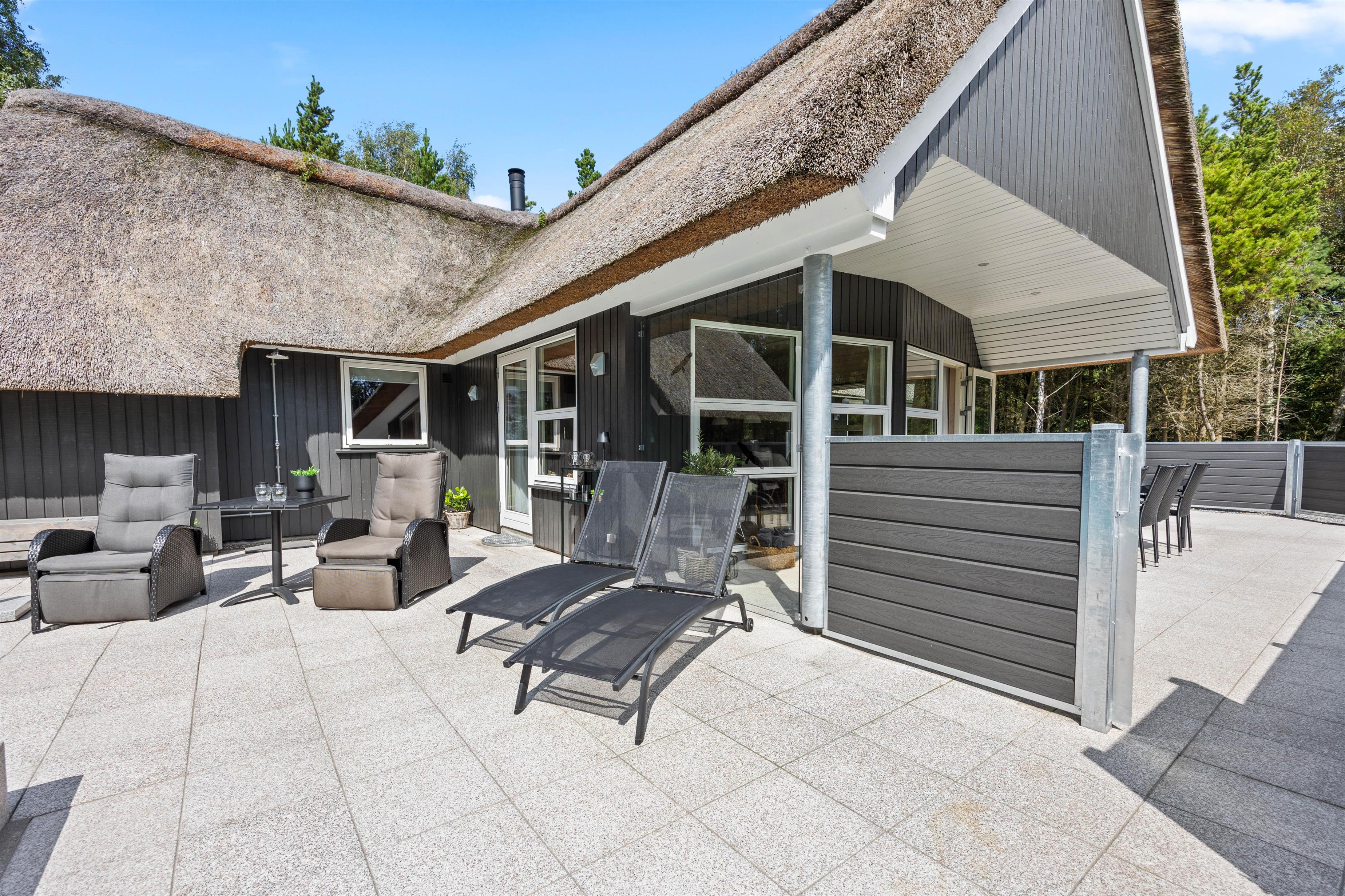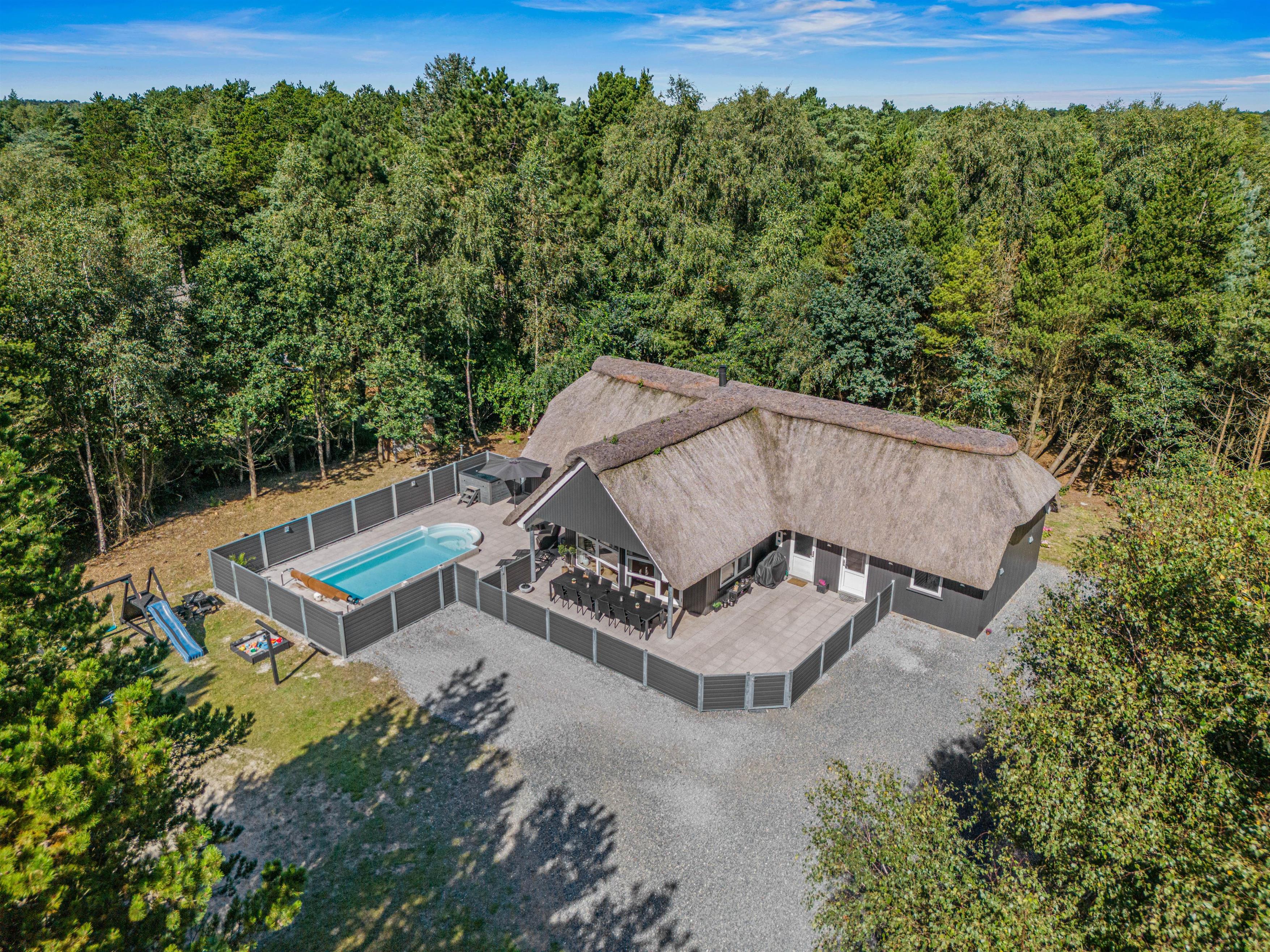 Dream of holidaying in a cosy thatched-roof holiday home set in beautiful natural grounds? Then Rylen 2 is the perfect spot. Renovated in 2023, this holiday home offers excellent comfort and relaxation features. You can enjoy the outdoor swimming pool and hot tub, and even play volleyball. If you prefer indoor relaxation, there's another whirlpool, sauna and wood-burning stove waiting for you.