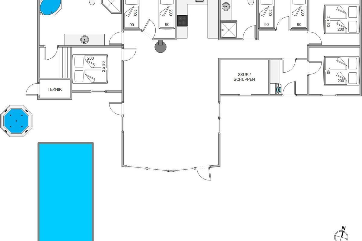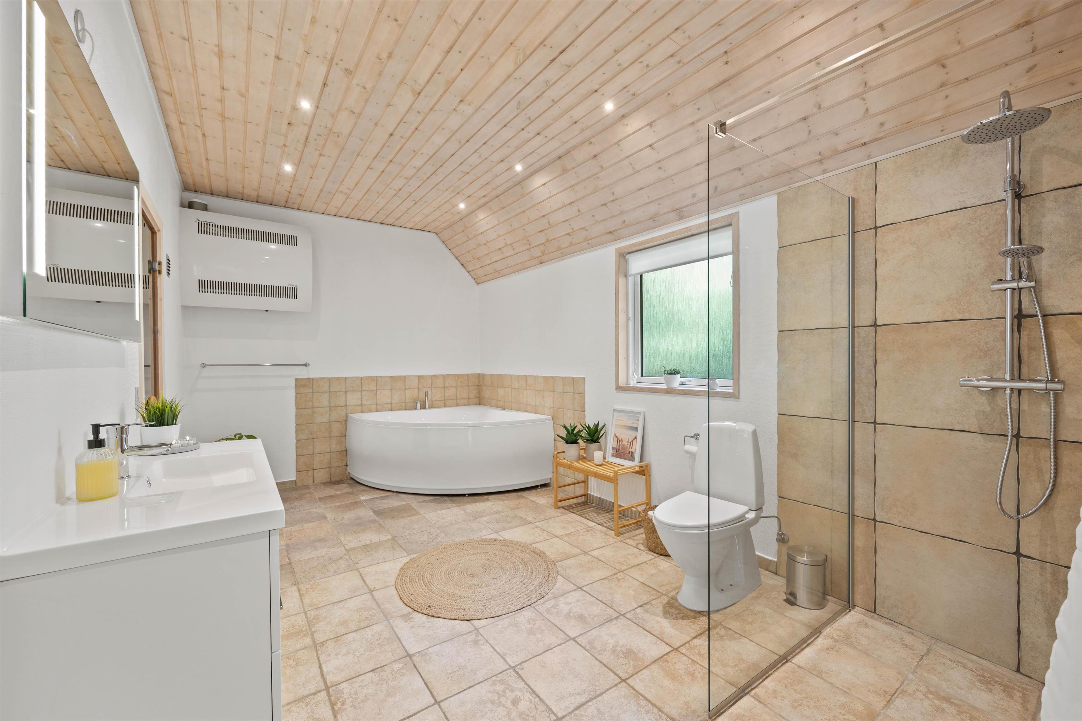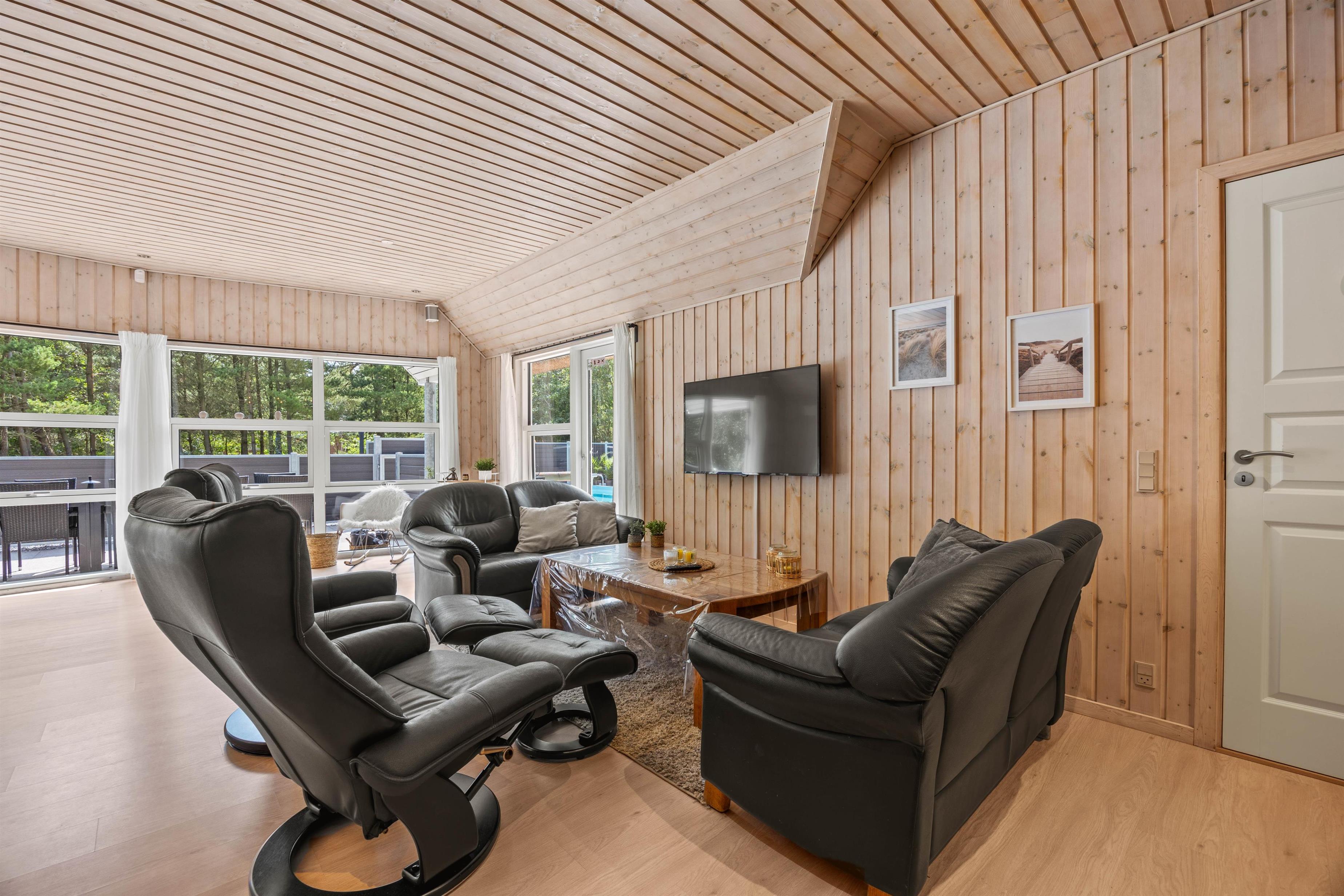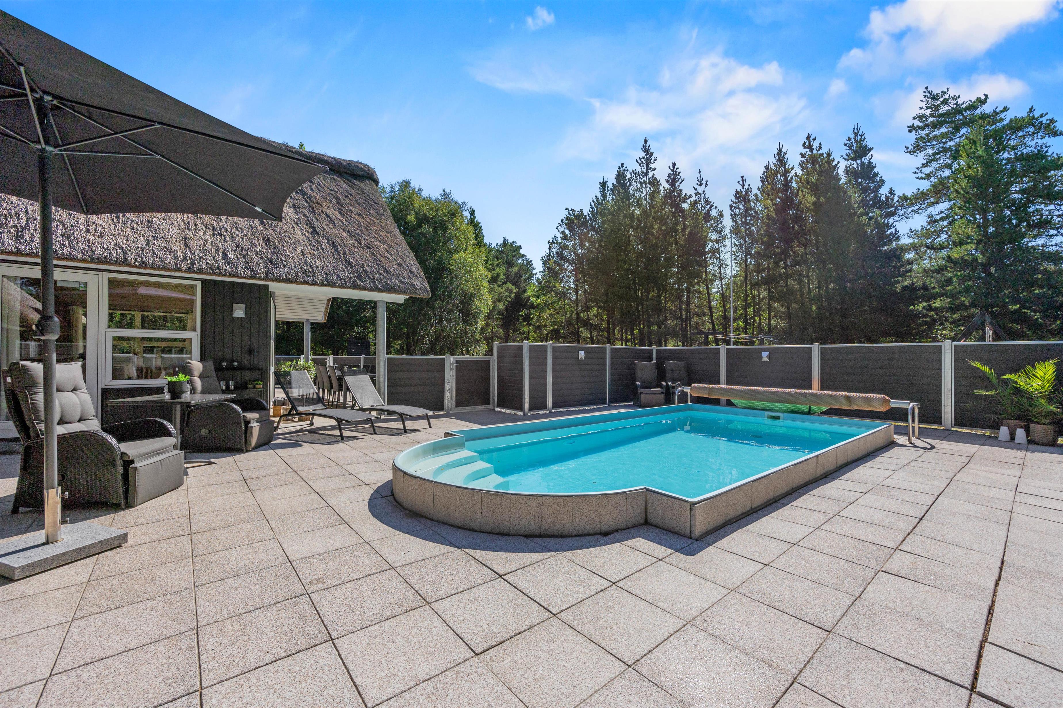 Dream of holidaying in a cosy thatched-roof holiday home set in beautiful natural grounds? Then Rylen 2 is the perfect spot. Renovated in 2023, this holiday home offers excellent comfort and relaxation features. You can enjoy the outdoor swimming pool and hot tub, and even play volleyball. If you prefer indoor relaxation, there's another whirlpool, sauna and wood-burning stove waiting for you.