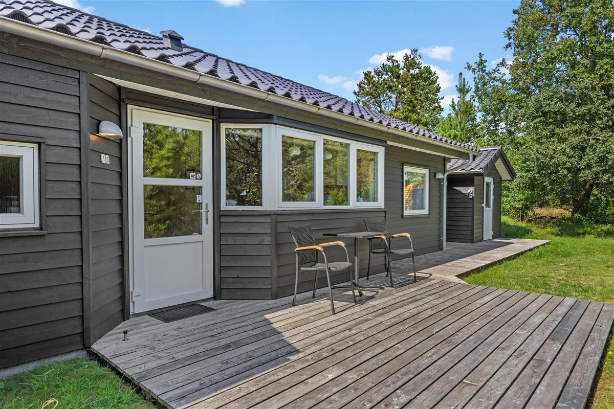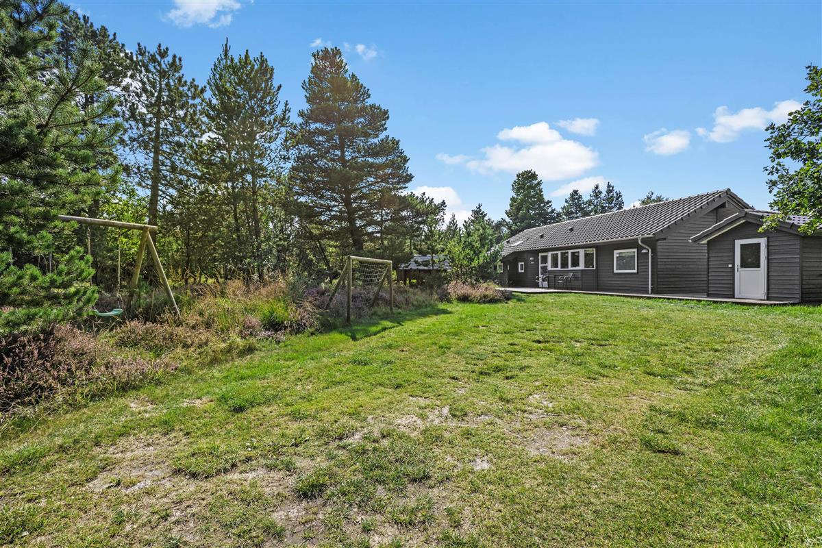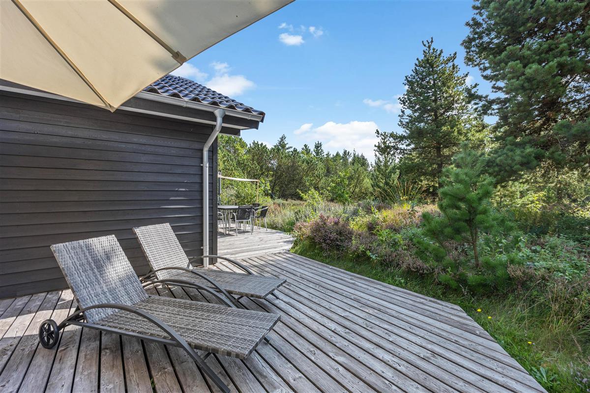 The generous wooden terrace, which extends around several sides of the holiday home, always provides a sheltered spot in the fresh air. Follow the sun or find shade under the sun sail. The comfortable garden furniture invites relaxation. Read a good book while your children play Kubb (Viking chess) on the natural grounds or discover the swing and sandpit. Surrounded by trees and bushes, you can enjoy complete privacy.