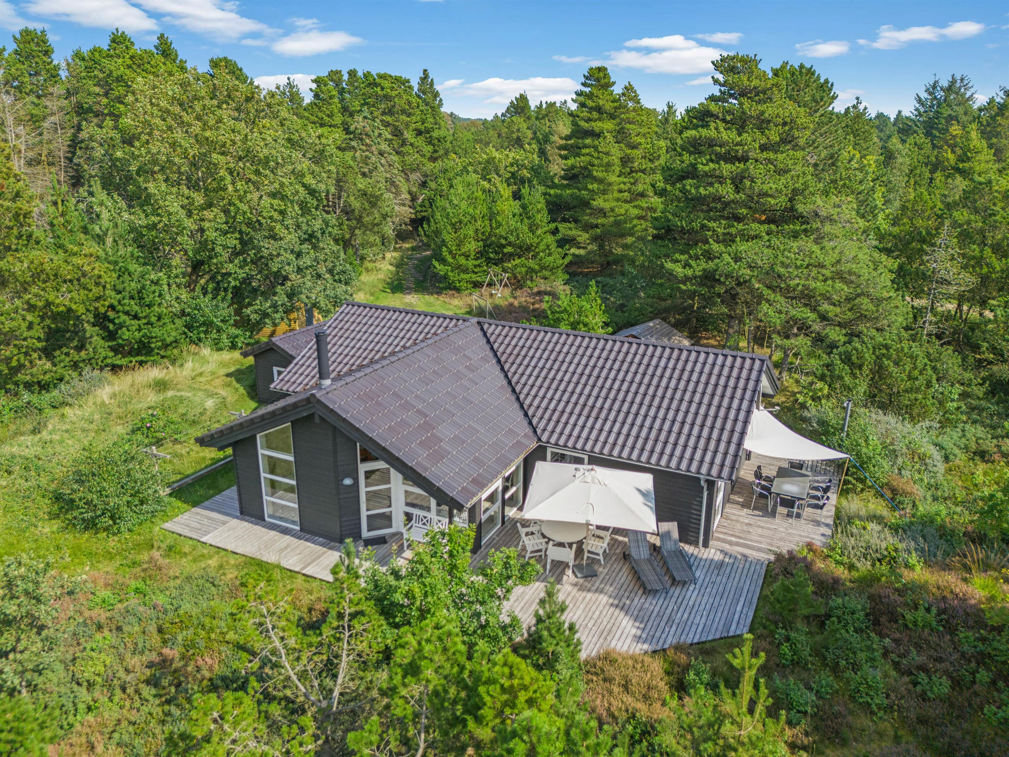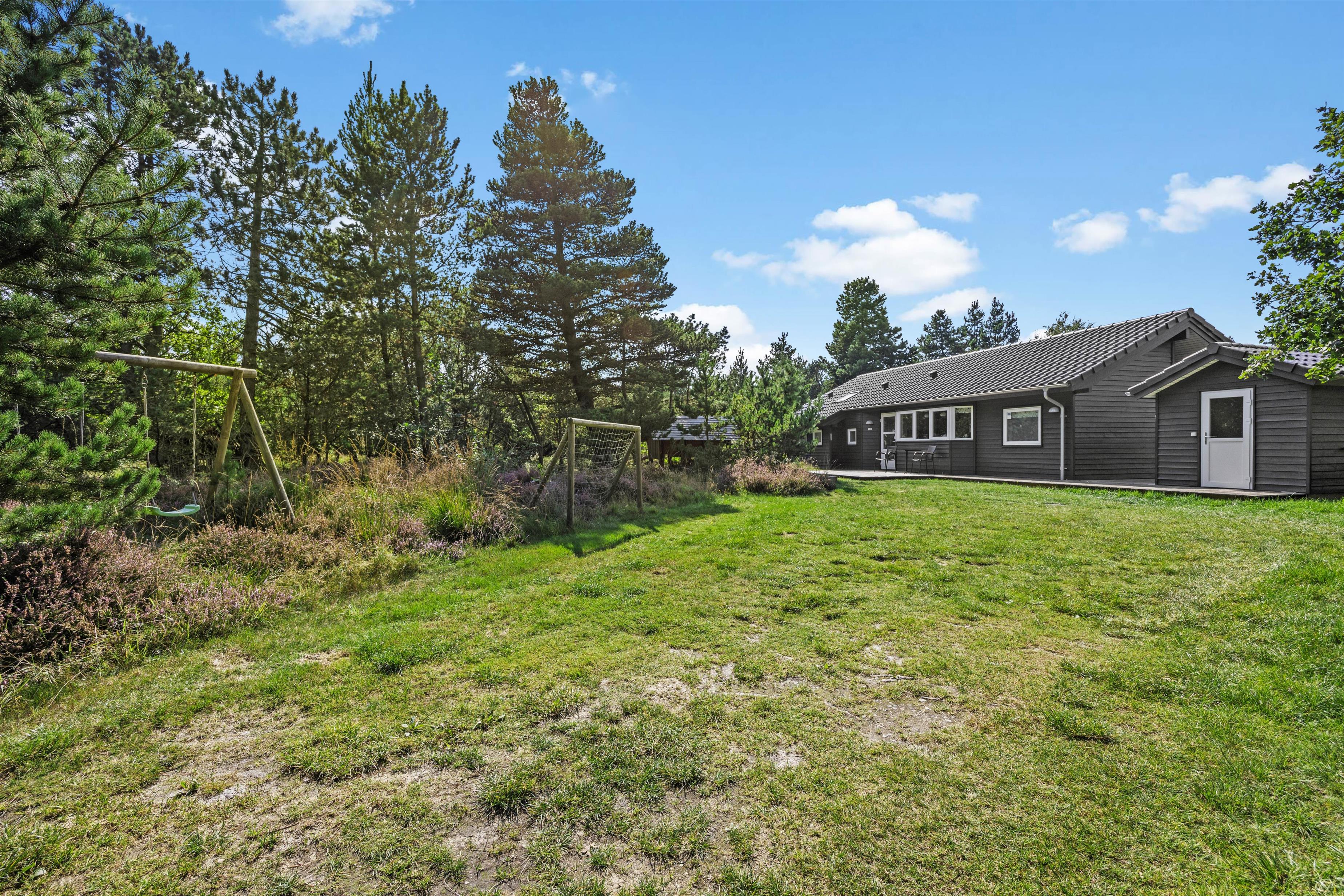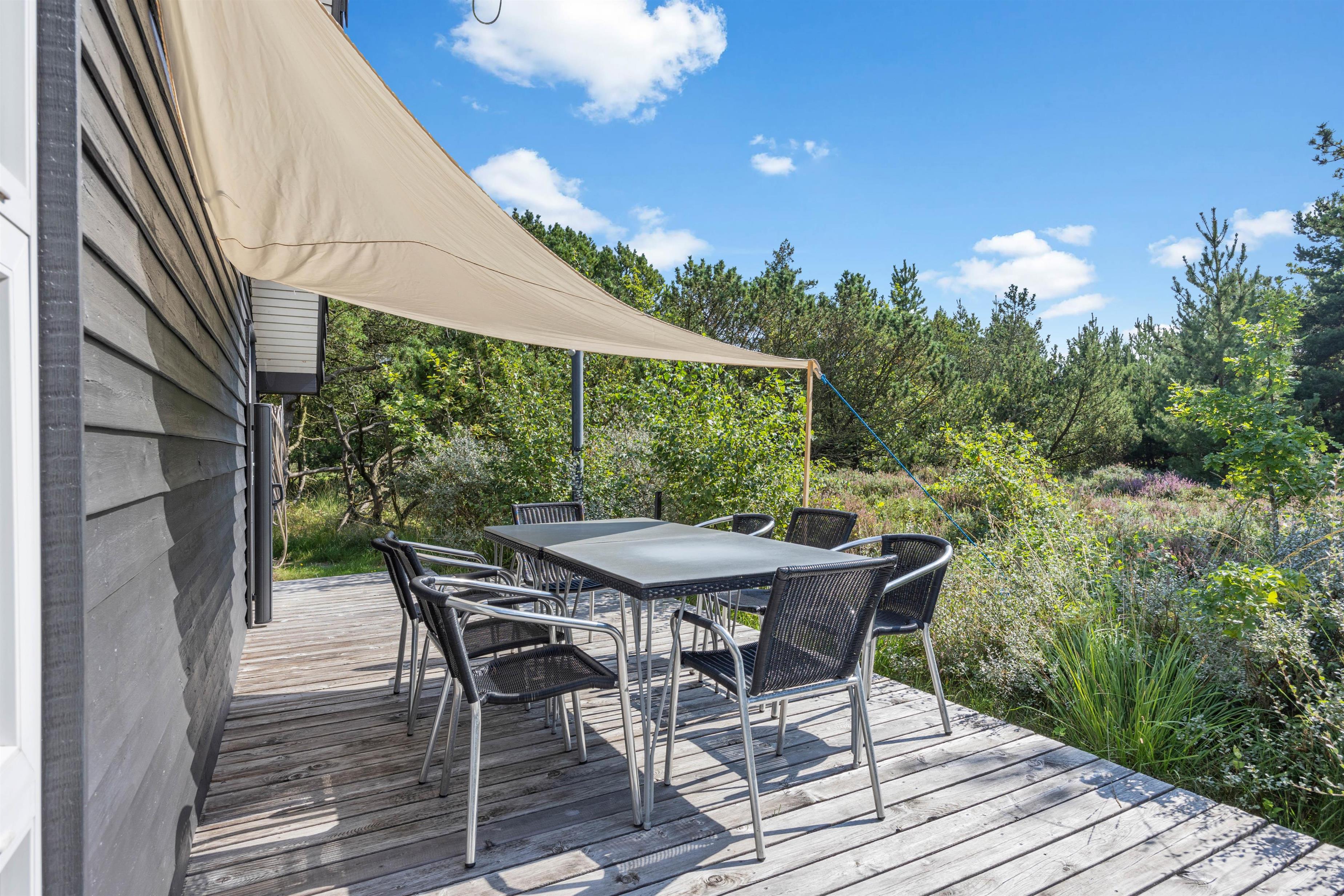 The generous wooden terrace, which extends around several sides of the holiday home, always provides a sheltered spot in the fresh air. Follow the sun or find shade under the sun sail. The comfortable garden furniture invites relaxation. Read a good book while your children play Kubb (Viking chess) on the natural grounds or discover the swing and sandpit. Surrounded by trees and bushes, you can enjoy complete privacy.