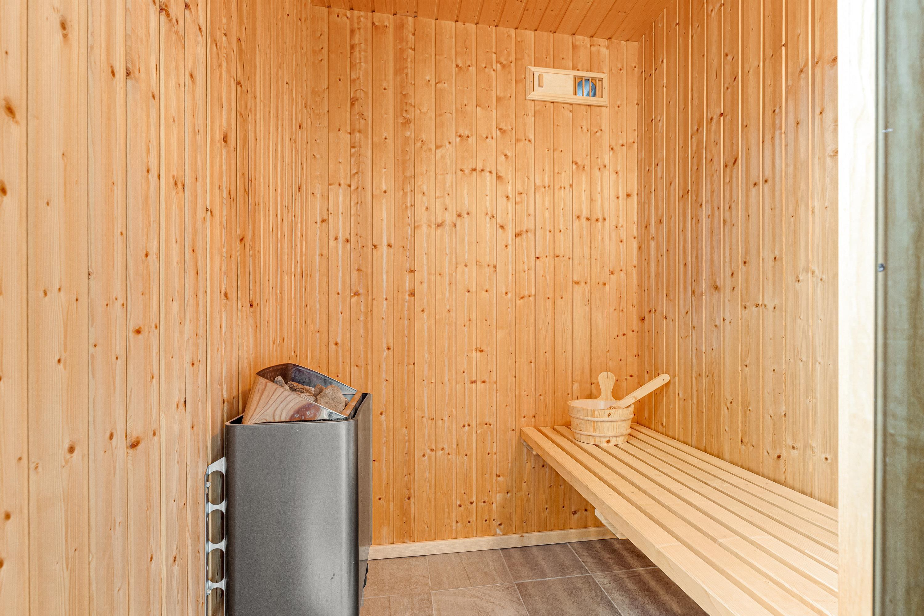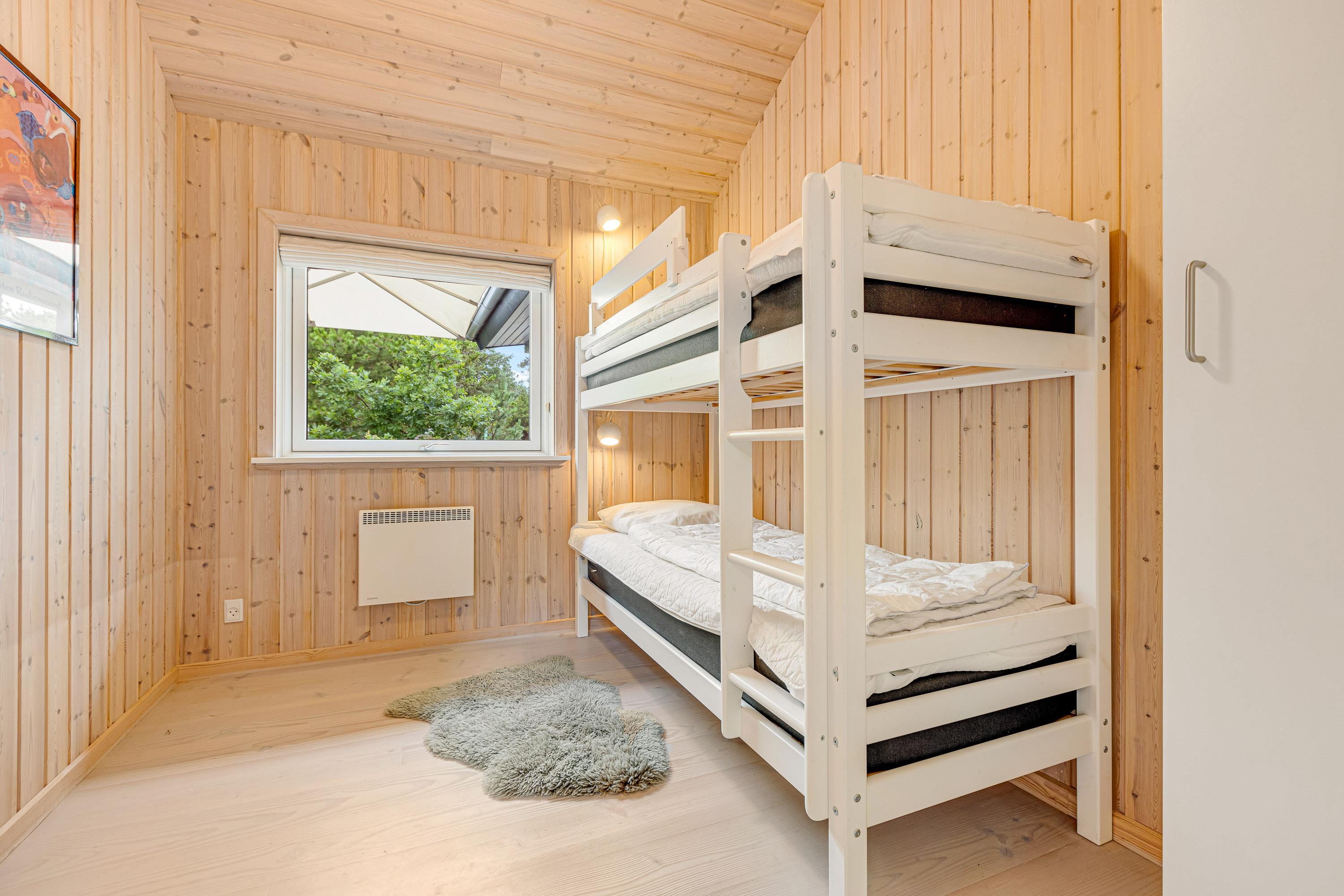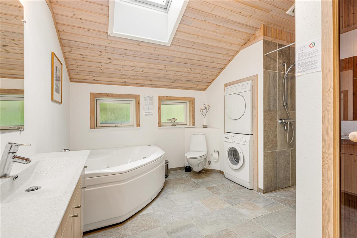 The comfortable bathroom, also with underfloor heating, includes a shower, sauna and whirlpool - perfect for relaxation. The washing machine and tumble dryer are particularly convenient for families with young children. The four bedrooms comprise three rooms with comfortable double beds and one with bunk beds, ensuring you're well-rested for each new holiday day.