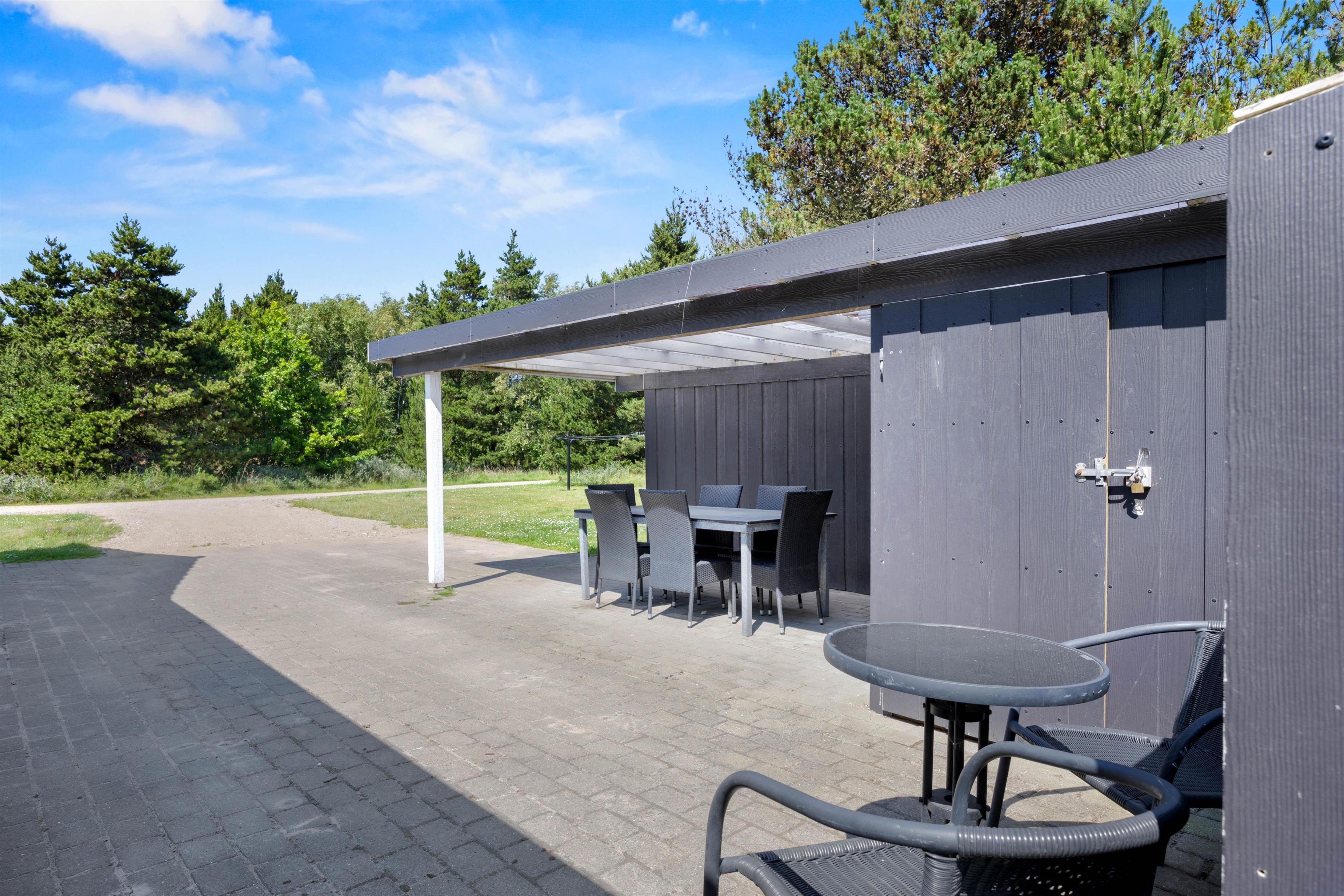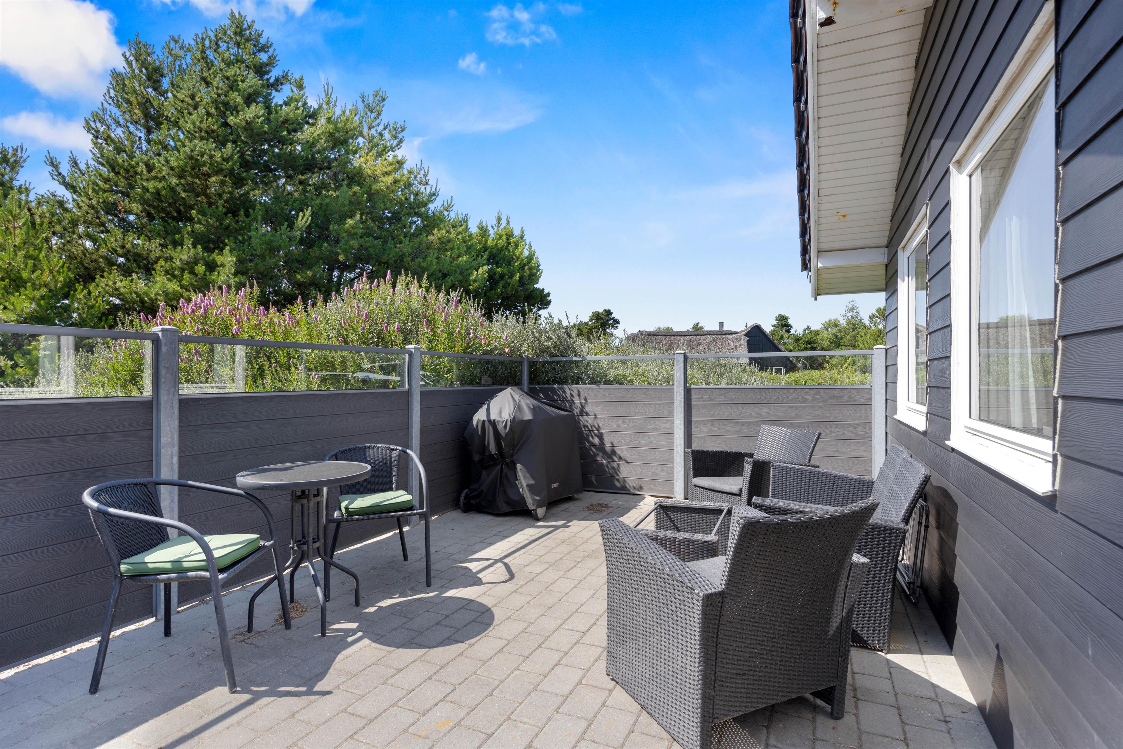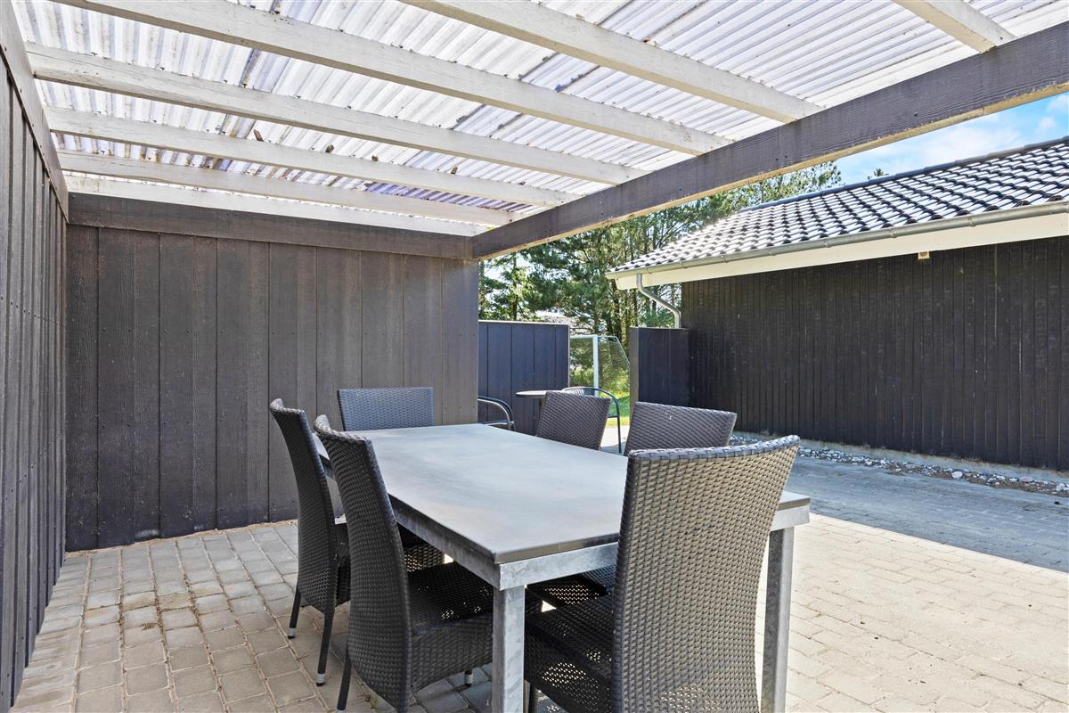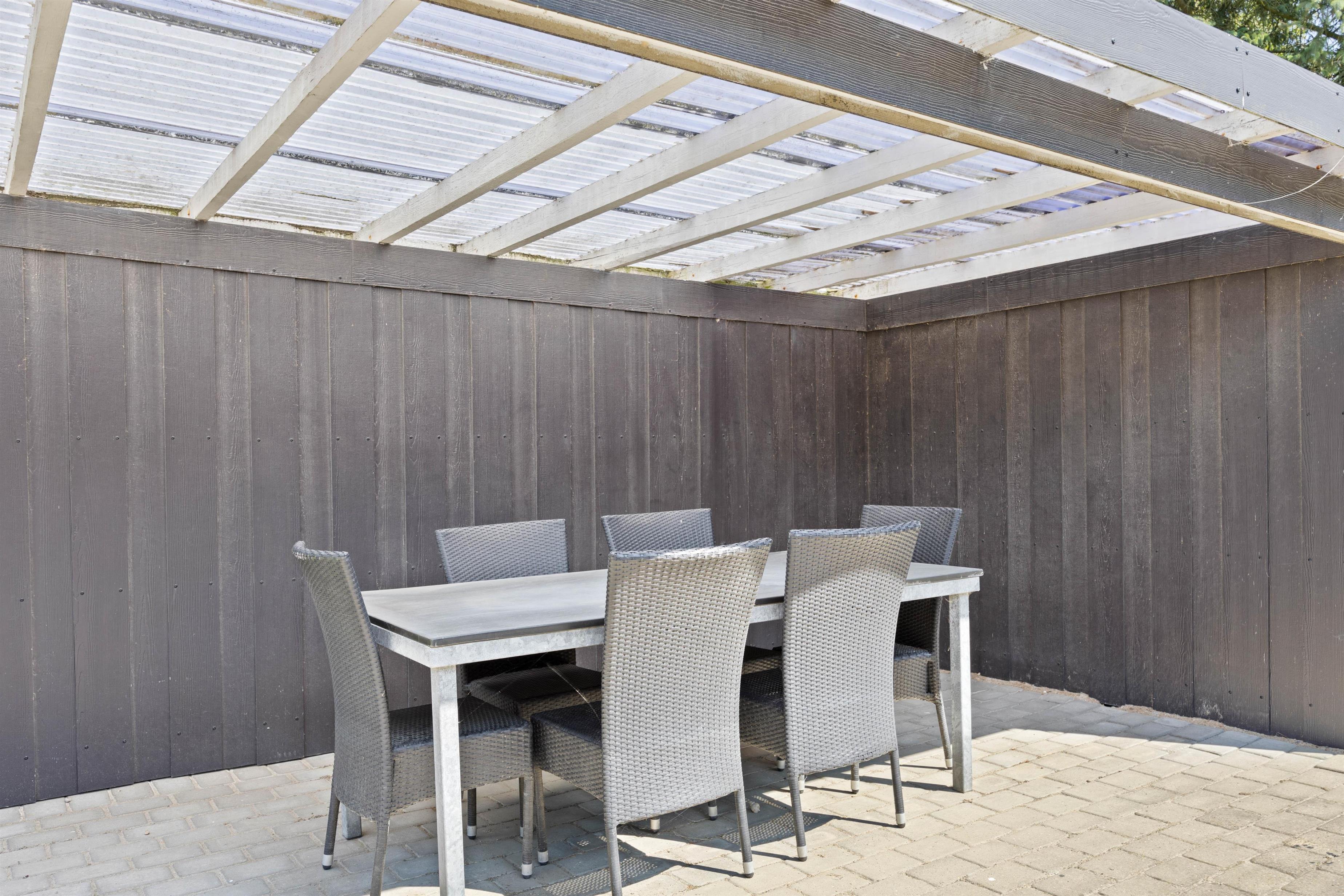 Idyllically surrounded by trees and bushes, you're immersed in nature. The spacious terrace invites relaxation with its comfortable furniture. Even in rainy weather, you'll find shelter under the covered section.