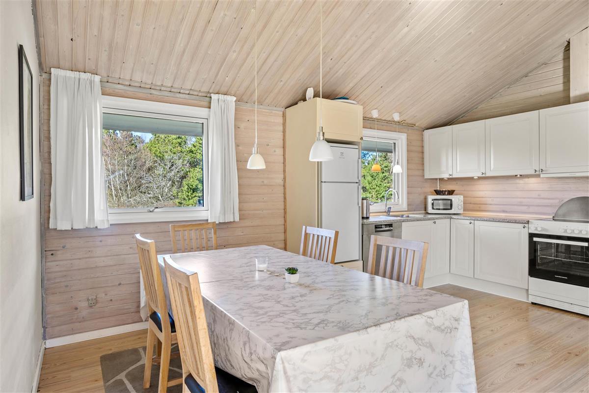 The generous dining area is perfect for a leisurely brunch or sociable games evening. In the adjoining kitchen, you'll find everything needed to prepare delicious meals.