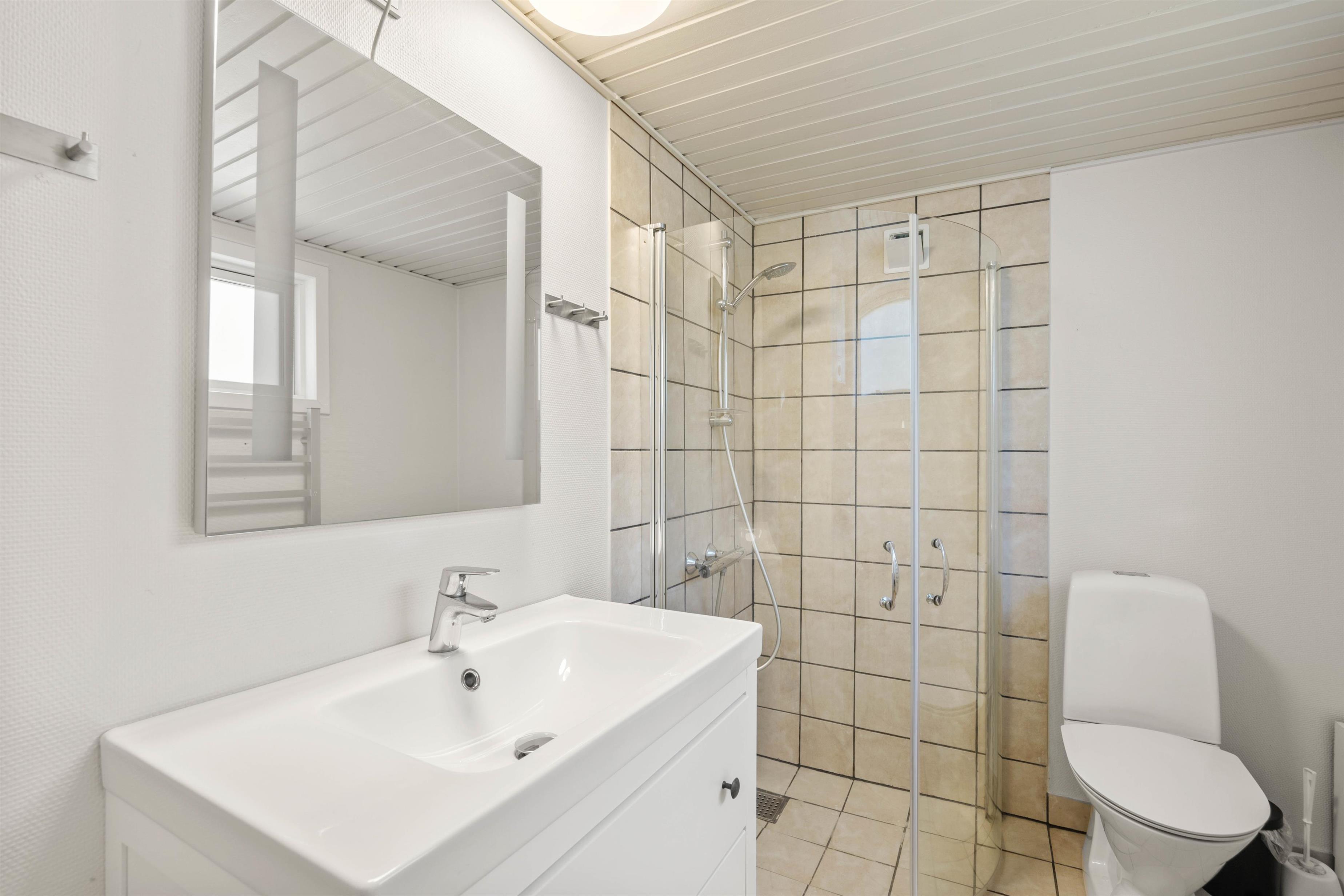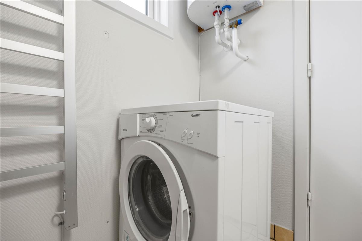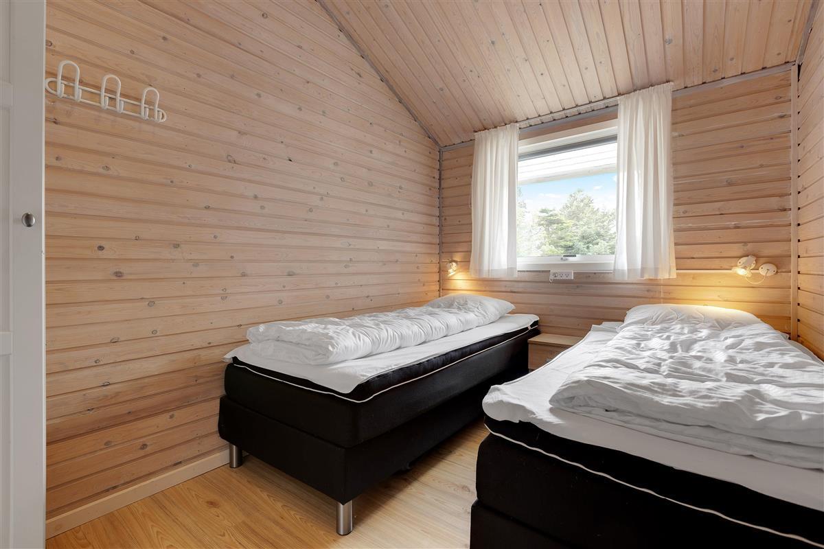 This holiday home features a practical layout dividing living and sleeping areas. The three bedrooms are adjacent to each other, comprising two rooms with double beds and one bedroom with twin beds. You'll find perfect rest in these comfortable beds. The practical bathroom includes a shower, and the holiday home also features a washing machine.