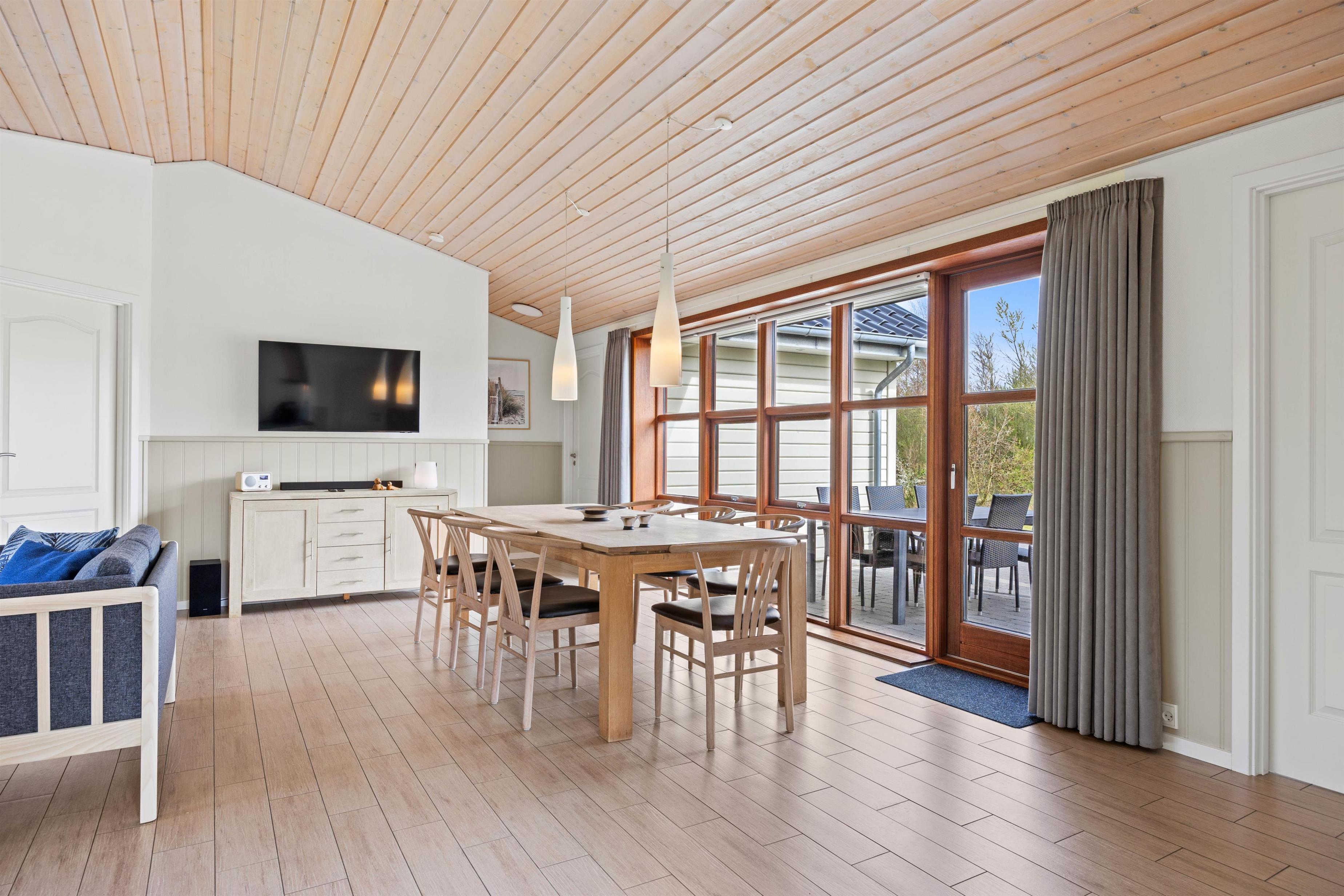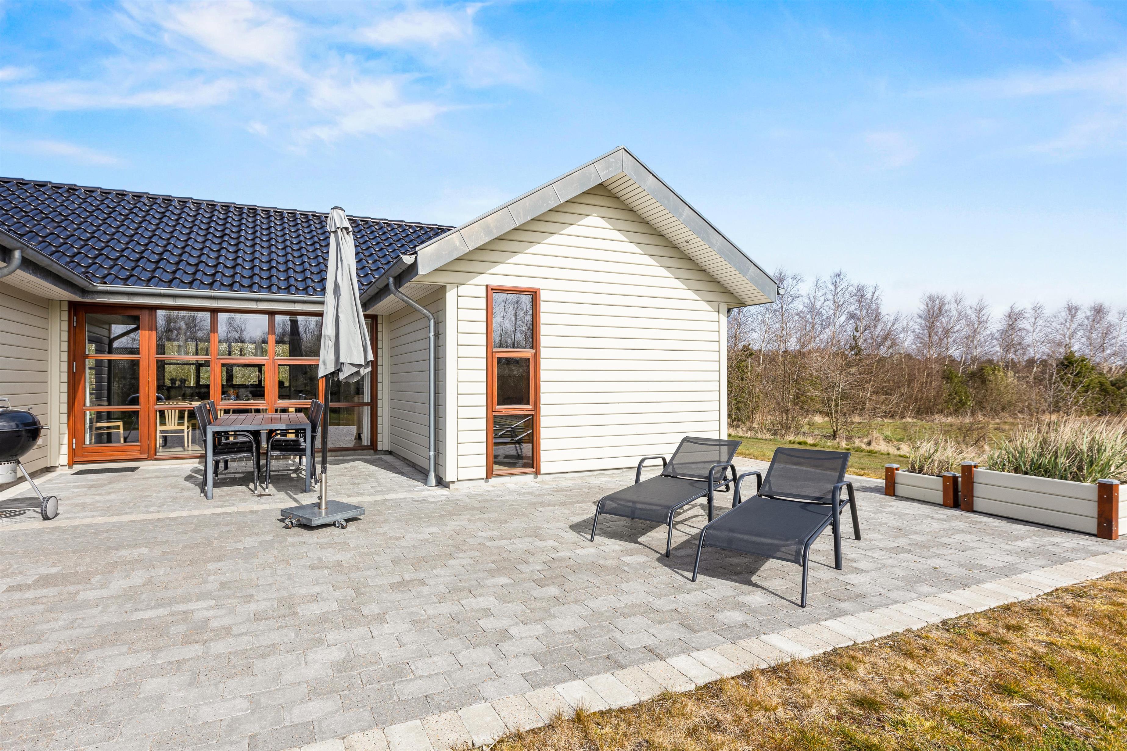 The living room opens onto the holiday home's open terrace. Here you'll find comfortable garden furniture and sun loungers ready for you to relax with a cup of coffee. In the evening, you can prepare a lovely dinner using the holiday home's barbecue.