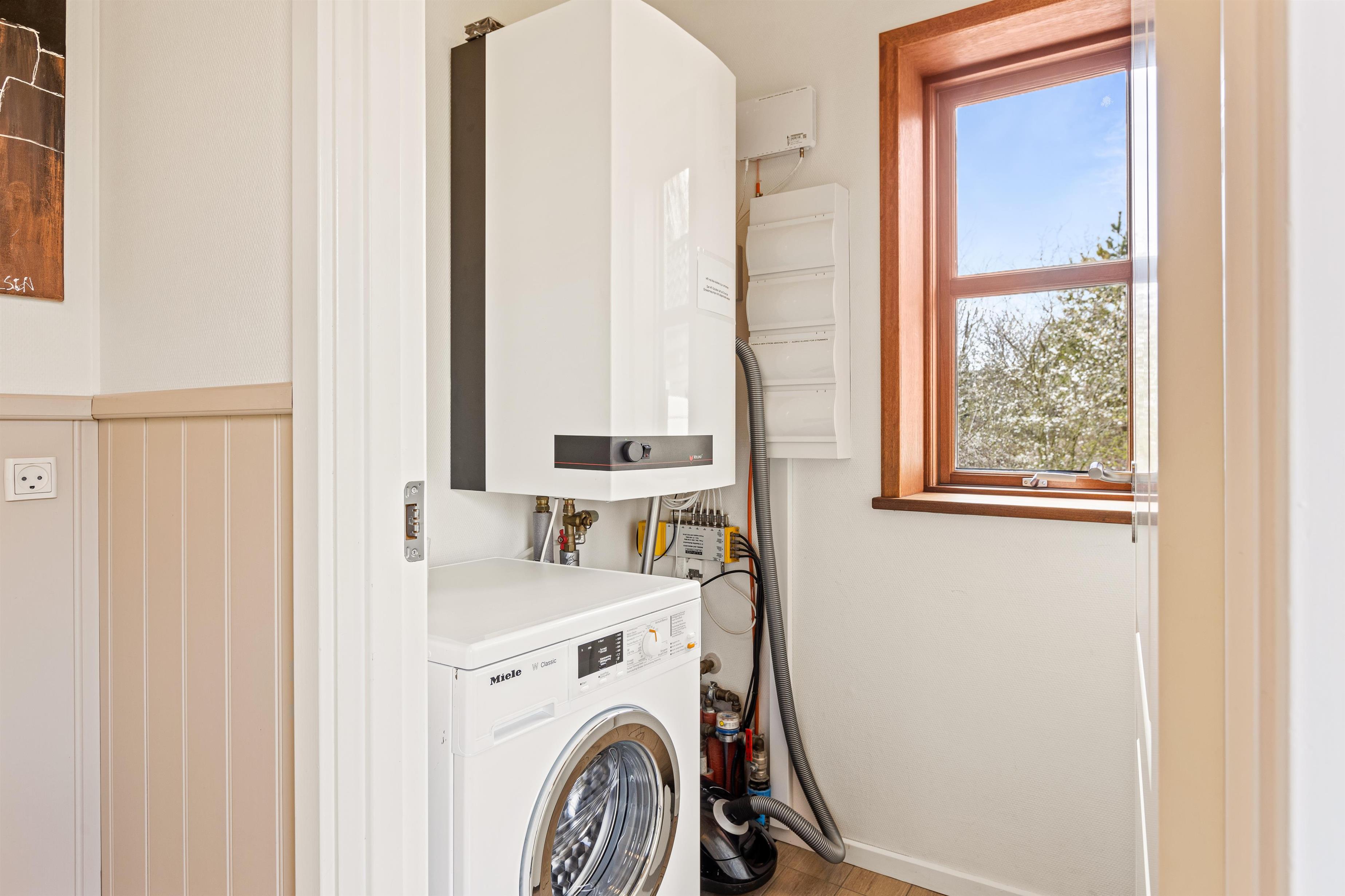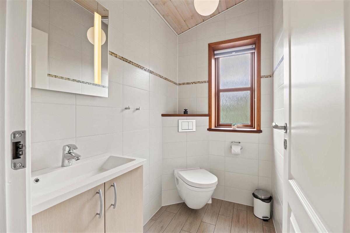 The holiday home also includes a guest toilet, which, like the main bathroom, benefits from underfloor heating, helping avoid morning queues. The washing machine and tumble dryer are practical additions, ensuring clean, dry clothes throughout your stay.