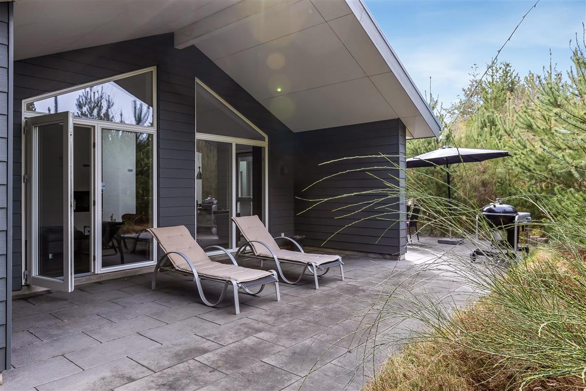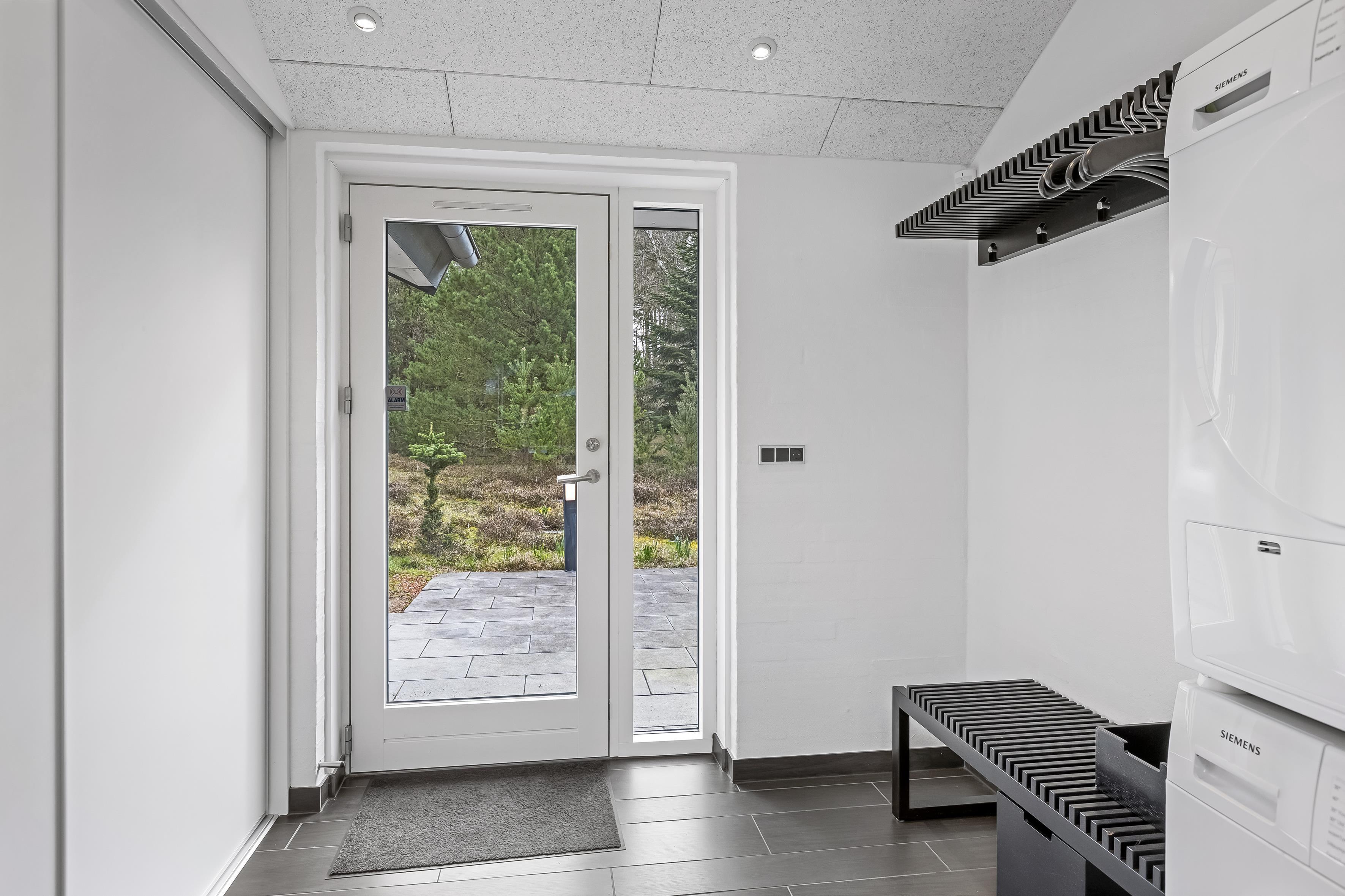 This thoughtfully designed holiday home in Langdal impresses with an open-plan living concept that creates a stylish atmosphere. For active guests, there's a games room featuring table football where you can hold competitions, while the outdoor shower is perfect after beach visits - with Sønderstrand just 850 metres away, there are plenty of opportunities for walks, swimming, kite flying and picnics.