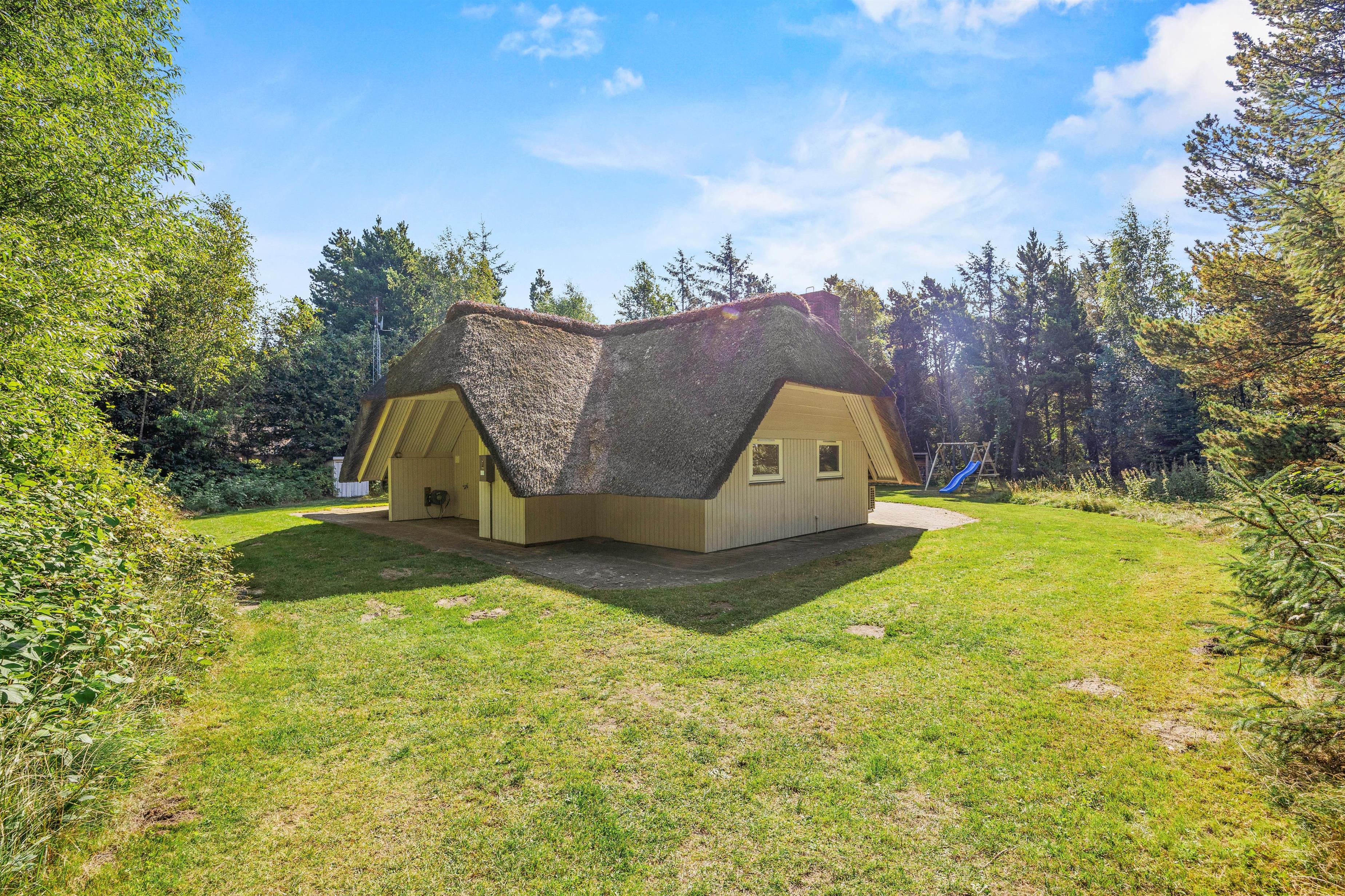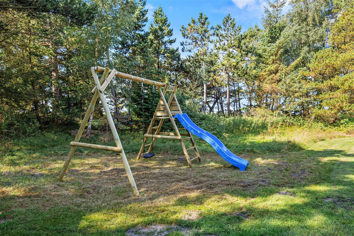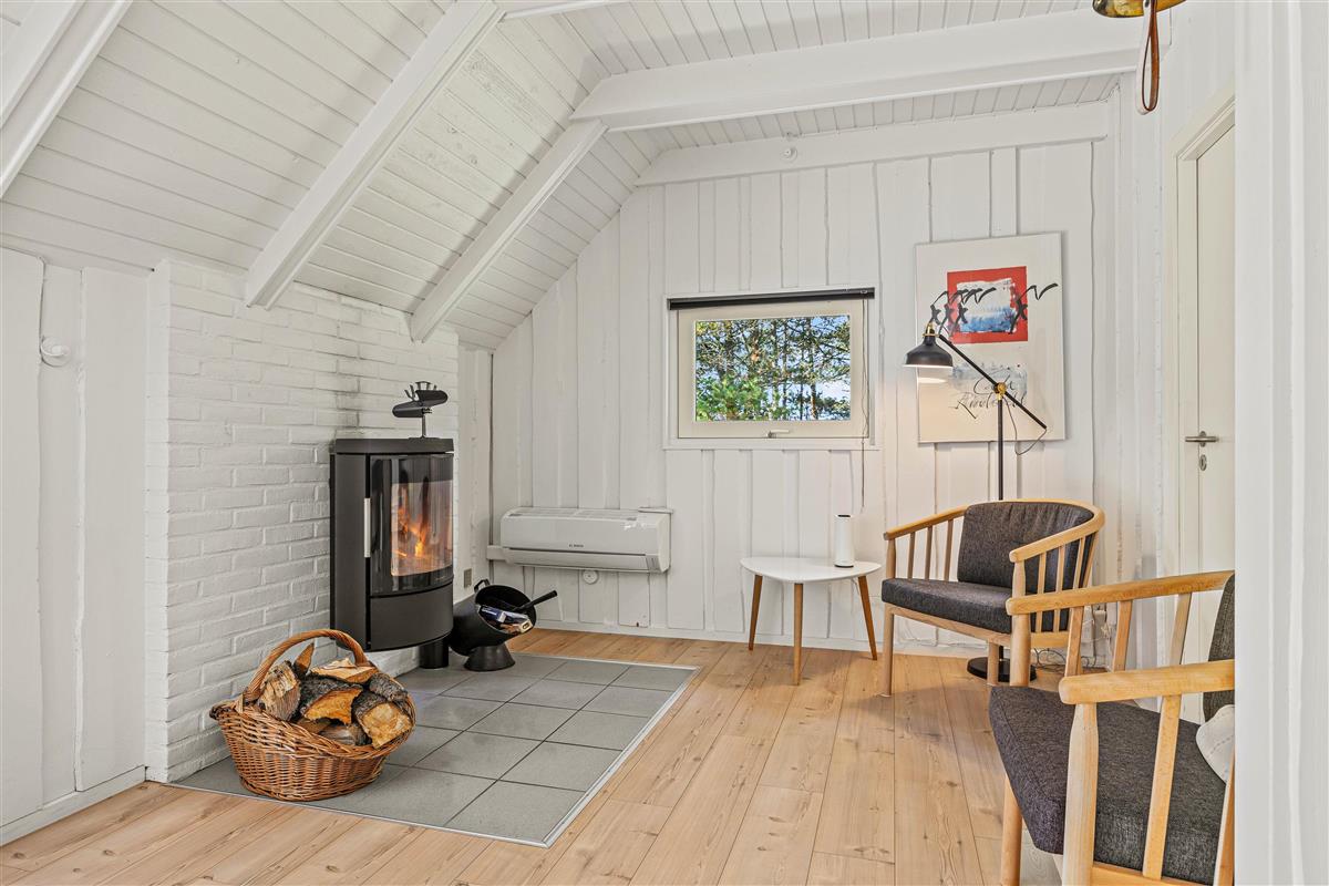Auf Rimmevej 7 befindet sich dieses gemütliche Sommerhaus, umgeben von Wald und Heide. Mit seiner schönen Lage fügt sich das Sommerhaus natürlich in die grüne Umgebung ein, wo der Himmel hoch und Platz für sowohl Spiel als auch Ruhe ist. Das Naturgrundstück ist ca. 2.500 m² groß, und hier könnt ihr die warmen Sonnenstrahlen genießen, während die Kinder spielen und der Hund frei herumläuft (maximal ein Hund erlaubt). Das Sommerhaus verfügt über eine sonnige, offene Terrasse mit komfortablen Gartenmöbeln und Grill, wo ihr das Leben im Freien bei gutem Wetter genießen könnt. Von der Terrasse aus habt ihr einen Blick auf den großen, ungestörten Garten mit viel Platz zum freien Spiel. Ein Schaukelgestell steht für die Kleinsten der Familie bereit.