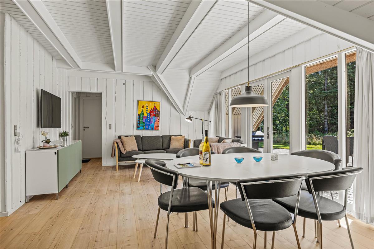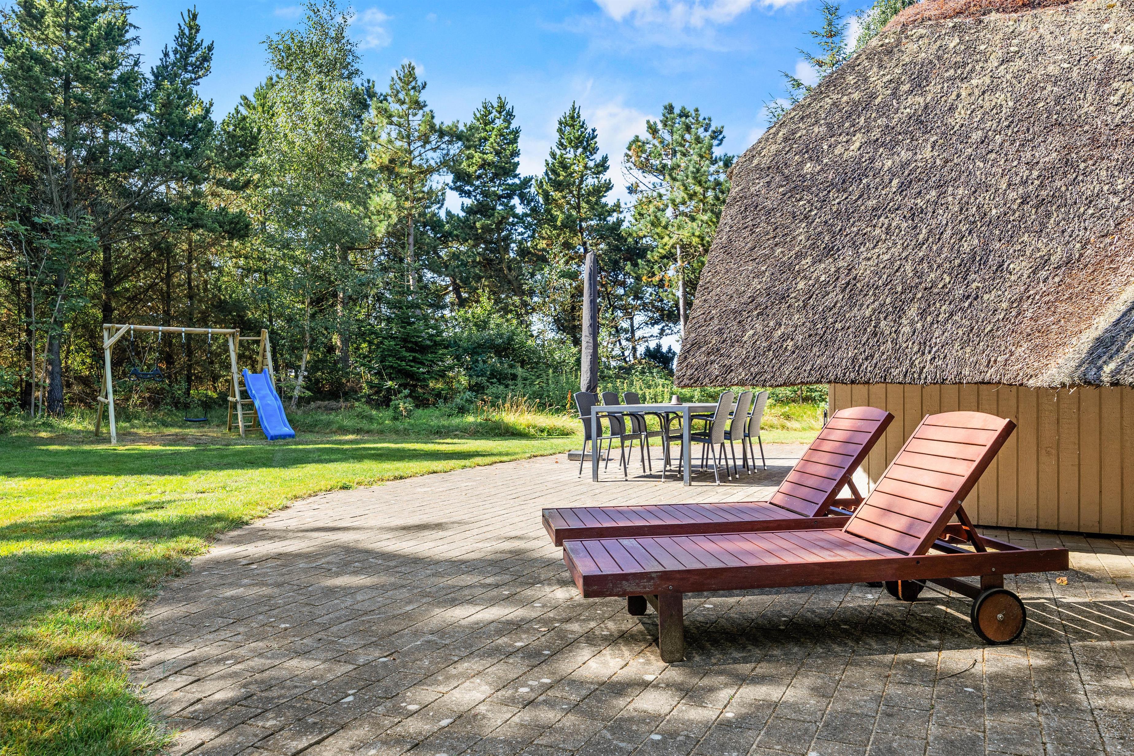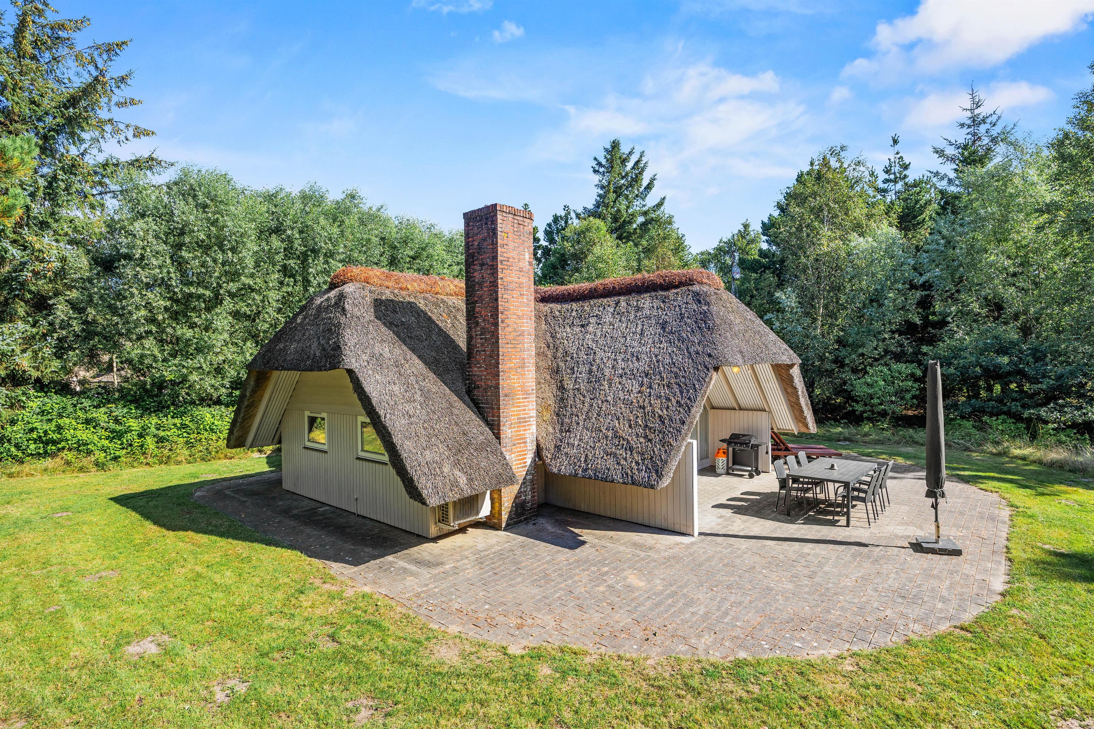 Auf Rimmevej 7 befindet sich dieses gemütliche Sommerhaus, umgeben von Wald und Heide. Mit seiner schönen Lage fügt sich das Sommerhaus natürlich in die grüne Umgebung ein, wo der Himmel hoch und Platz für sowohl Spiel als auch Ruhe ist. Das Naturgrundstück ist ca. 2.500 m² groß, und hier könnt ihr die warmen Sonnenstrahlen genießen, während die Kinder spielen und der Hund frei herumläuft (maximal ein Hund erlaubt). Das Sommerhaus verfügt über eine sonnige, offene Terrasse mit komfortablen Gartenmöbeln und Grill, wo ihr das Leben im Freien bei gutem Wetter genießen könnt. Von der Terrasse aus habt ihr einen Blick auf den großen, ungestörten Garten mit viel Platz zum freien Spiel. Ein Schaukelgestell steht für die Kleinsten der Familie bereit.