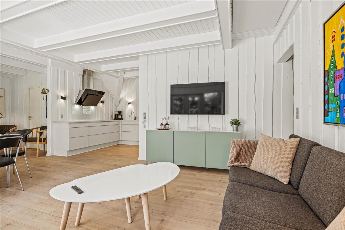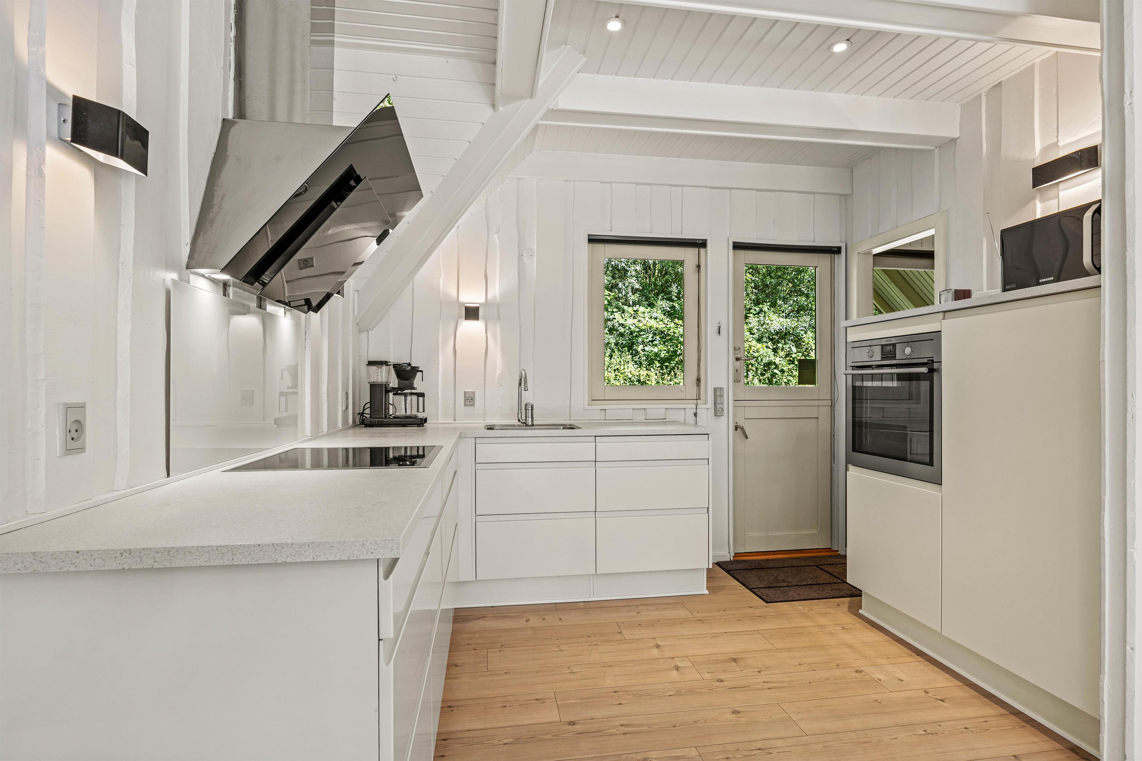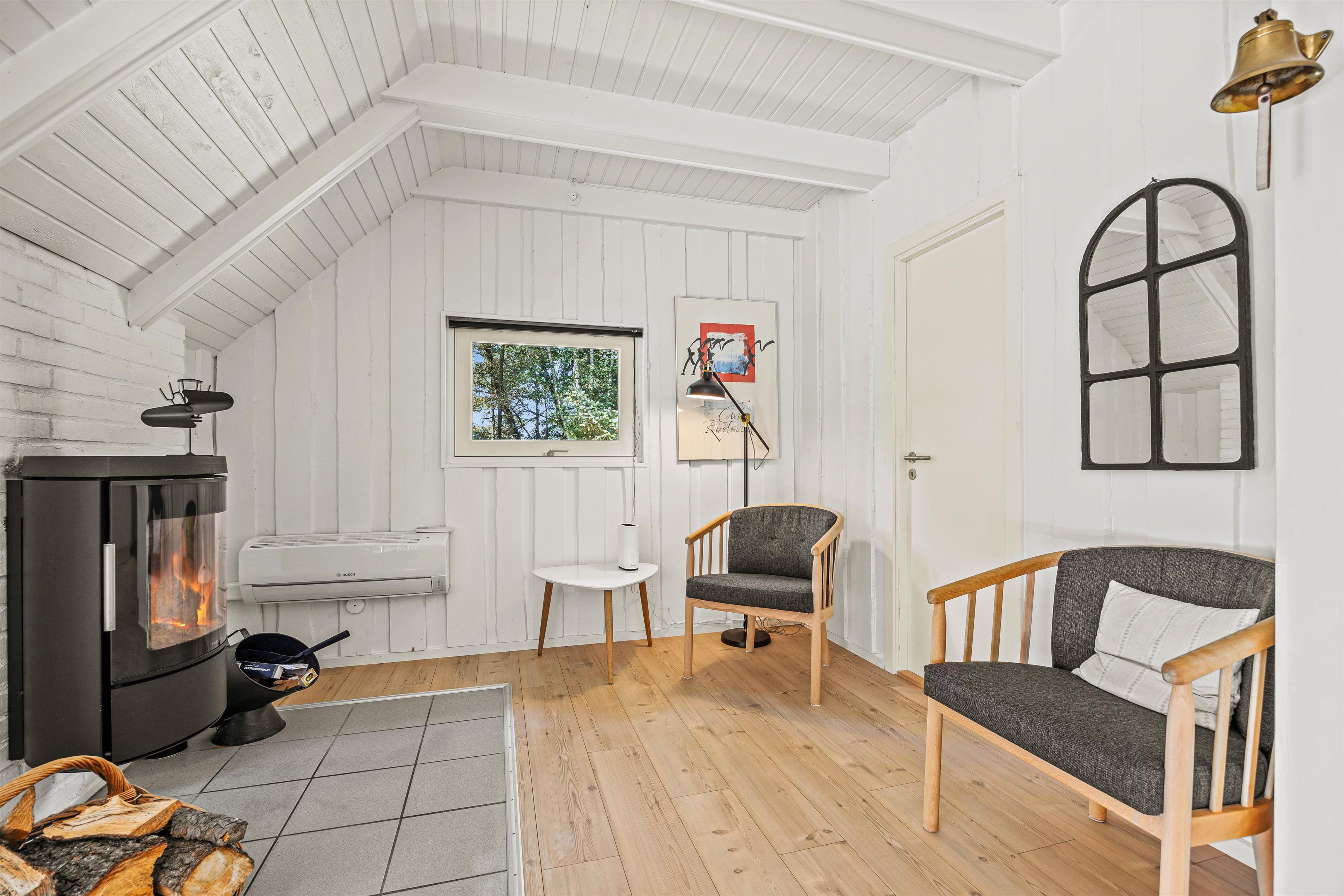 Das Sommerhaus verfügt über einen offenen Grundriss, wobei Stube und Küche in einer hellen, holzverkleideten Umgebung verschmelzen. In der Stube könnt ihr euch abends am knisternden Kamin versammeln und die Gesellschaft des anderen genießen. Die moderne Wohnküche ist mit allen notwendigen Haushaltsgeräten ausgestattet – darunter eine Kaffeemaschine, Wasserkocher, Gefrierfach, Backofen, Mikrowelle und Spülmaschine für die praktischen Aufgaben – sodass ihr problemlos leckere Mahlzeiten zubereiten und gemeinsam essen könnt. Die Wärmepumpe sorgt für angenehme Wärme, während kostenloses Breitband-Internet euch während des Aufenthalts online hält. Es gibt auch eine Waschmaschine und einen Wäschetrockner, damit ihr die Wäsche während des Aufenthalts einfach erledigen könnt.
