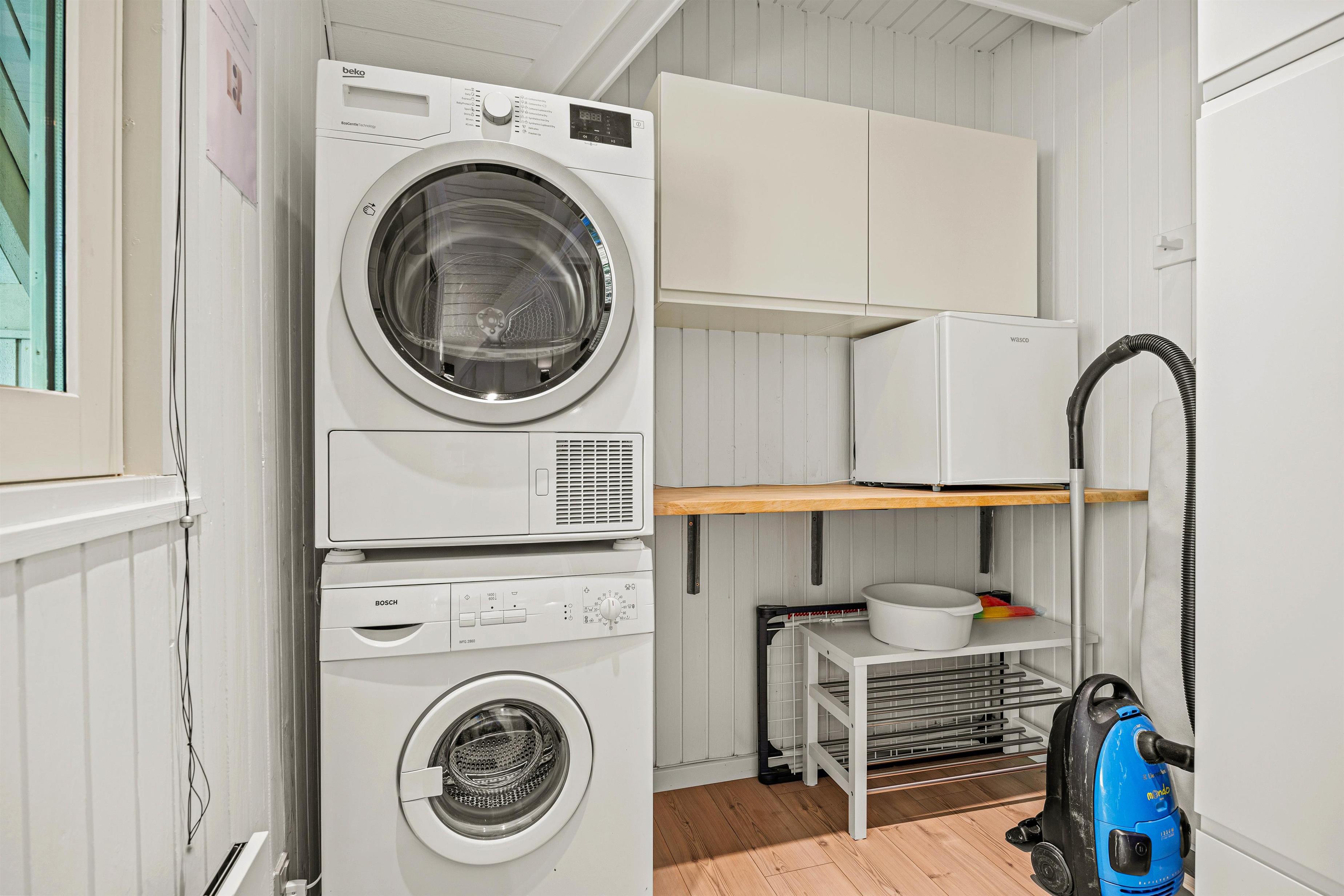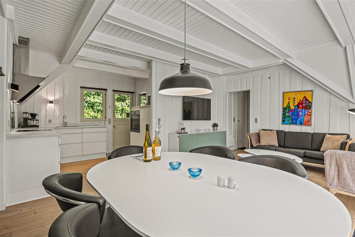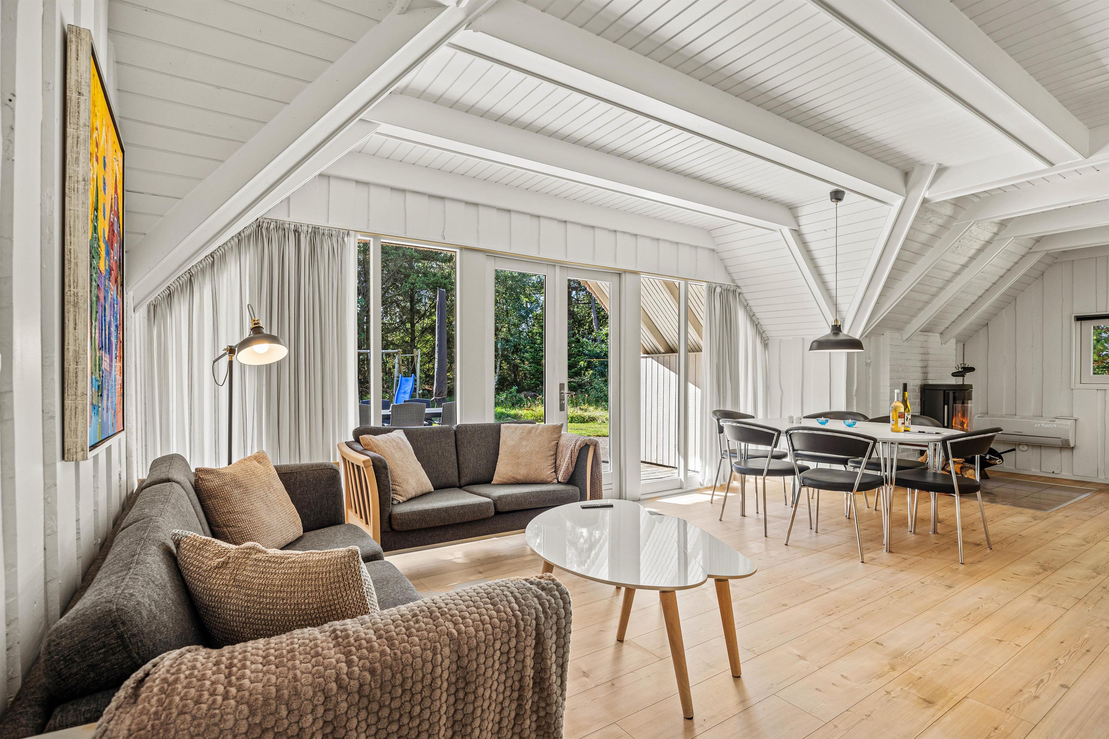 Das Sommerhaus verfügt über einen offenen Grundriss, wobei Stube und Küche in einer hellen, holzverkleideten Umgebung verschmelzen. In der Stube könnt ihr euch abends am knisternden Kamin versammeln und die Gesellschaft des anderen genießen. Die moderne Wohnküche ist mit allen notwendigen Haushaltsgeräten ausgestattet – darunter eine Kaffeemaschine, Wasserkocher, Gefrierfach, Backofen, Mikrowelle und Spülmaschine für die praktischen Aufgaben – sodass ihr problemlos leckere Mahlzeiten zubereiten und gemeinsam essen könnt. Die Wärmepumpe sorgt für angenehme Wärme, während kostenloses Breitband-Internet euch während des Aufenthalts online hält. Es gibt auch eine Waschmaschine und einen Wäschetrockner, damit ihr die Wäsche während des Aufenthalts einfach erledigen könnt.