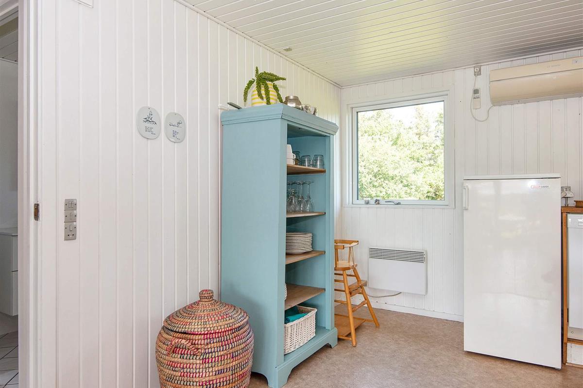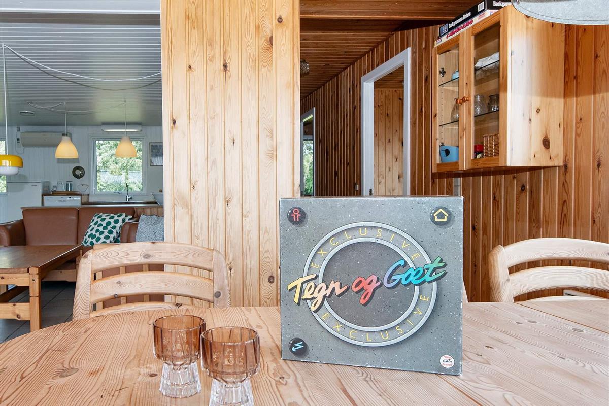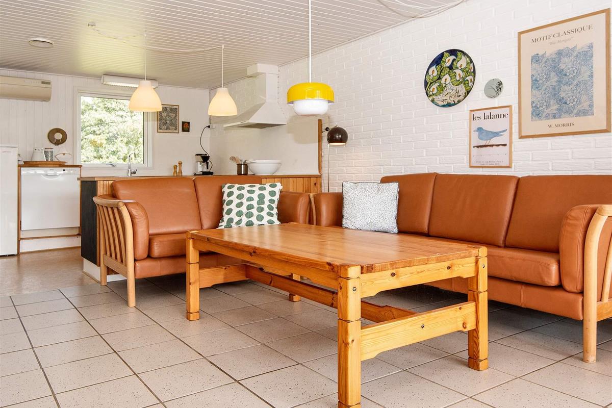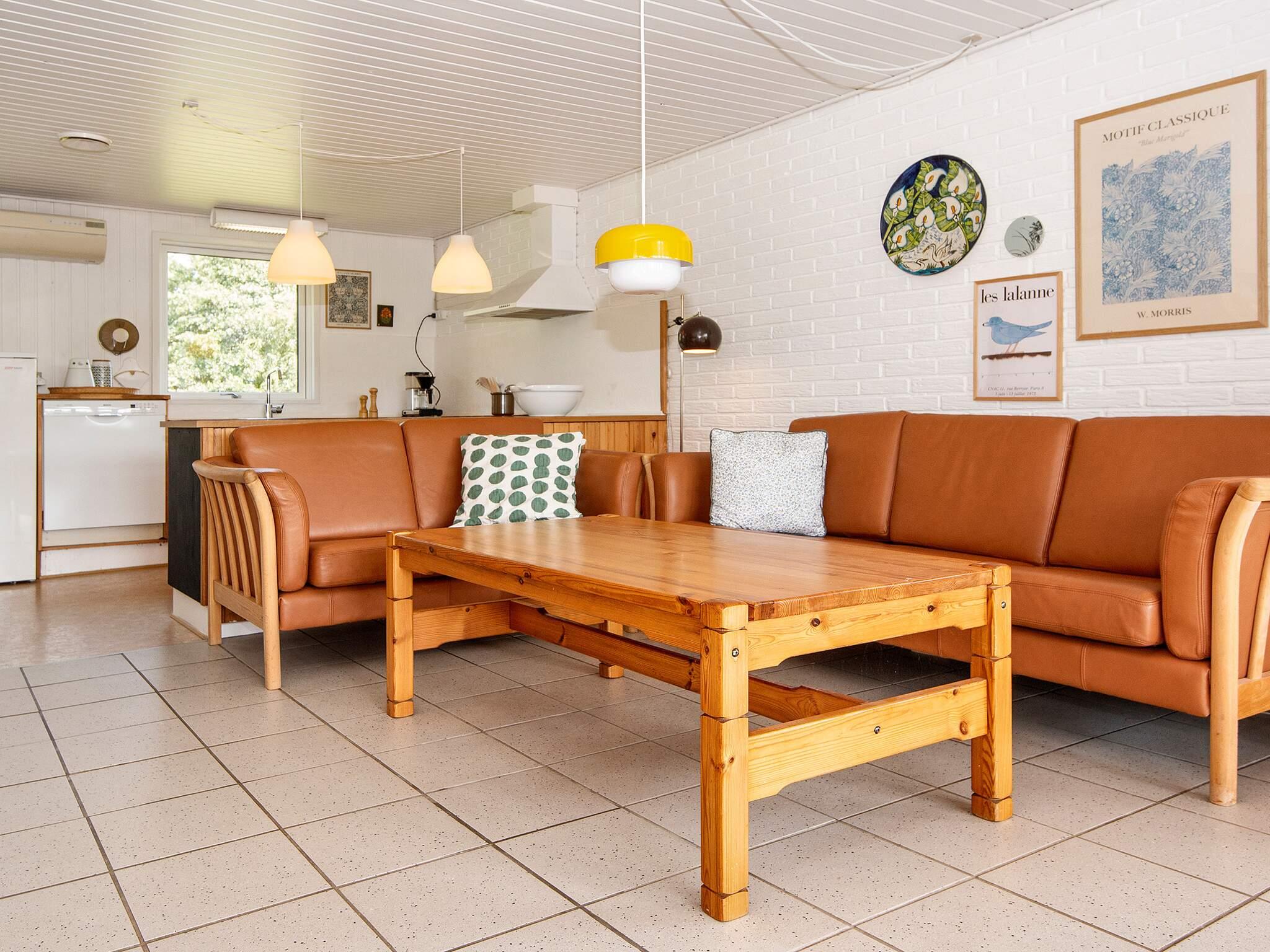 Das Ferienhaus ist gemütlich eingerichtet und hat eine gut ausgestattete Küche, die offen in den Wohnbereich integriert ist. Hier stehen auch eine Essecke sowie ein Kaminofen für kühlere Abende bereit. Vom Wohnzimmer aus haben Sie freien Ausblick in die umliegende Natur, die zur Entspannung beiträgt. Von diesem Raum aus haben Sie auch Zutritt zu einer windgeschützten, überdachten Südterrasse.