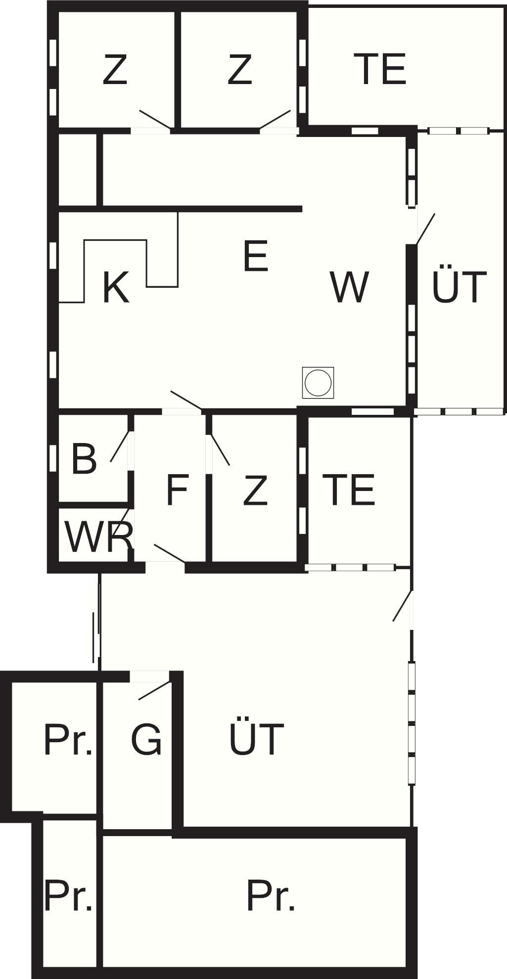 Bad: Waschm., WC, Waschb., Dusche, Fußbodenheiz.