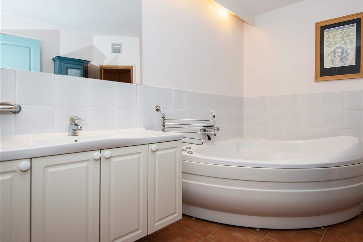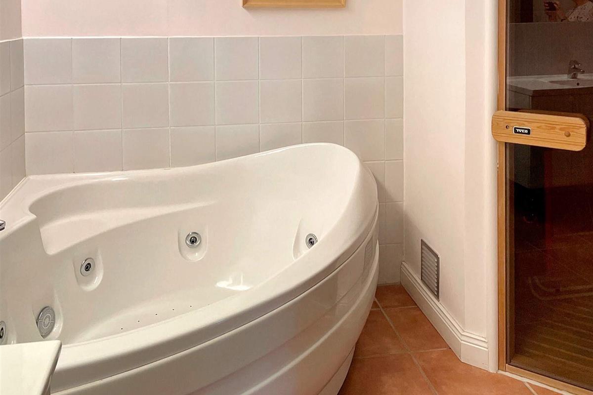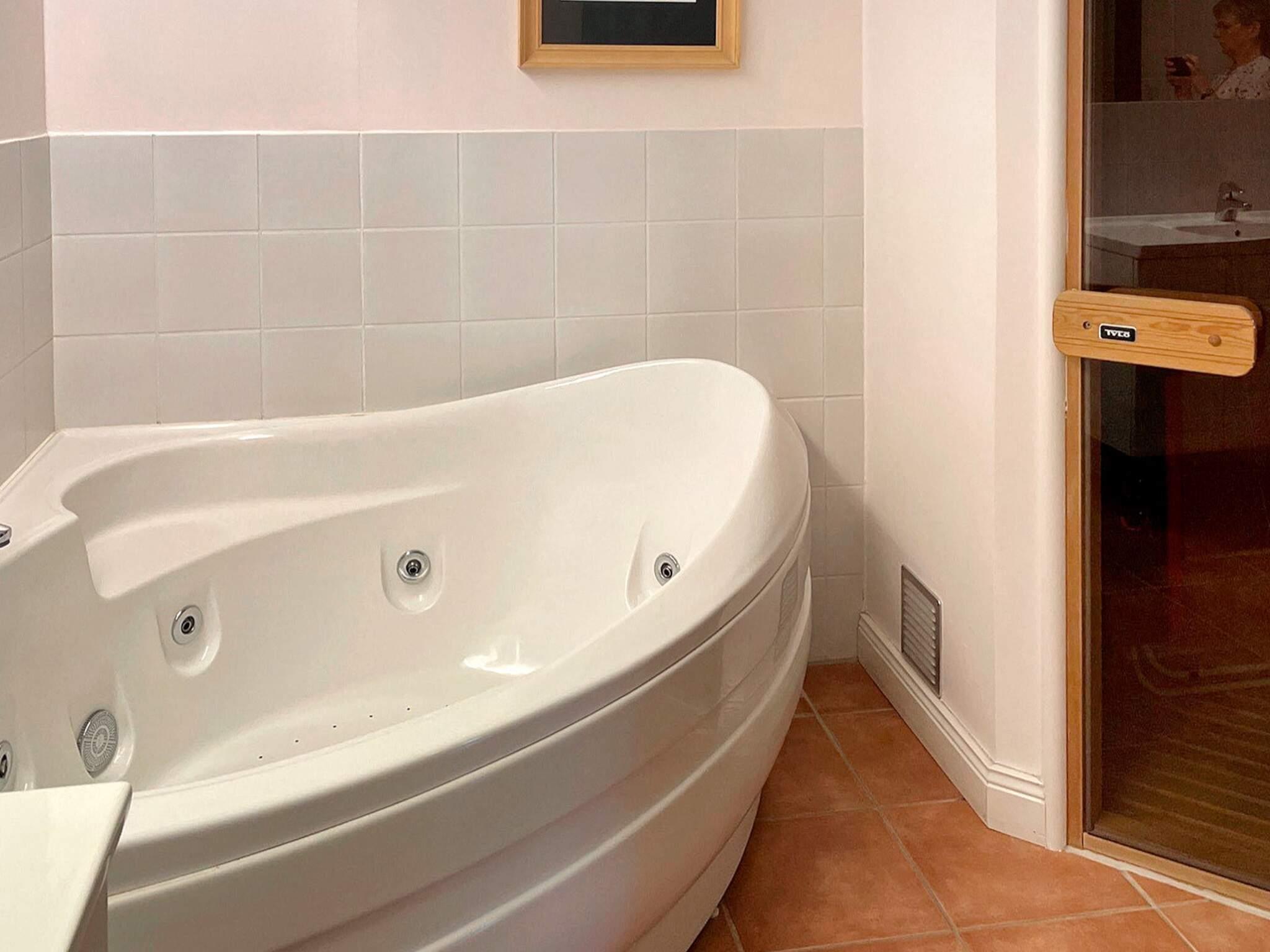 Gemütlicher Essbereich und Wohnzimmer mit Holzofen. Schönes Badezimmer mit Fußbodenheizung, Dusche, Whirlpool für 2 Personen, Waschmaschine und Trockner sowie direktem Zugang zur Sauna. Separater Raum mit Toilette und Waschbecken. Kabel-TV und kostenloses 100/100-MB-Glasfaser-Internet mit WLAN sind vorhanden.