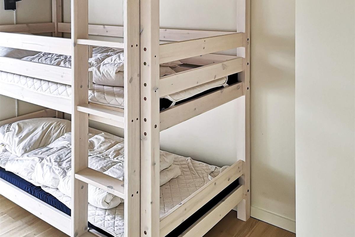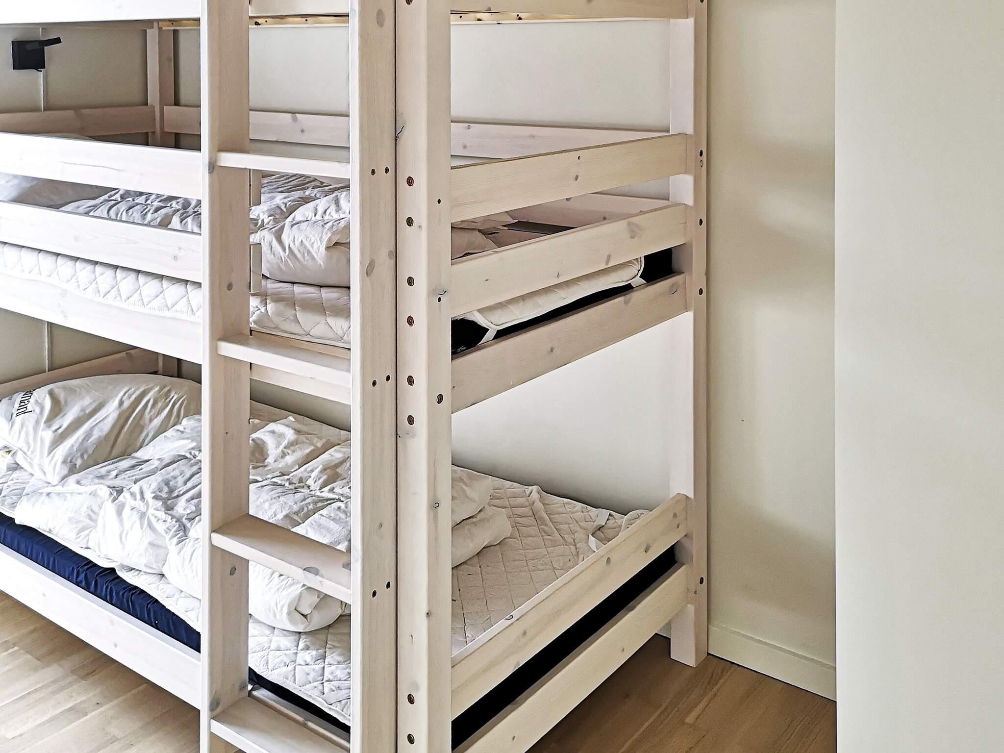 Die Wohnung in Endlage wurde 2019 erbaut und befindet sich in der 1. Etage. Sie hat einen eigenen, separaten Eingang und bietet großartige Aussicht über den Ort. Die Einrichtung ist hell, luxuriös und modern gestaltet. Es gibt vier Schlafzimmer: zwei davon mit je einem Doppelbett, das dritte mit zwei Einzelbetten, die zu einem Doppelbett zusammengestellt werden können, und das vierte Zimmer mit drei Kojen für Erwachsene. Es stehen außerdem zwei moderne Badezimmer mit Dusche, WC und Fußbodenheizung bereit. Ein Badezimmer verfügt außerdem über einen Whirlpool, eine Waschmaschine und einen Trockner. Die Küche ist hell und zeitgemäß ausgestattet mit u.a. Mikrowelle und Geschirrspüler. Das Wohnzimmer ist elegant und modern, mit einladendem Mobiliar und einem Flachbild-TV. Alle Schlafzimmer sind zudem mit je einem Flachbild-TV ausgestattet. In einem der Zimmer steht auch eine PlayStation zur Verfügung.