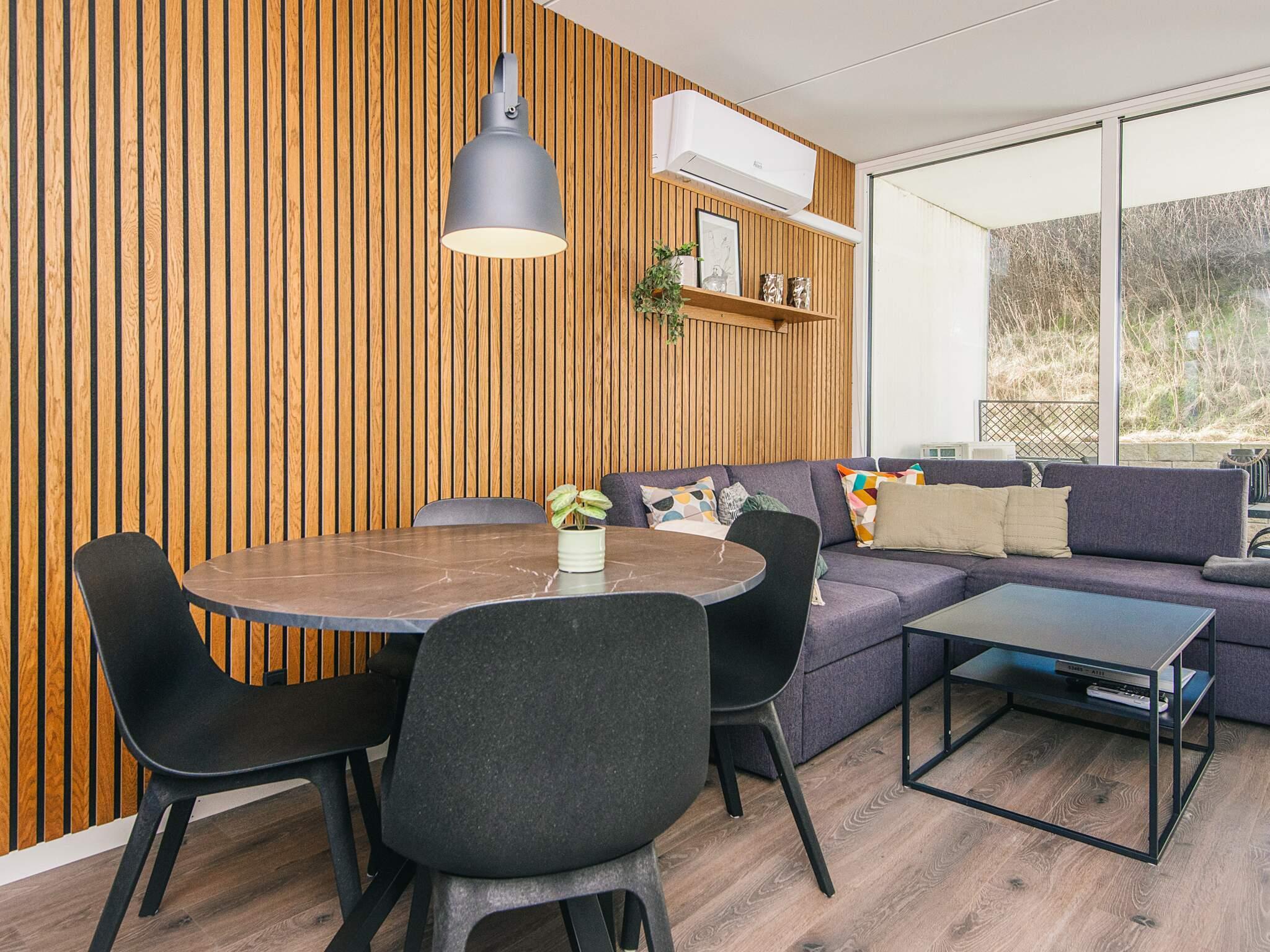Die Wohnung ist hell und übersichtlich gestaltet. Sie bietet zwei Schlafzimmer: eines mit zwei Einzelbetten und das andere mit einem bequemen Doppelbett. Ein modernes Badezimmer mit Dusche und angenehmer Fußbodenheizung sorgt für zusätzlichen Komfort während Ihres Aufenthalts. Der offene Küchen- und Wohnbereich bietet den idealen Raum für gemeinsame Stunden, sei es zum Zubereiten von Mahlzeiten, zum Essen oder einfach zum Entspannen. Das Wohnzimmer ist mit einem Fernseher ausgestattet, und Gäste können Inhalte von ihren eigenen Anbietern streamen – für zahlreiche Unterhaltungsmöglichkeiten.