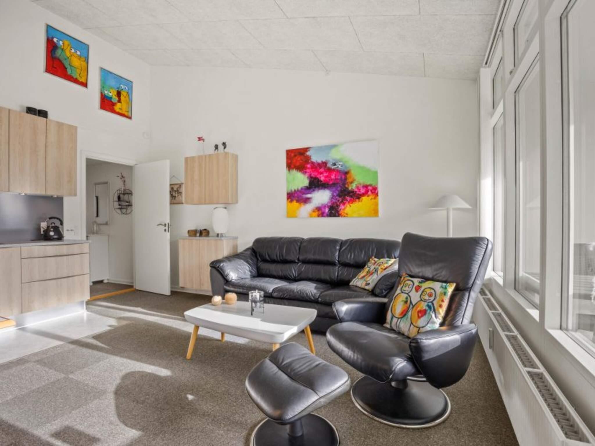 Die Küche ist gut ausgestattet mit u.a. Spülmaschine und Induktionskochfeld. Rund um den Esstisch in der Wohnküche ist viel Platz. Separates Wohnzimmer mit Flachbildschirm mit dänischen, deutschen, norwegischen und schwedischen Kanälen.