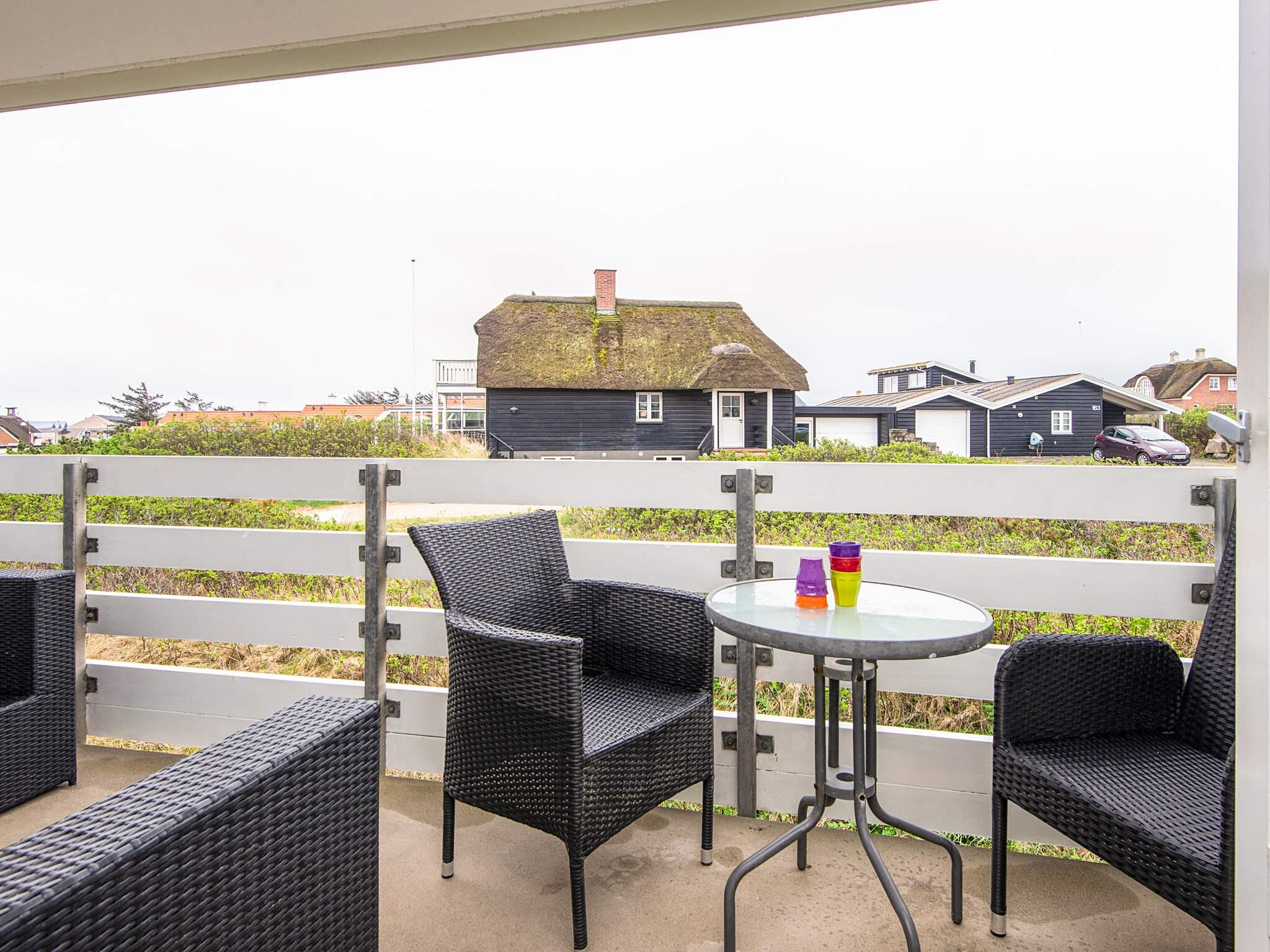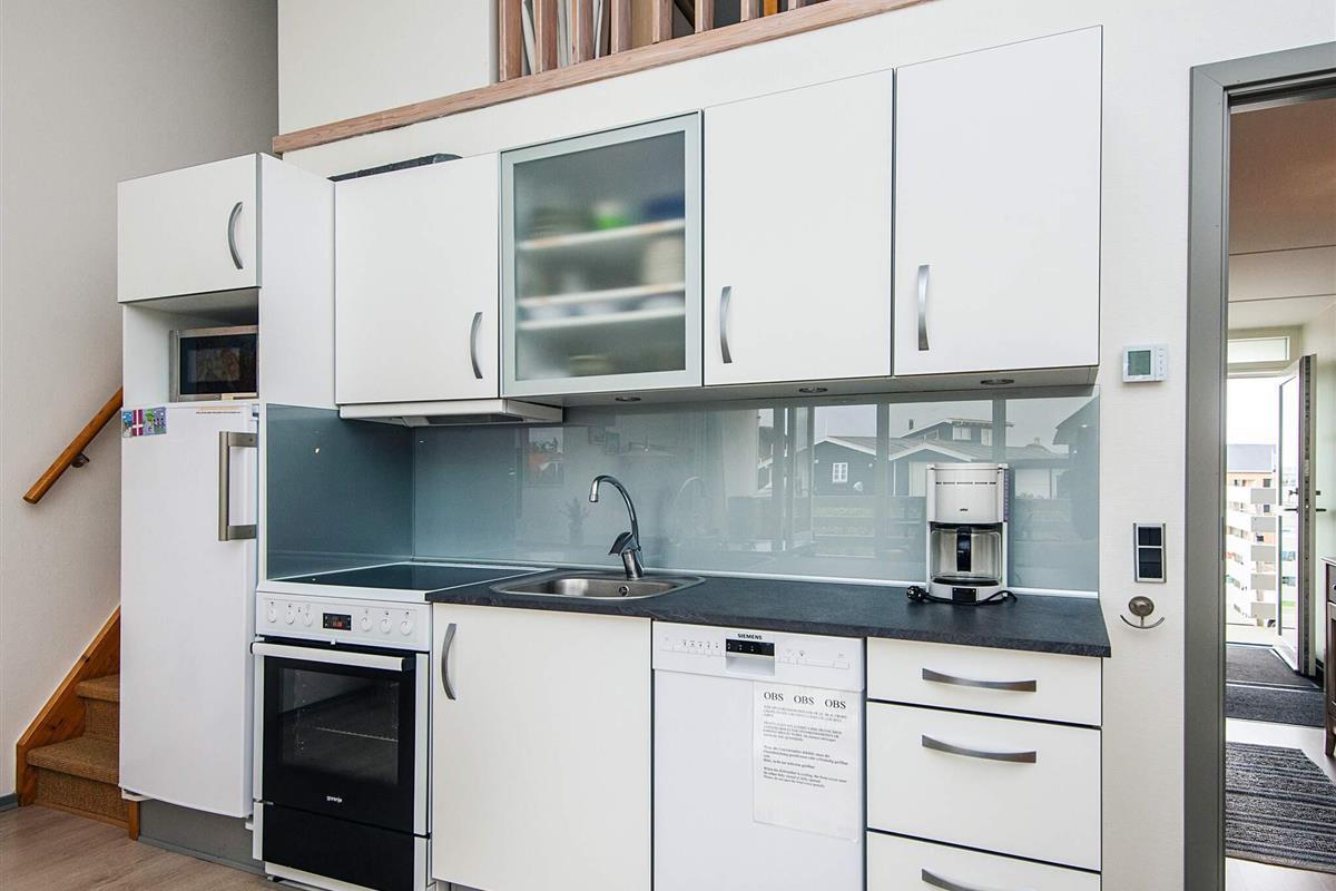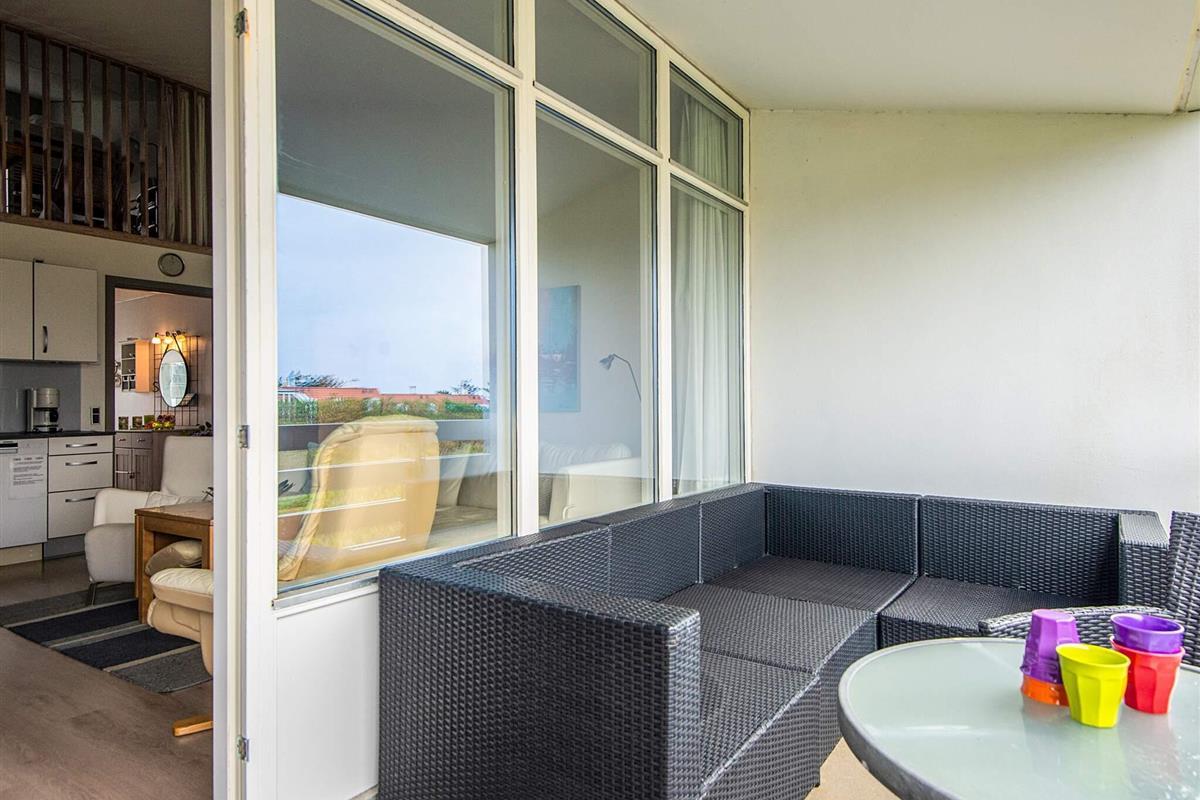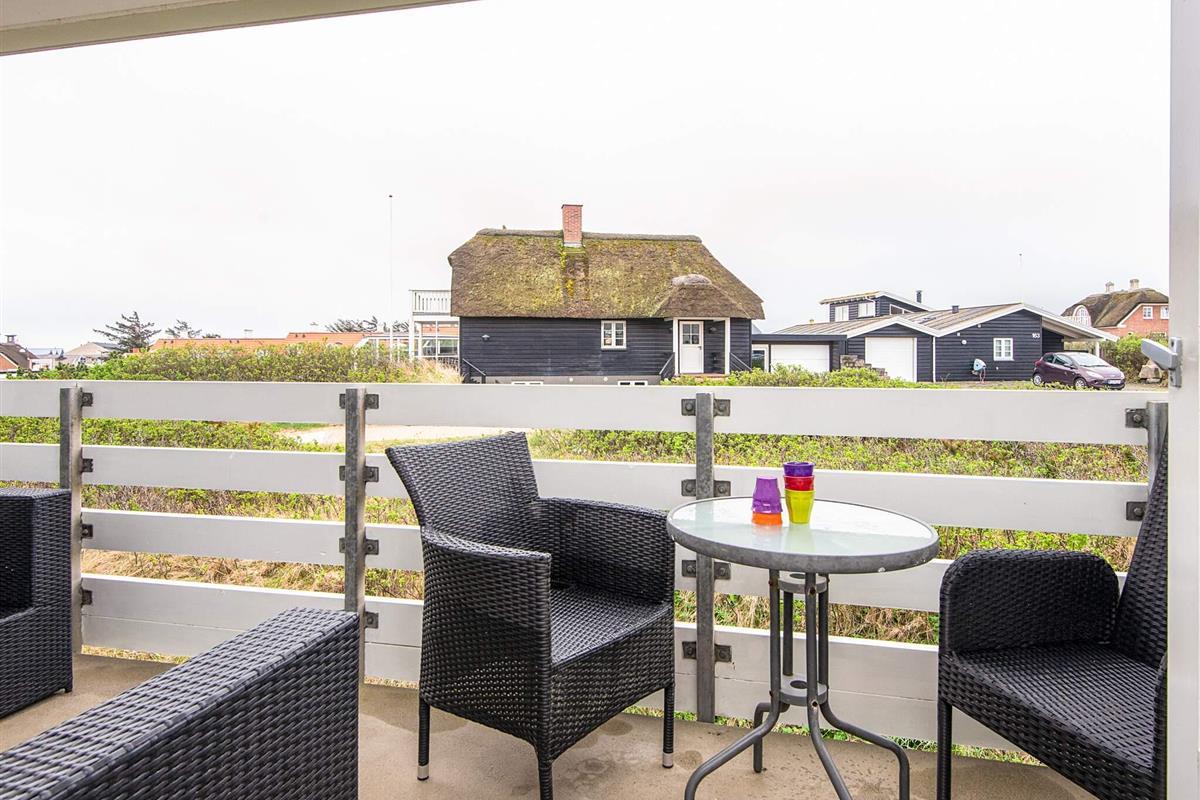 Die Wohnung verfügt über einen kombinierten Wohn-/Essbereich mit Zugang zu einem überdachten Balkon. Vom Balkon aus haben Sie einen Blick auf die Dünen, Søndervig und den Ringkøbing Fjord.
