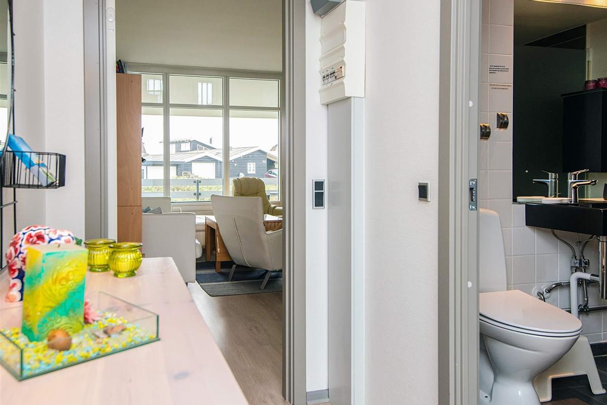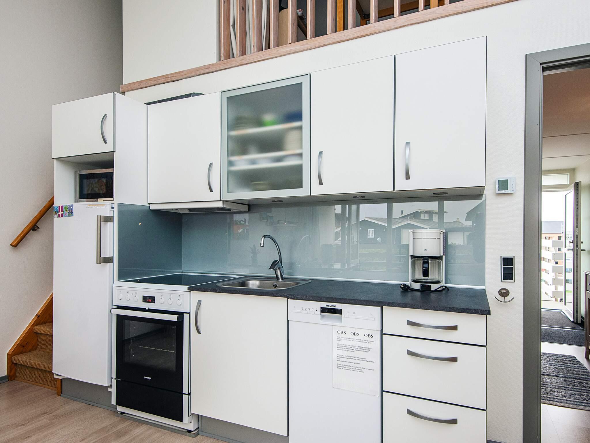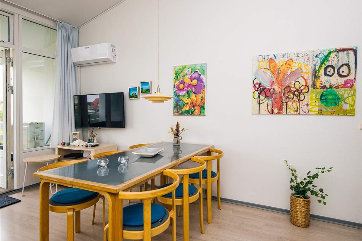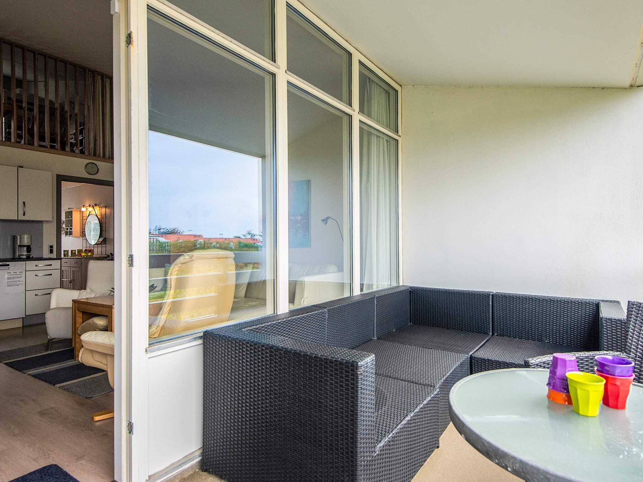 Die Wohnung verfügt über einen kombinierten Wohn-/Essbereich mit Zugang zu einem überdachten Balkon. Vom Balkon aus haben Sie einen Blick auf die Dünen, Søndervig und den Ringkøbing Fjord.