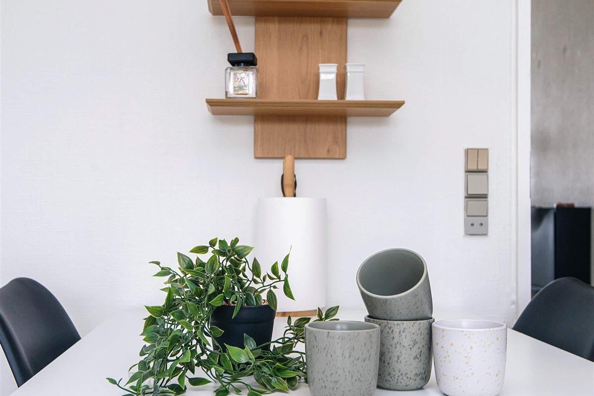 Küche: E-Herd, Kühlschr. m. Gefrierfach, Kaffeem., Spülm.
