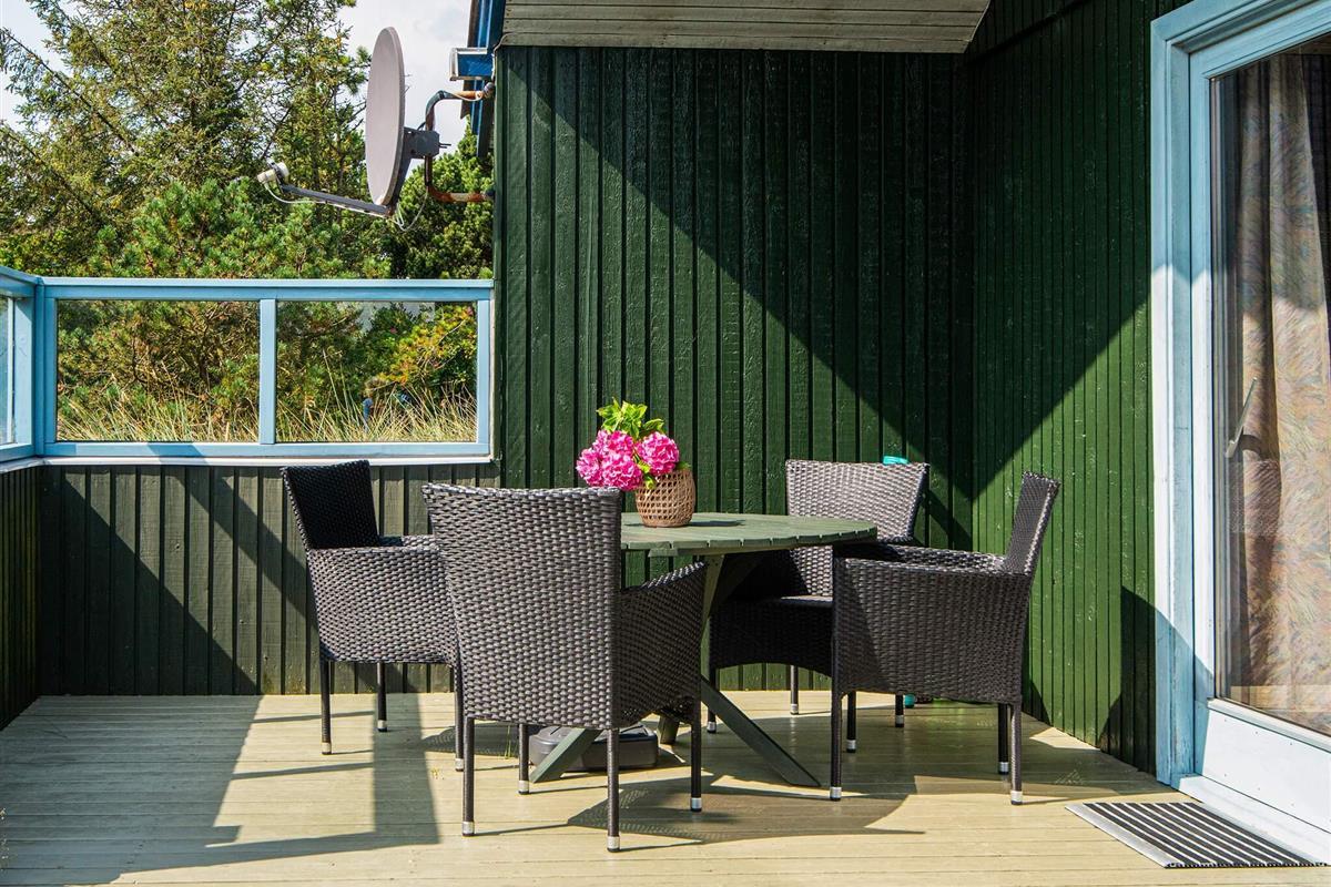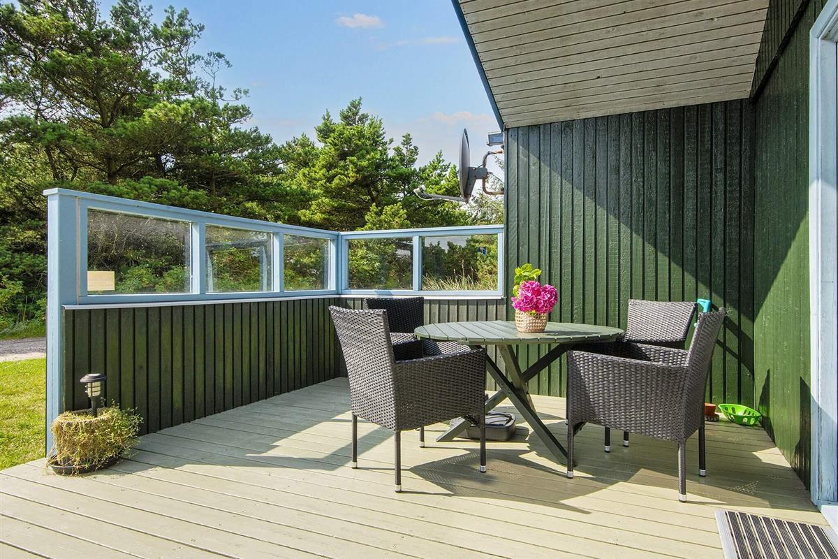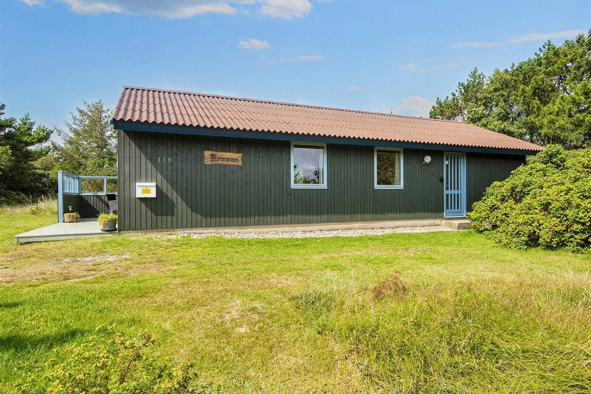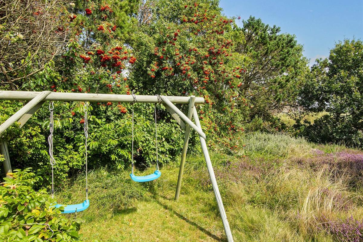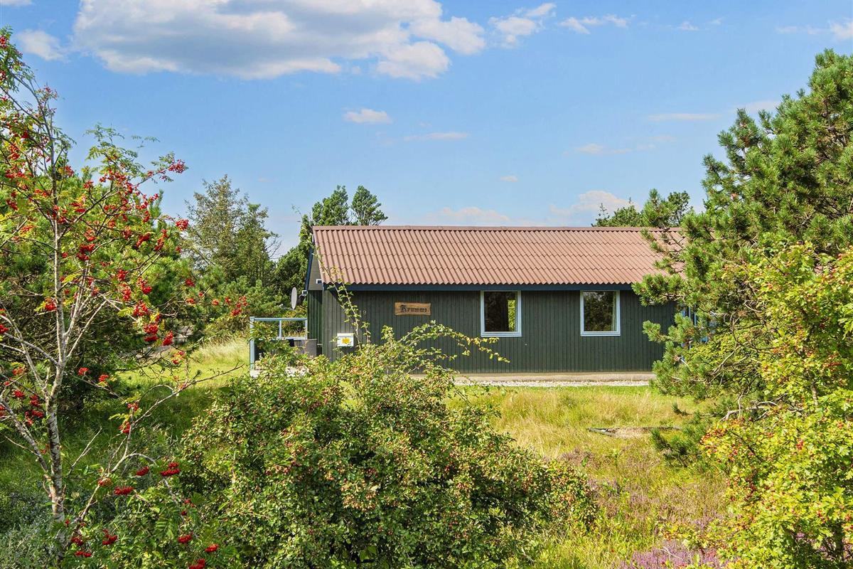 Ferienhaus auf einem Naturgrundstück nahe an der Nordsee und Søndervig. Im Haus befindet sich eine Küche, die mit dem Wohnraum verbunden ist, eine Stereoanlage mit CD-Player, TV sowie gratis Internet. Auf der Terrasse stehen Gartenmöbel und ein Grill bereit. Für die kleinsten Gäste stehen ein Kinderbett und ein Hochstuhl, sowie ein Sandkasten und eine Schaukel bereit.