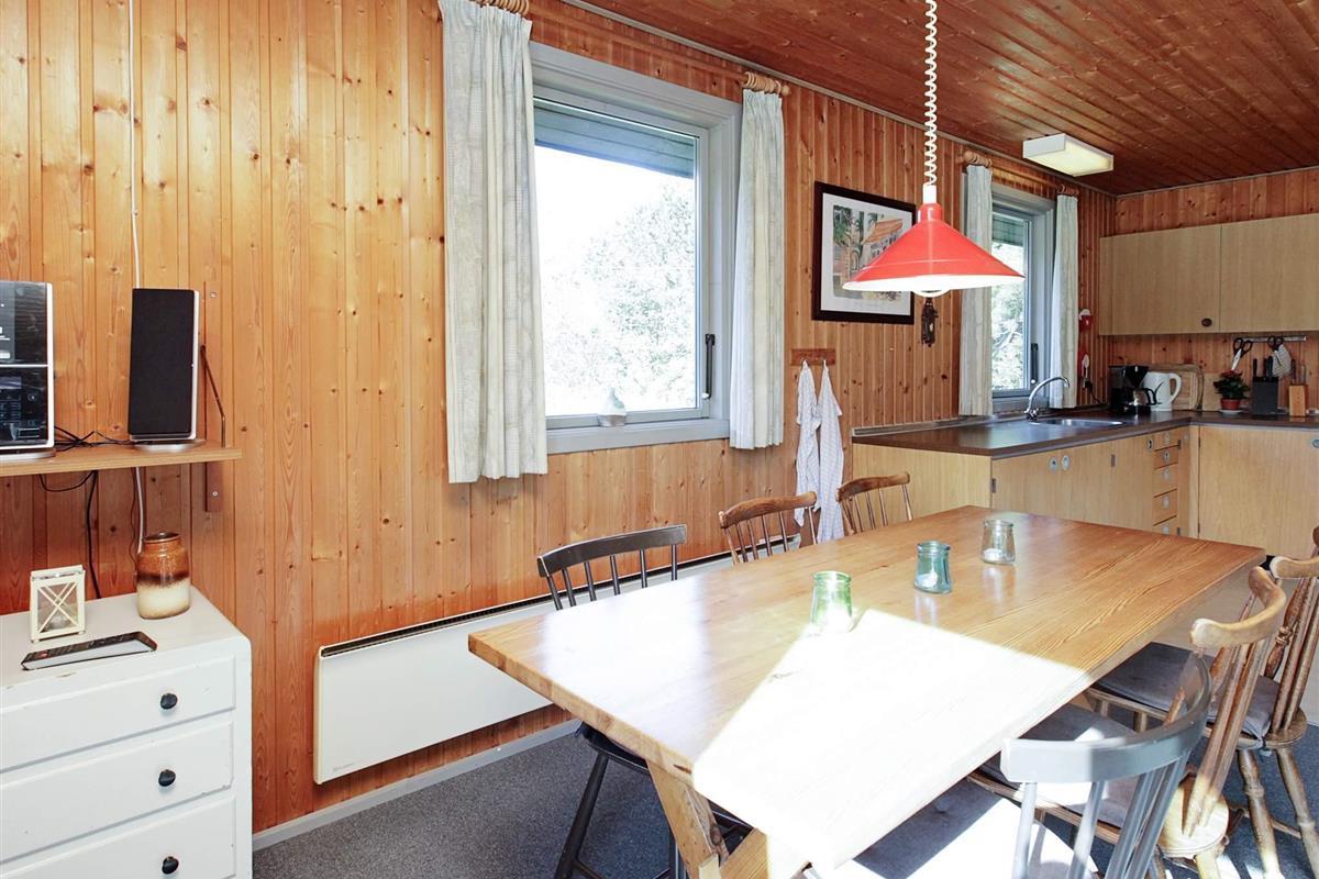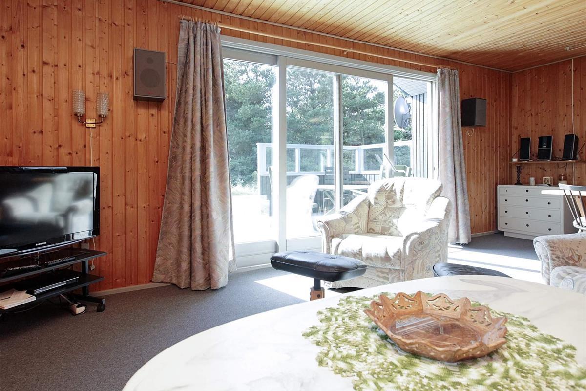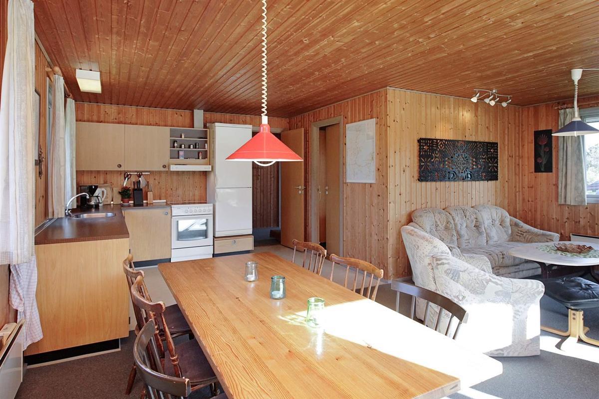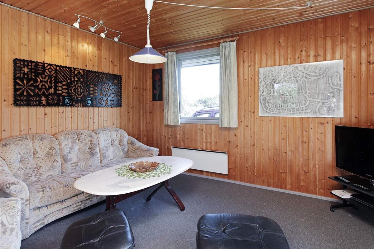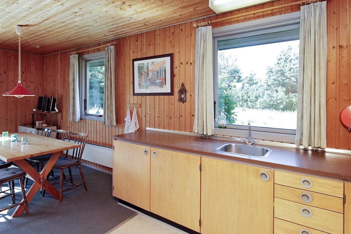 Ferienhaus auf einem Naturgrundstück nahe an der Nordsee und Søndervig. Im Haus befindet sich eine Küche, die mit dem Wohnraum verbunden ist, eine Stereoanlage mit CD-Player, TV sowie gratis Internet. Auf der Terrasse stehen Gartenmöbel und ein Grill bereit. Für die kleinsten Gäste stehen ein Kinderbett und ein Hochstuhl, sowie ein Sandkasten und eine Schaukel bereit.
