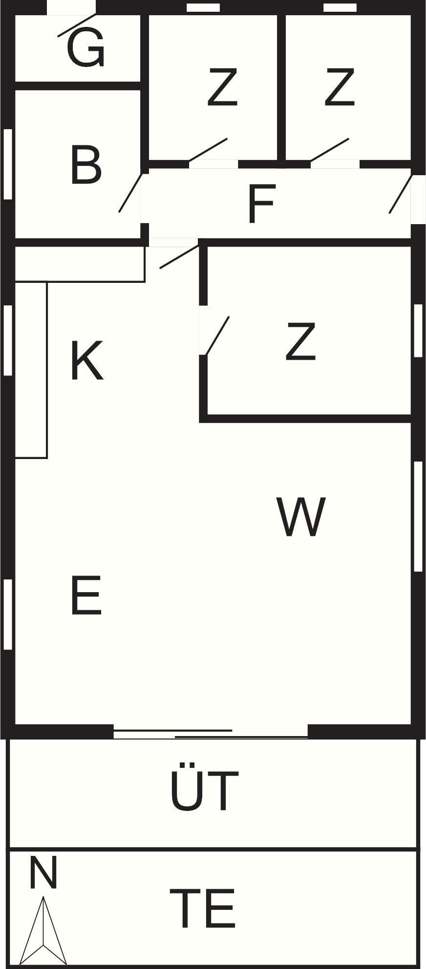 Bad: WC, Waschb., Dusche, Fußbodenheiz.