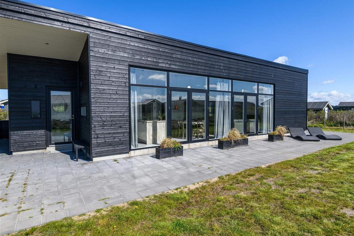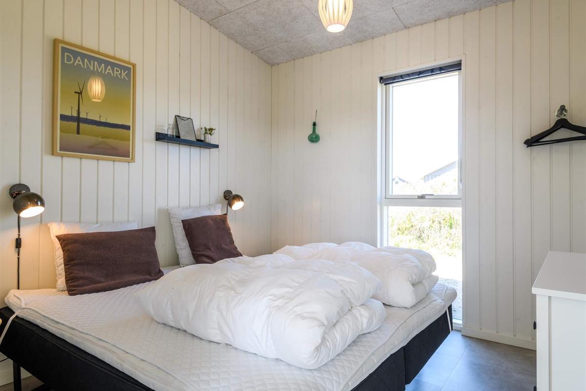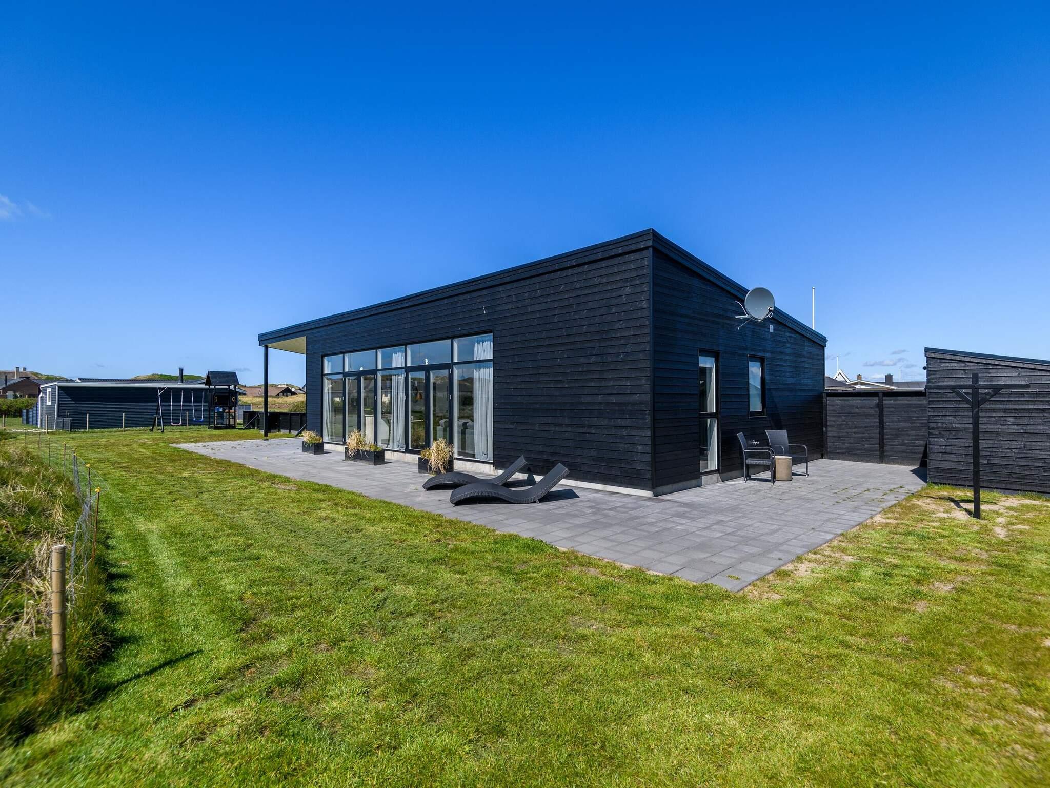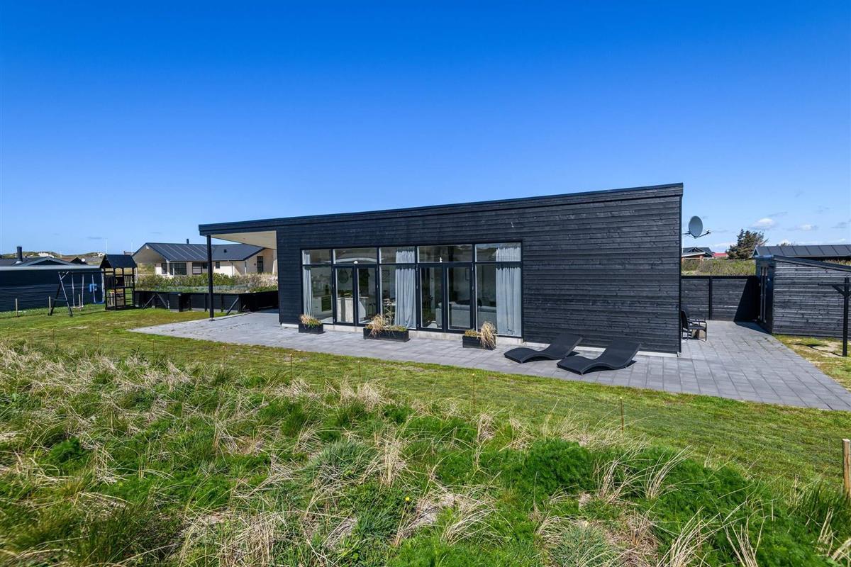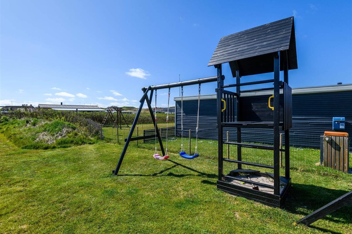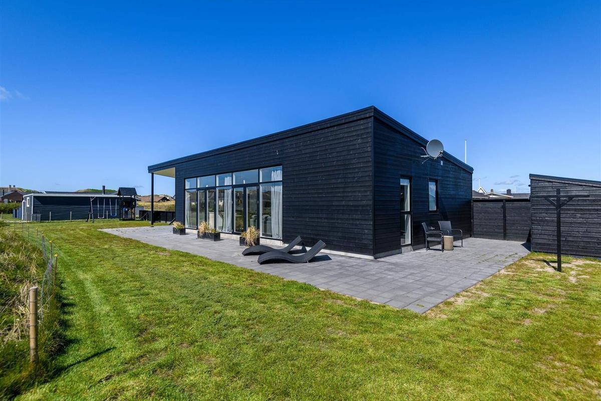MAX 1 HUND - Unweit der Nordseeküste und des Strandes steht bei Søndervig dieses 2019 erbaute, geräumige Ferienhaus. Es ist innen hell und modern eingerichtet, das Mobiliar geschmackvoll zusammengestellt. Alle Zimmer sind hell und luftig gestaltet. Es gibt einen großen Küchen-/Wohnbereich für das Familienleben, mit bodentiefem Fensterbereich für viel Tageslicht und schönen Ausblick. Von hier aus haben Sie Zugang zu einer teilweise überdachten Terrassenfläche und zu einer Rasenfläche mit Spielgeräten für die Kinder. Alle vier Schlafzimmer im Haus bieten ausreichend Platz und sind mit guten Betten ausgestattet. Ein wirklich ansprechendes und wohnliches Ferienhaus, in reizvoller Umgebung nahe Strand und Nordsee gelegen.