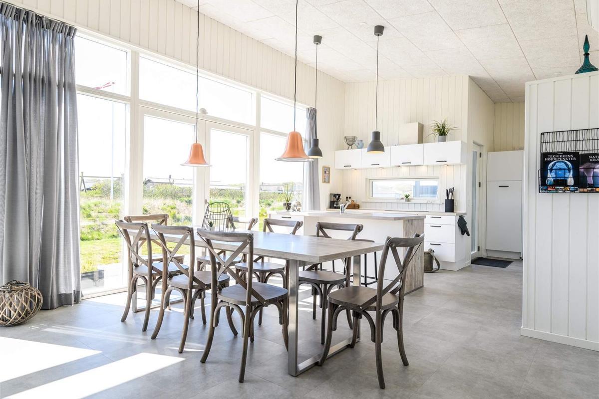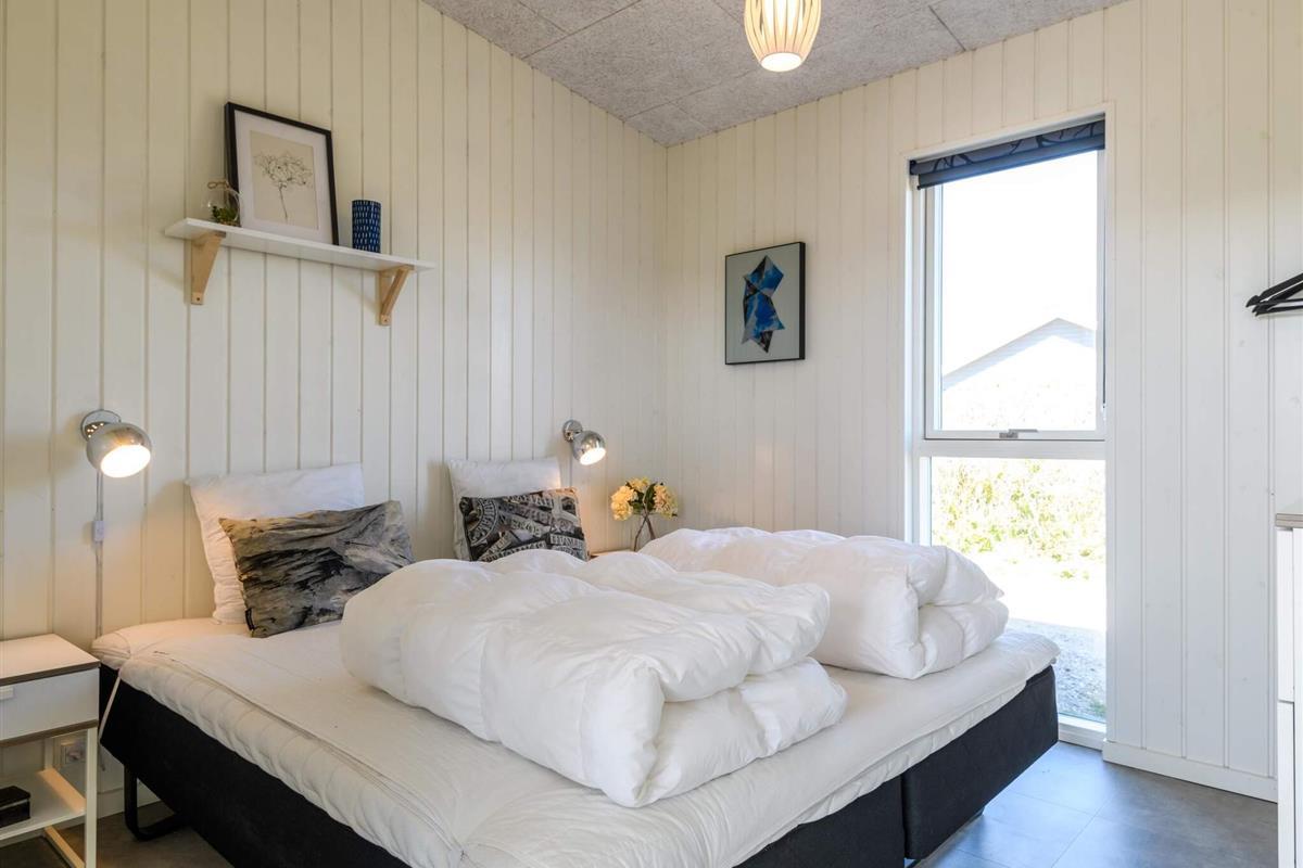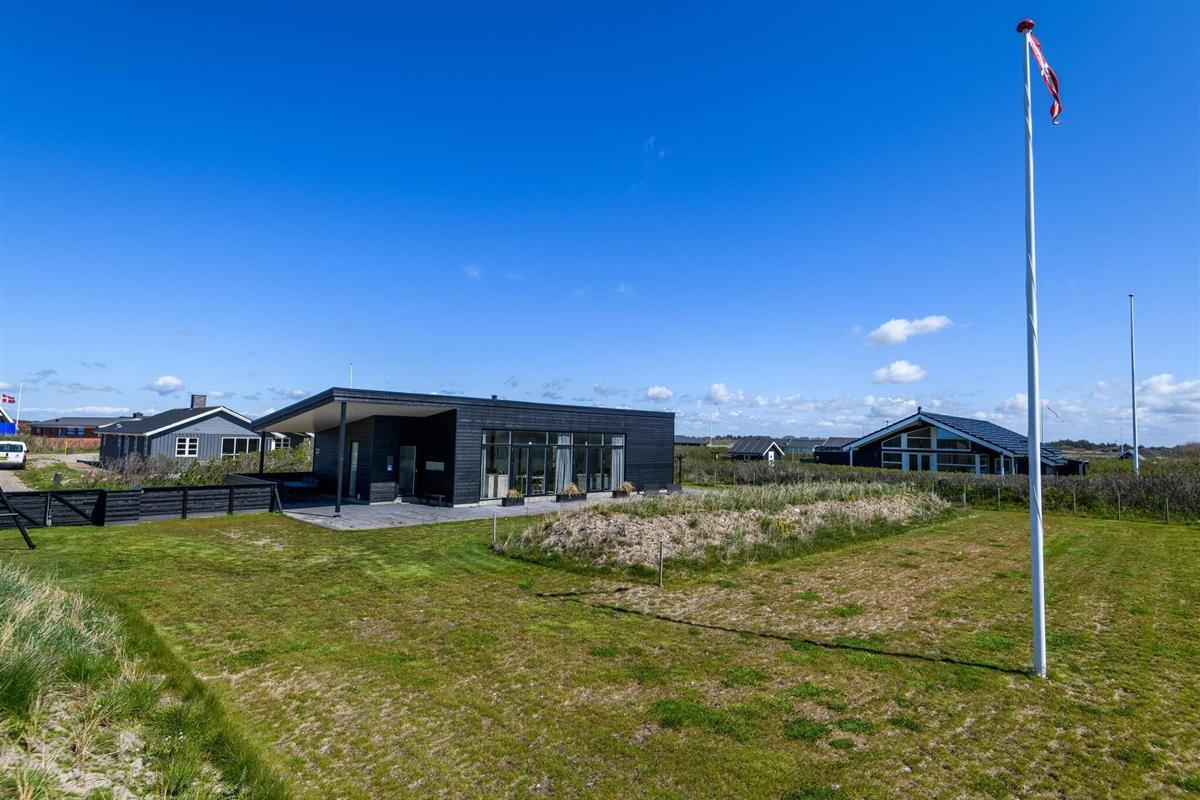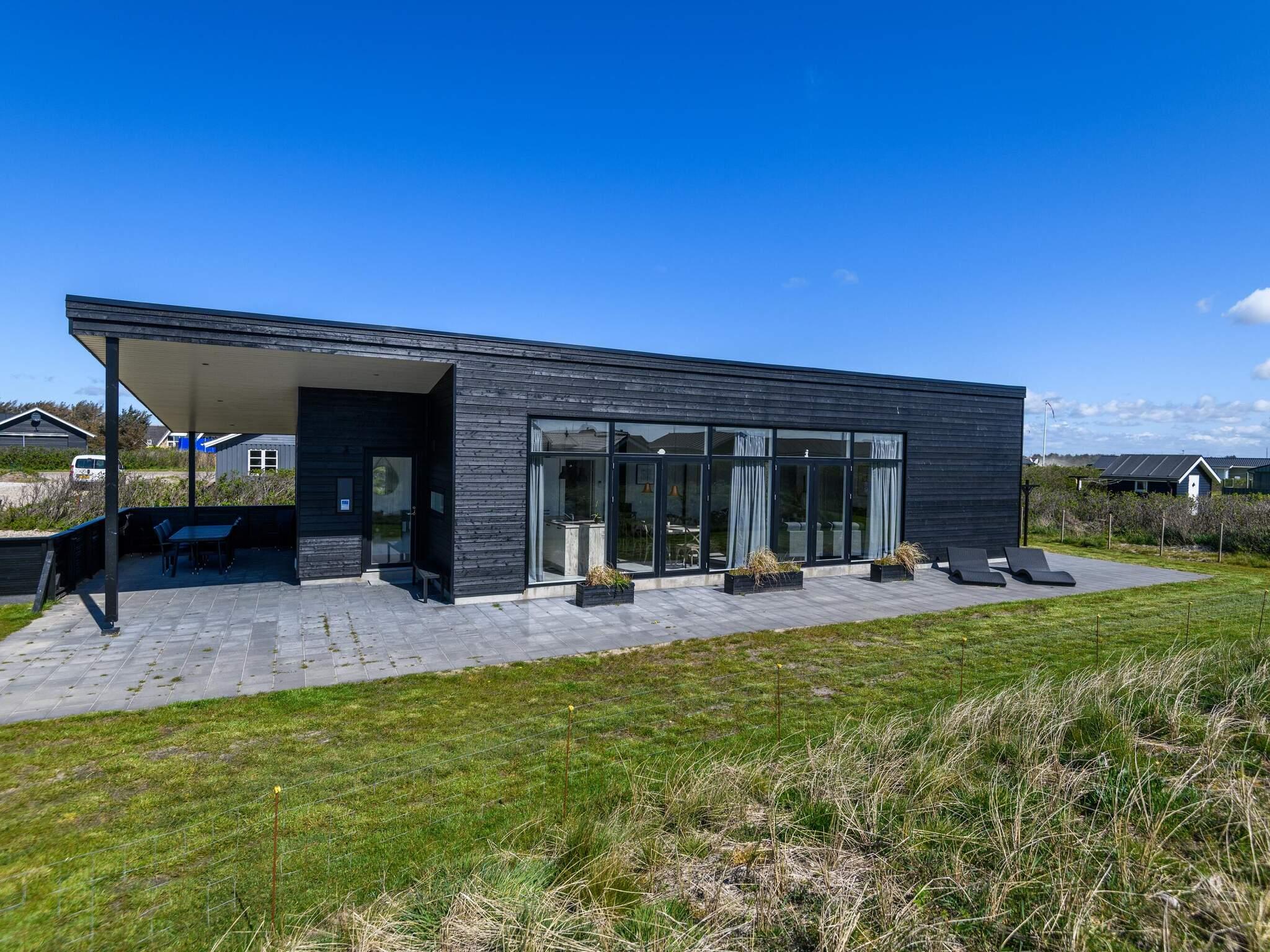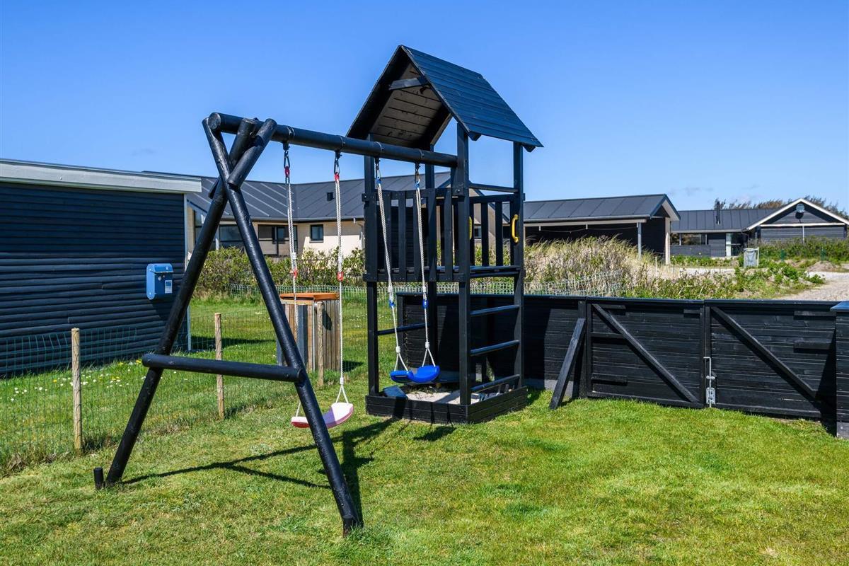 MAX 1 HUND - Unweit der Nordseeküste und des Strandes steht bei Søndervig dieses 2019 erbaute, geräumige Ferienhaus. Es ist innen hell und modern eingerichtet, das Mobiliar geschmackvoll zusammengestellt. Alle Zimmer sind hell und luftig gestaltet. Es gibt einen großen Küchen-/Wohnbereich für das Familienleben, mit bodentiefem Fensterbereich für viel Tageslicht und schönen Ausblick. Von hier aus haben Sie Zugang zu einer teilweise überdachten Terrassenfläche und zu einer Rasenfläche mit Spielgeräten für die Kinder. Alle vier Schlafzimmer im Haus bieten ausreichend Platz und sind mit guten Betten ausgestattet. Ein wirklich ansprechendes und wohnliches Ferienhaus, in reizvoller Umgebung nahe Strand und Nordsee gelegen.