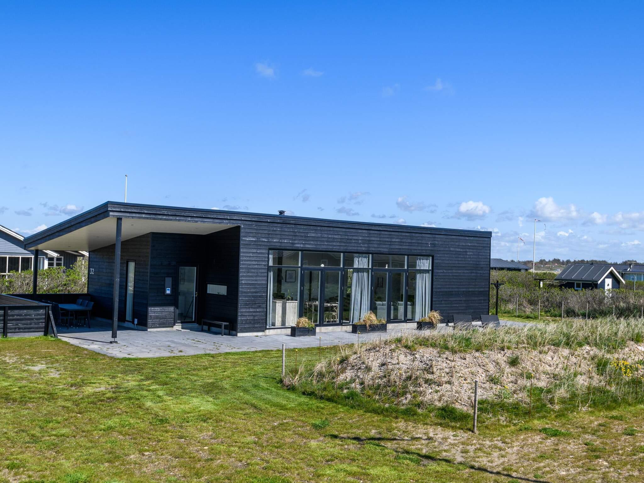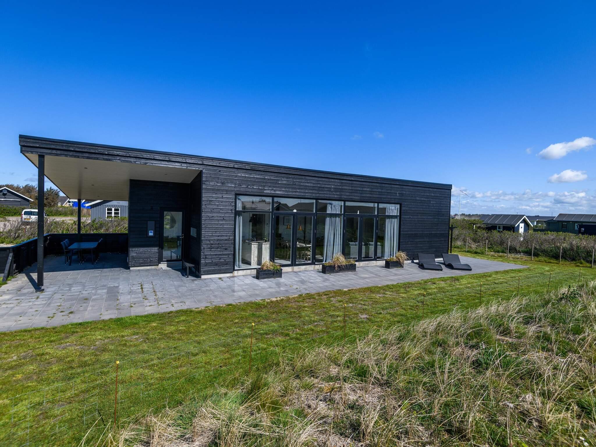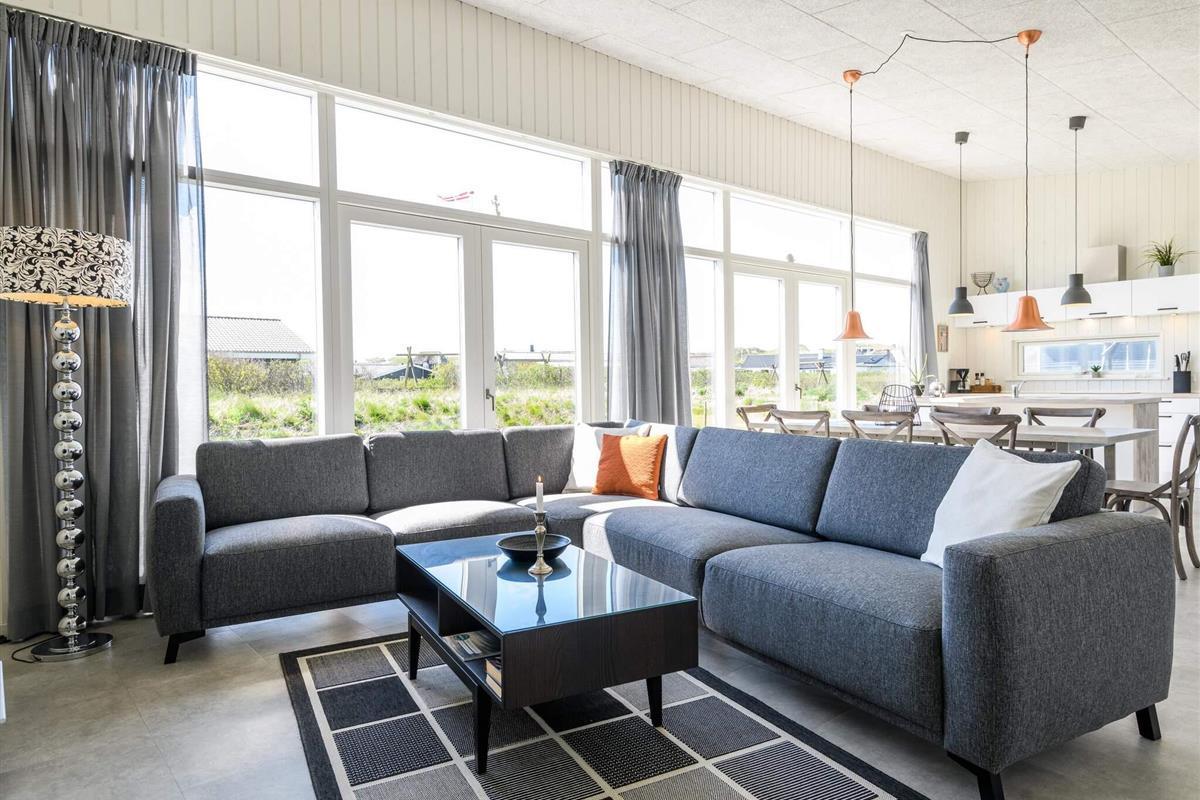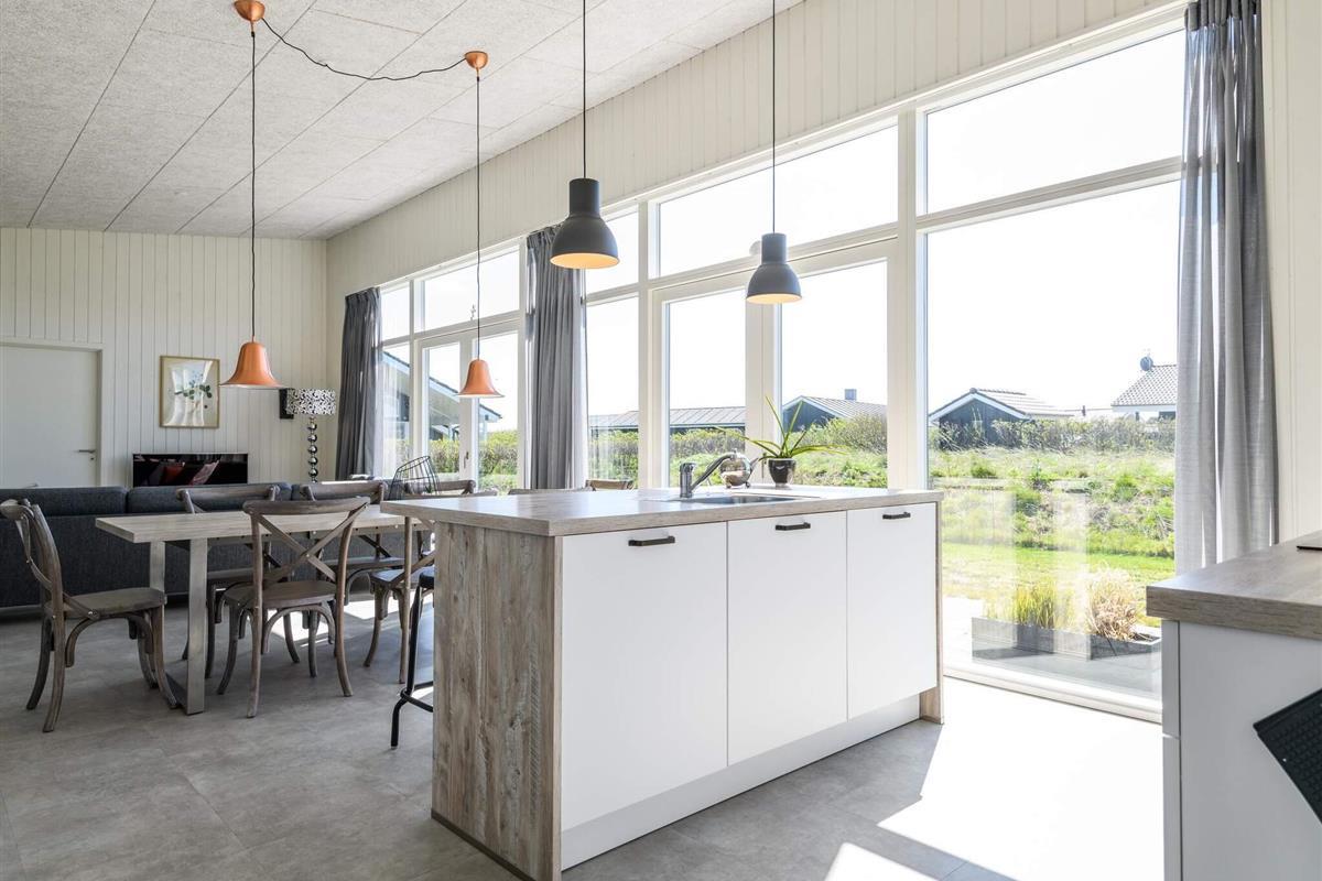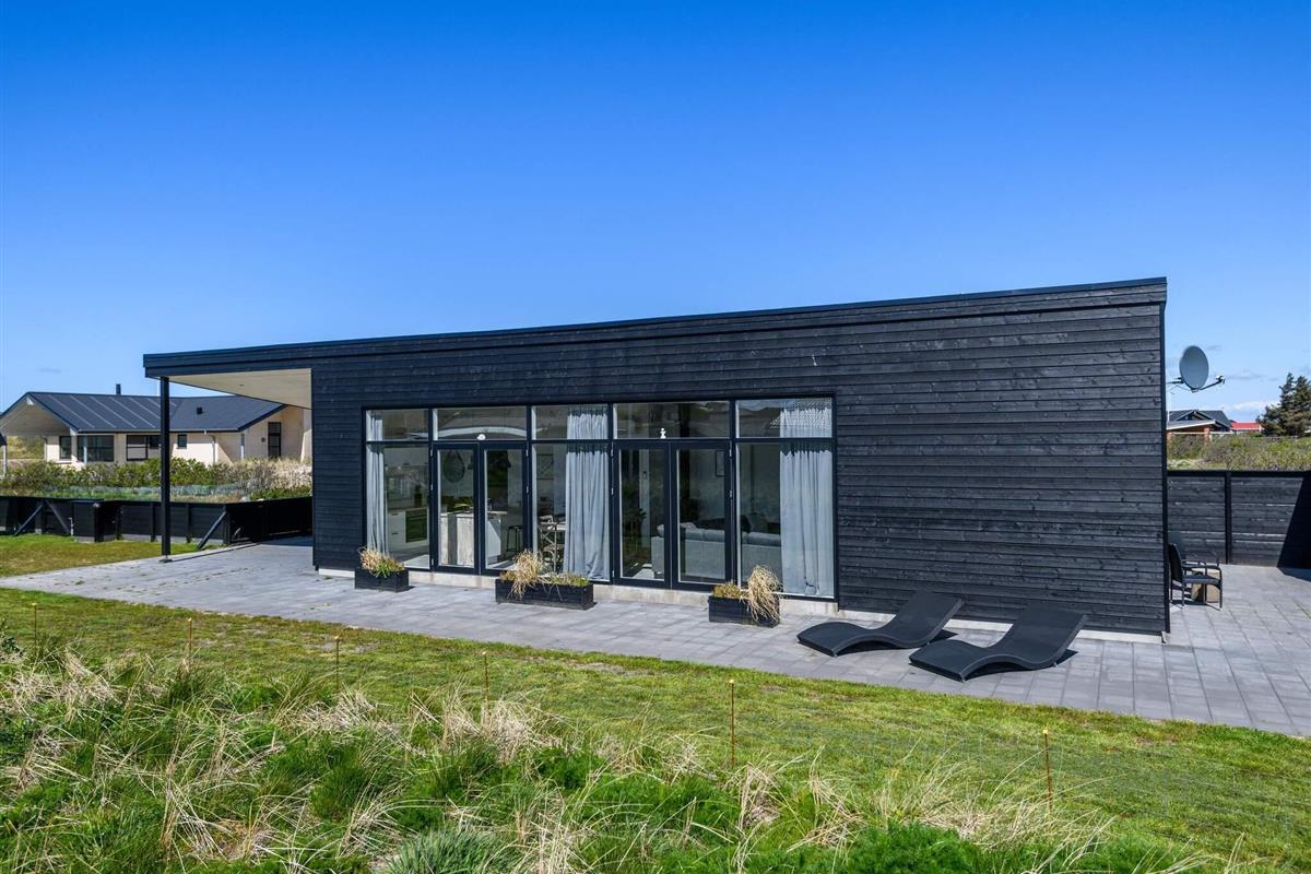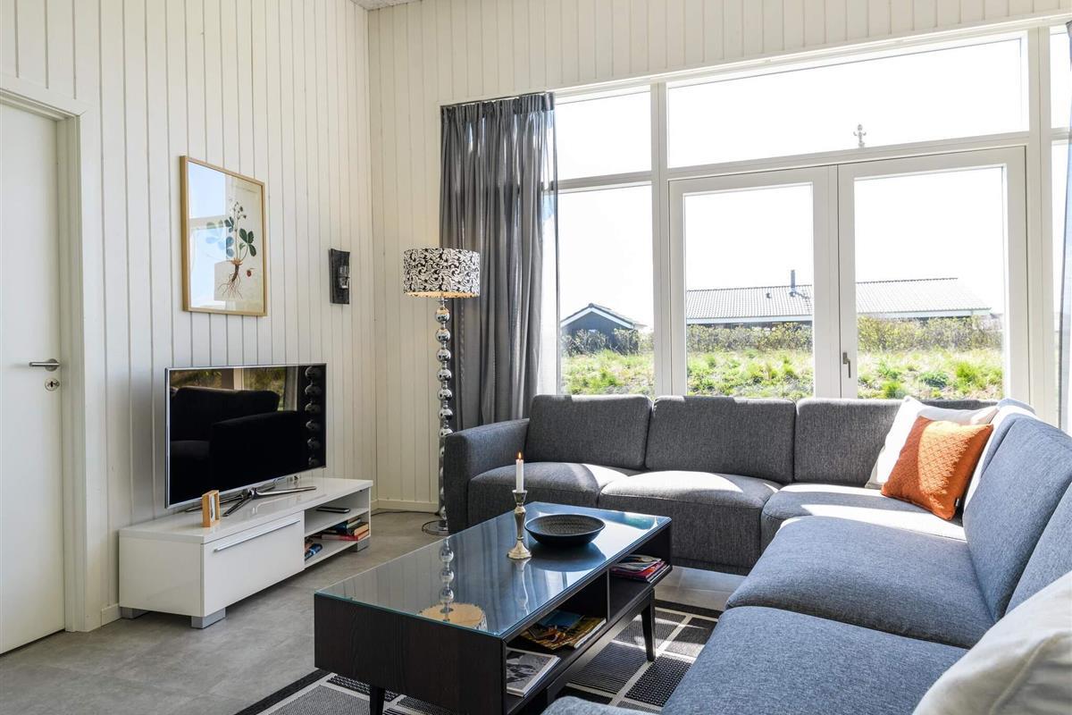 MAX 1 HUND - Unweit der Nordseeküste und des Strandes steht bei Søndervig dieses 2019 erbaute, geräumige Ferienhaus. Es ist innen hell und modern eingerichtet, das Mobiliar geschmackvoll zusammengestellt. Alle Zimmer sind hell und luftig gestaltet. Es gibt einen großen Küchen-/Wohnbereich für das Familienleben, mit bodentiefem Fensterbereich für viel Tageslicht und schönen Ausblick. Von hier aus haben Sie Zugang zu einer teilweise überdachten Terrassenfläche und zu einer Rasenfläche mit Spielgeräten für die Kinder. Alle vier Schlafzimmer im Haus bieten ausreichend Platz und sind mit guten Betten ausgestattet. Ein wirklich ansprechendes und wohnliches Ferienhaus, in reizvoller Umgebung nahe Strand und Nordsee gelegen.