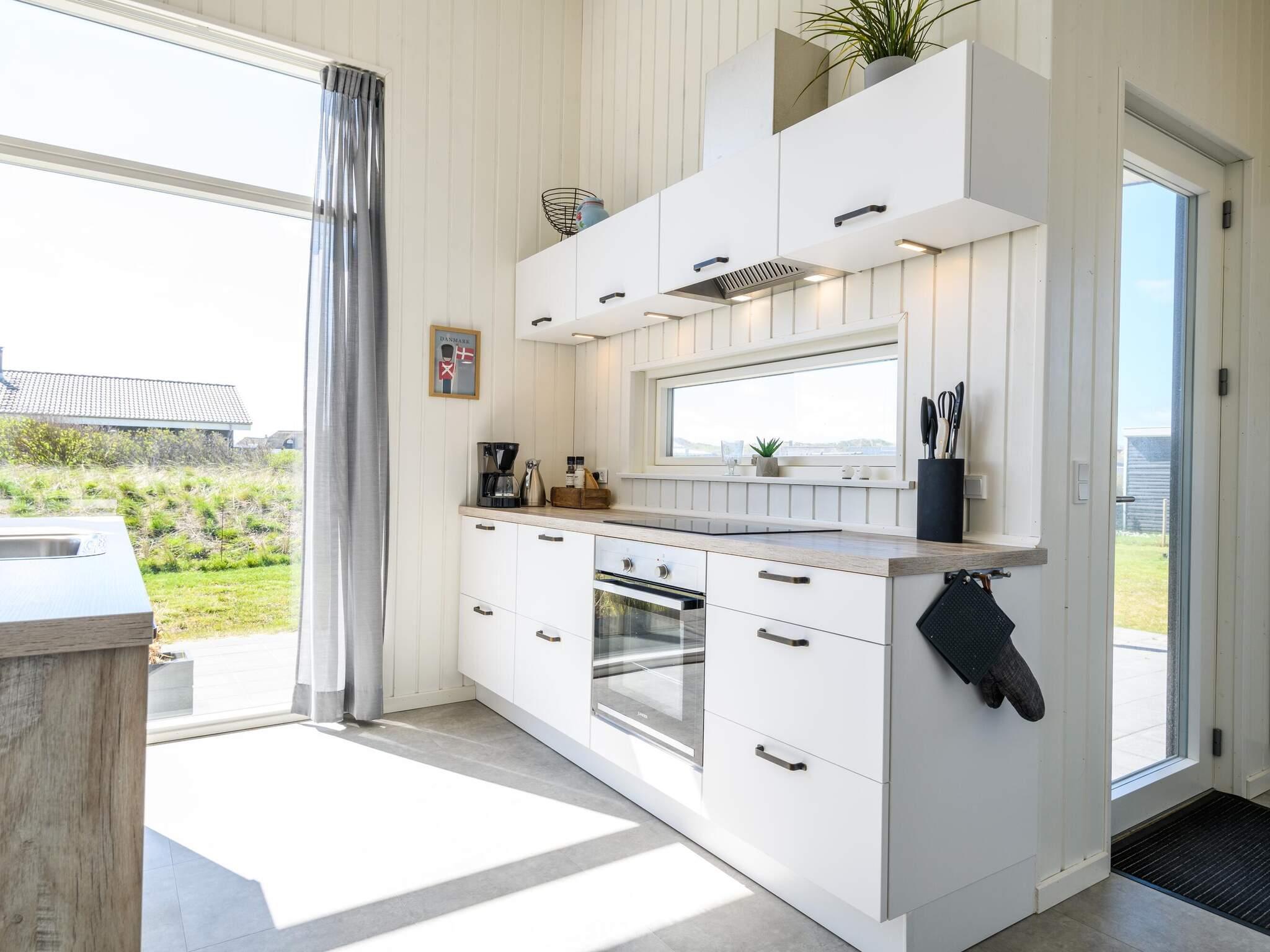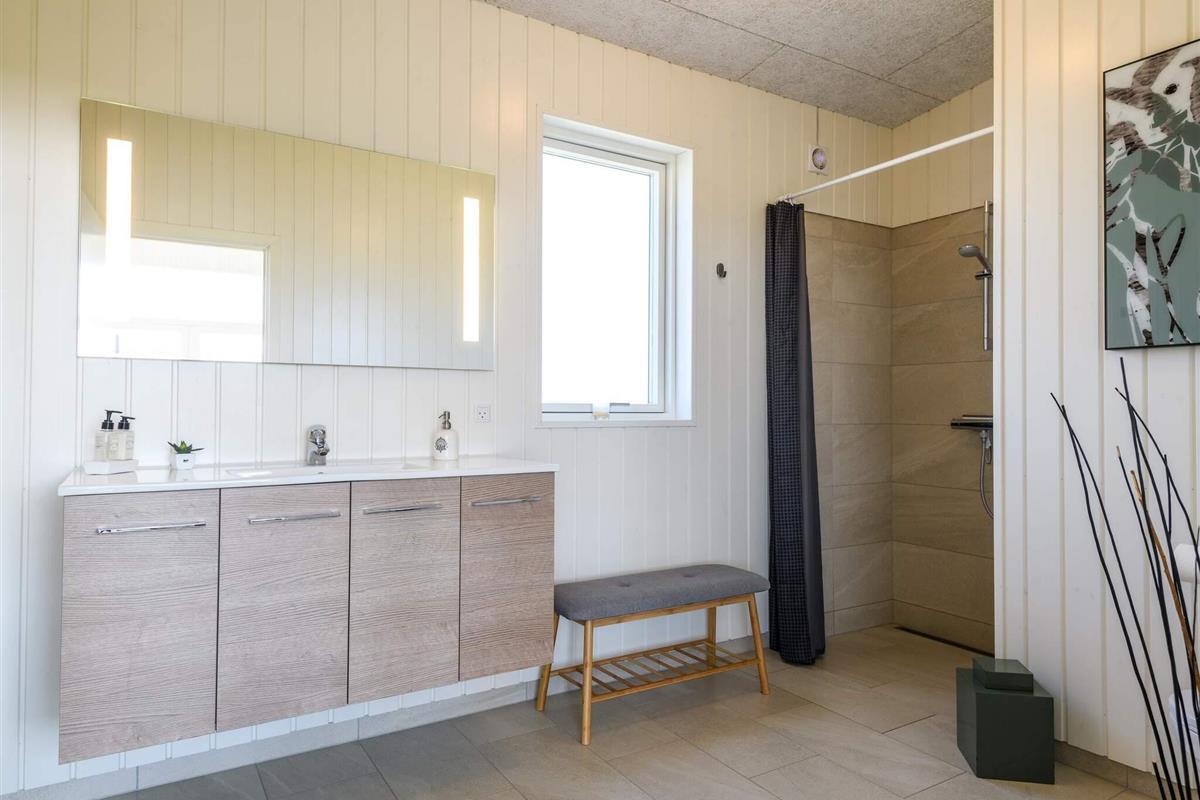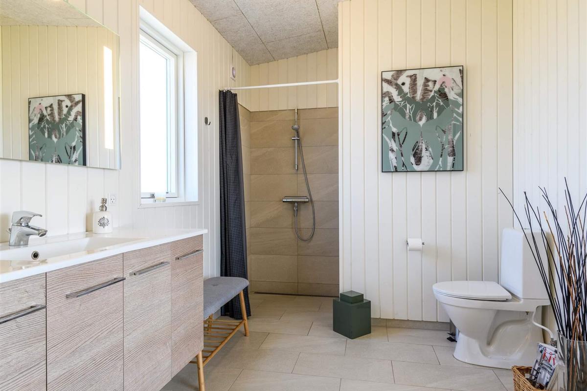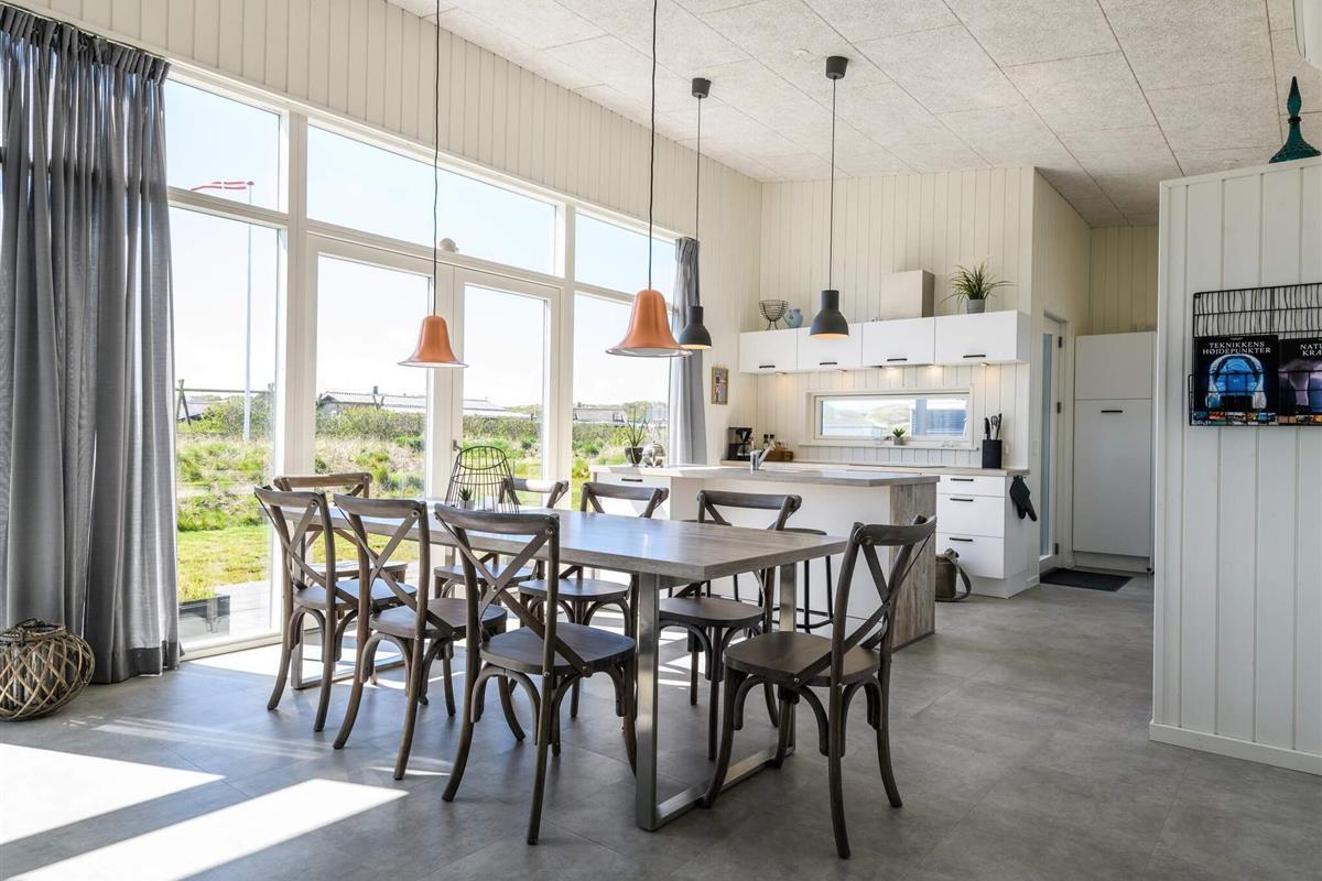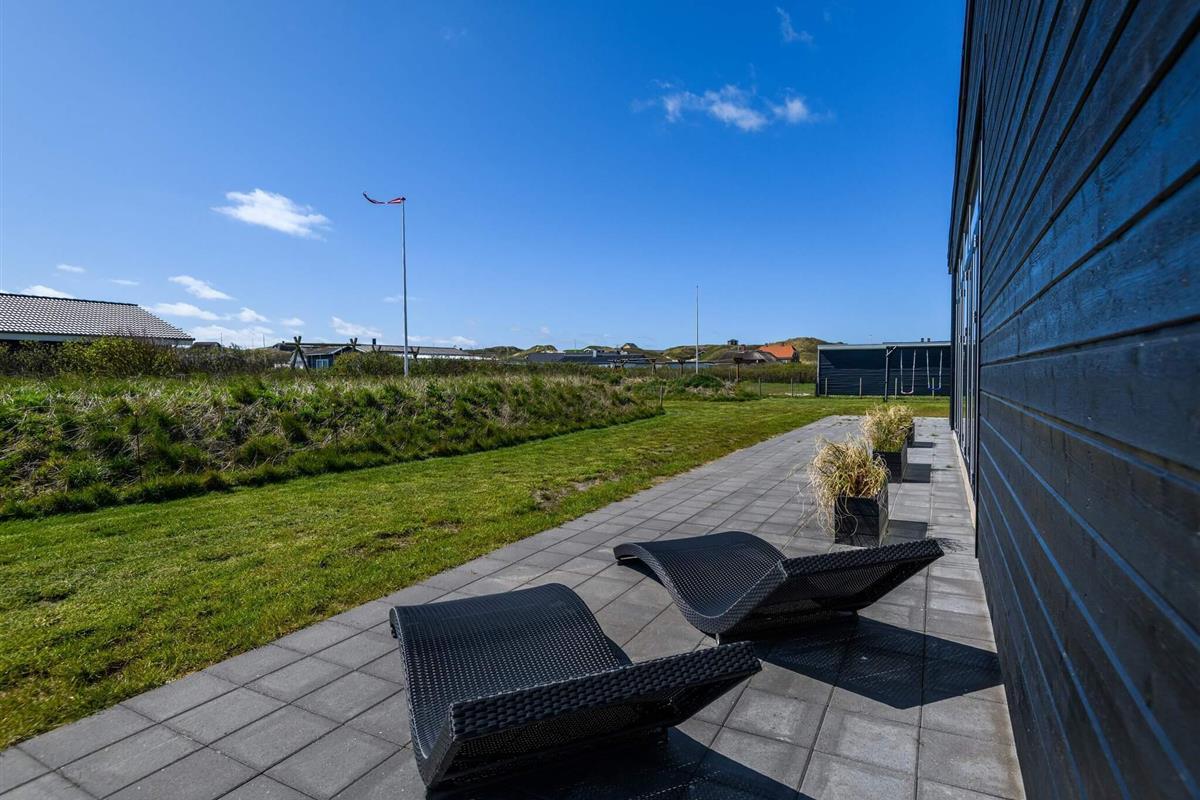 MAX 1 HUND - Unweit der Nordseeküste und des Strandes steht bei Søndervig dieses 2019 erbaute, geräumige Ferienhaus. Es ist innen hell und modern eingerichtet, das Mobiliar geschmackvoll zusammengestellt. Alle Zimmer sind hell und luftig gestaltet. Es gibt einen großen Küchen-/Wohnbereich für das Familienleben, mit bodentiefem Fensterbereich für viel Tageslicht und schönen Ausblick. Von hier aus haben Sie Zugang zu einer teilweise überdachten Terrassenfläche und zu einer Rasenfläche mit Spielgeräten für die Kinder. Alle vier Schlafzimmer im Haus bieten ausreichend Platz und sind mit guten Betten ausgestattet. Ein wirklich ansprechendes und wohnliches Ferienhaus, in reizvoller Umgebung nahe Strand und Nordsee gelegen.
