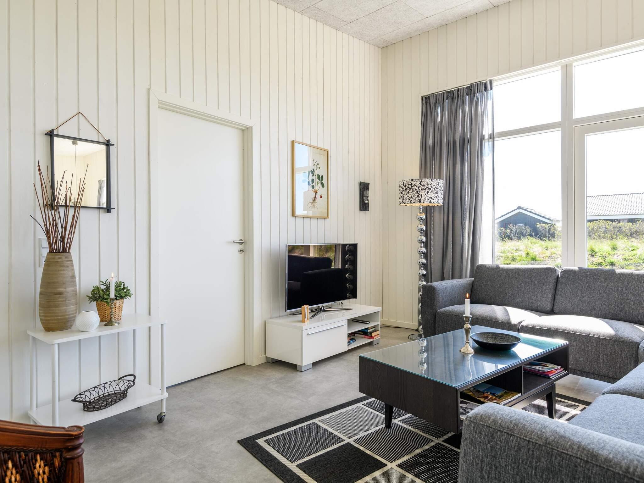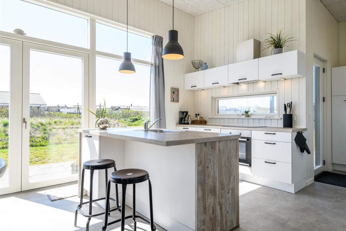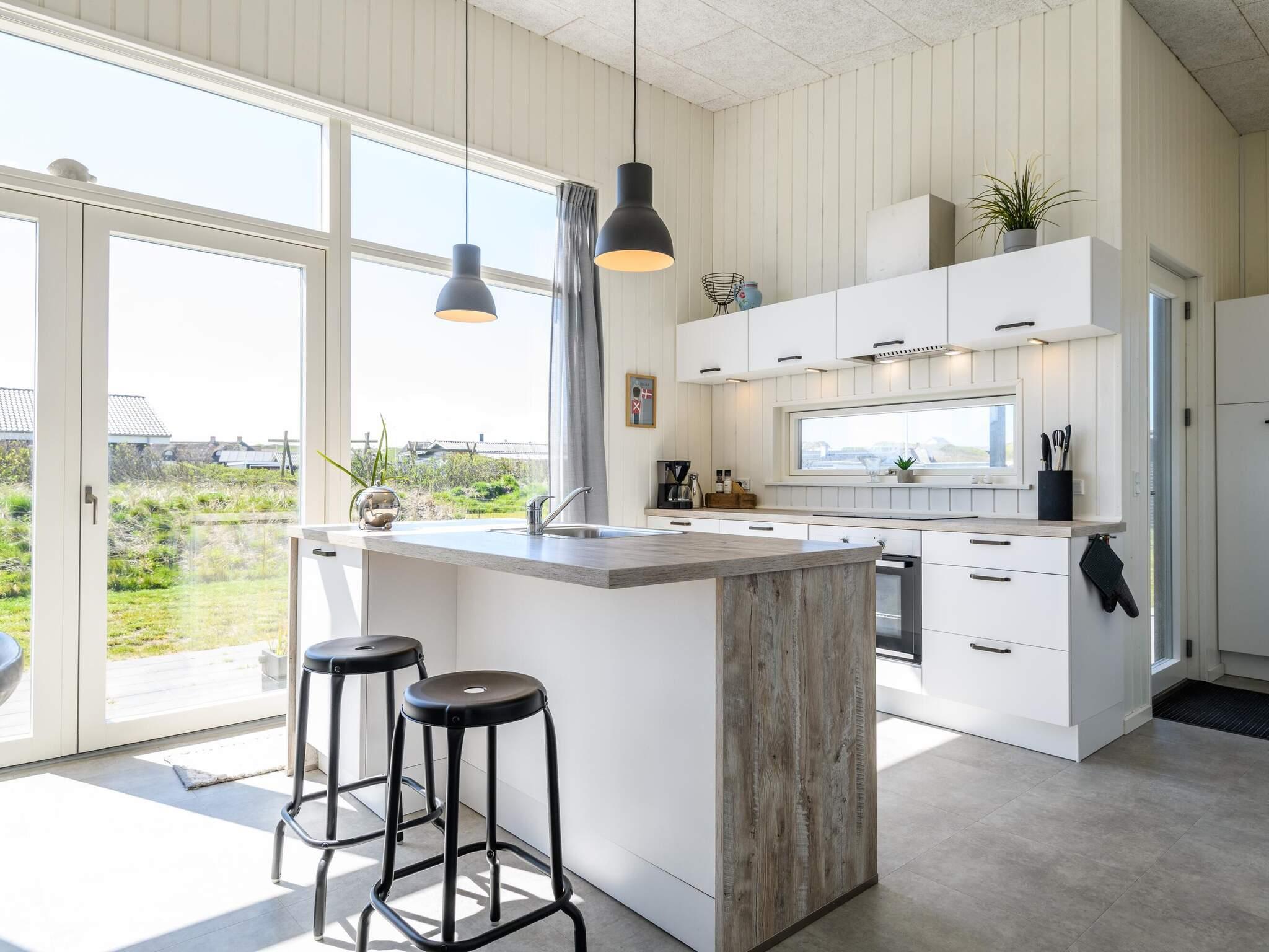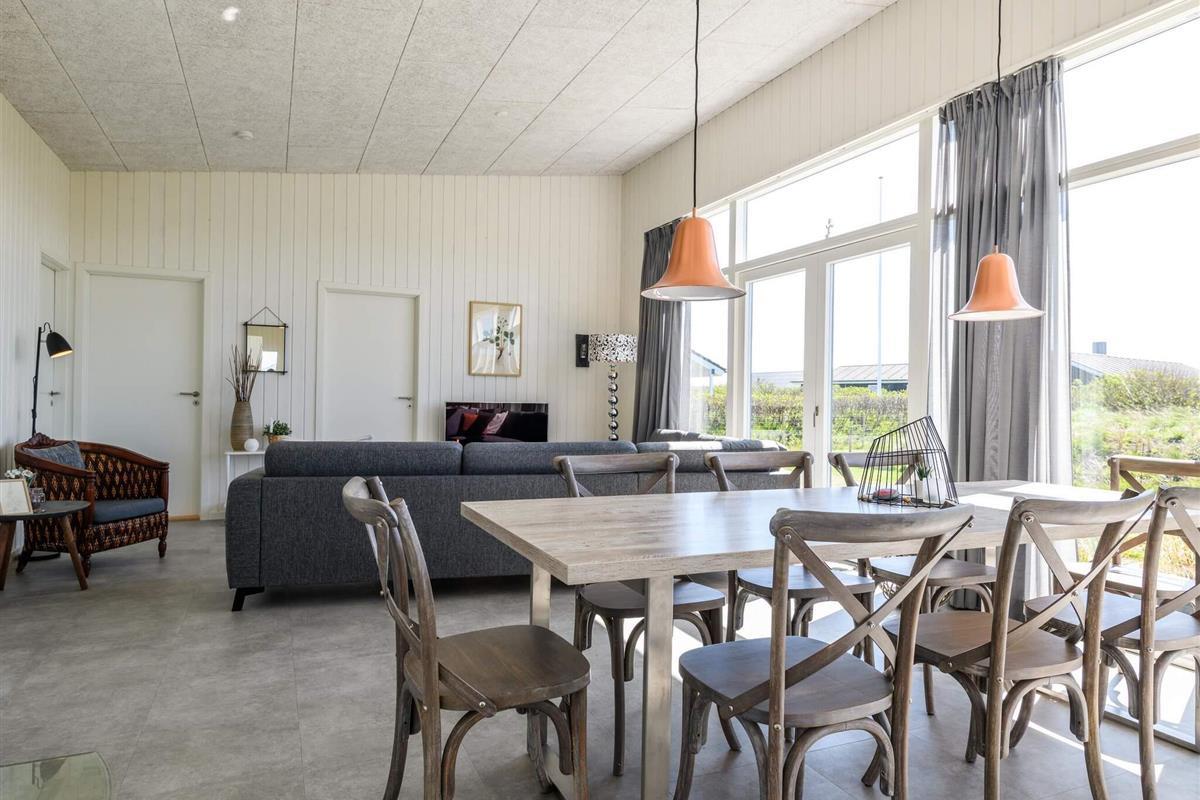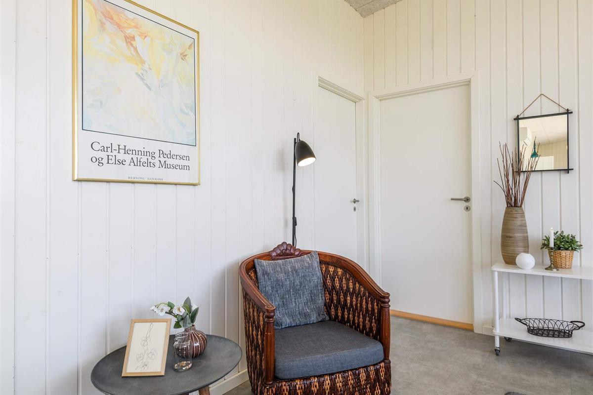 MAX 1 HUND - Unweit der Nordseeküste und des Strandes steht bei Søndervig dieses 2019 erbaute, geräumige Ferienhaus. Es ist innen hell und modern eingerichtet, das Mobiliar geschmackvoll zusammengestellt. Alle Zimmer sind hell und luftig gestaltet. Es gibt einen großen Küchen-/Wohnbereich für das Familienleben, mit bodentiefem Fensterbereich für viel Tageslicht und schönen Ausblick. Von hier aus haben Sie Zugang zu einer teilweise überdachten Terrassenfläche und zu einer Rasenfläche mit Spielgeräten für die Kinder. Alle vier Schlafzimmer im Haus bieten ausreichend Platz und sind mit guten Betten ausgestattet. Ein wirklich ansprechendes und wohnliches Ferienhaus, in reizvoller Umgebung nahe Strand und Nordsee gelegen.
