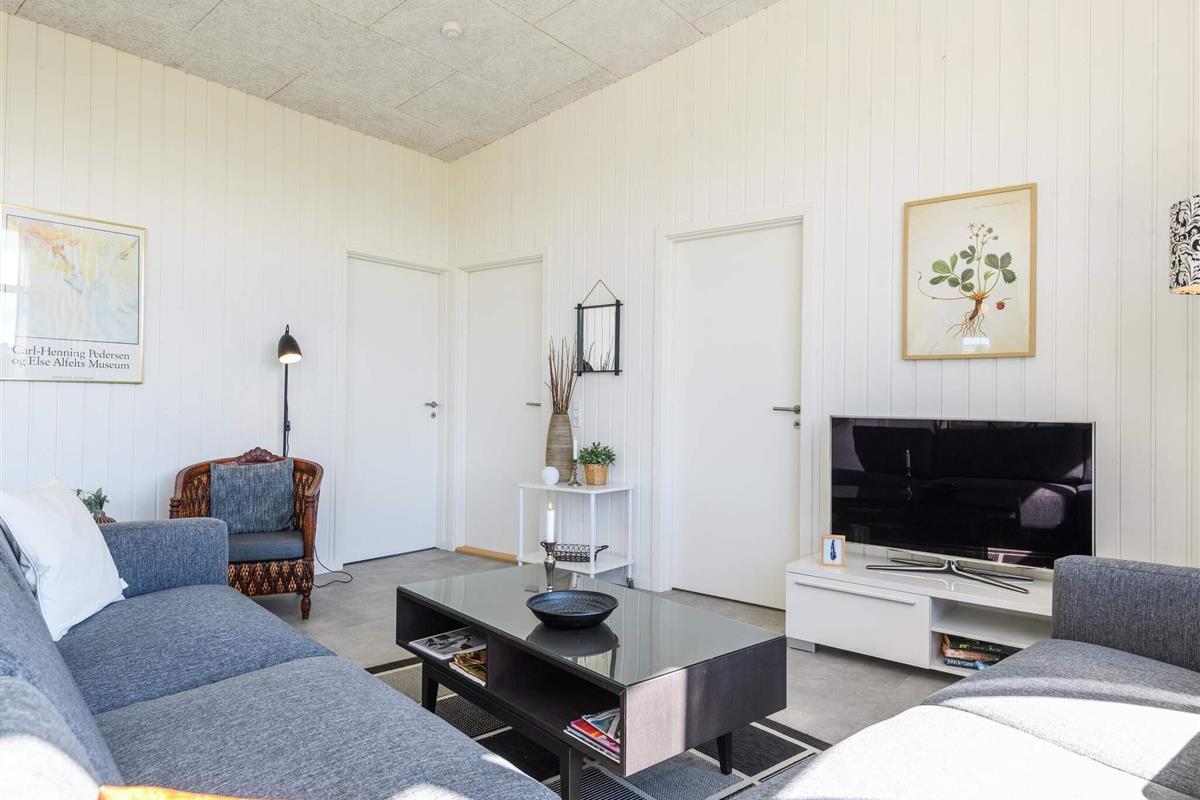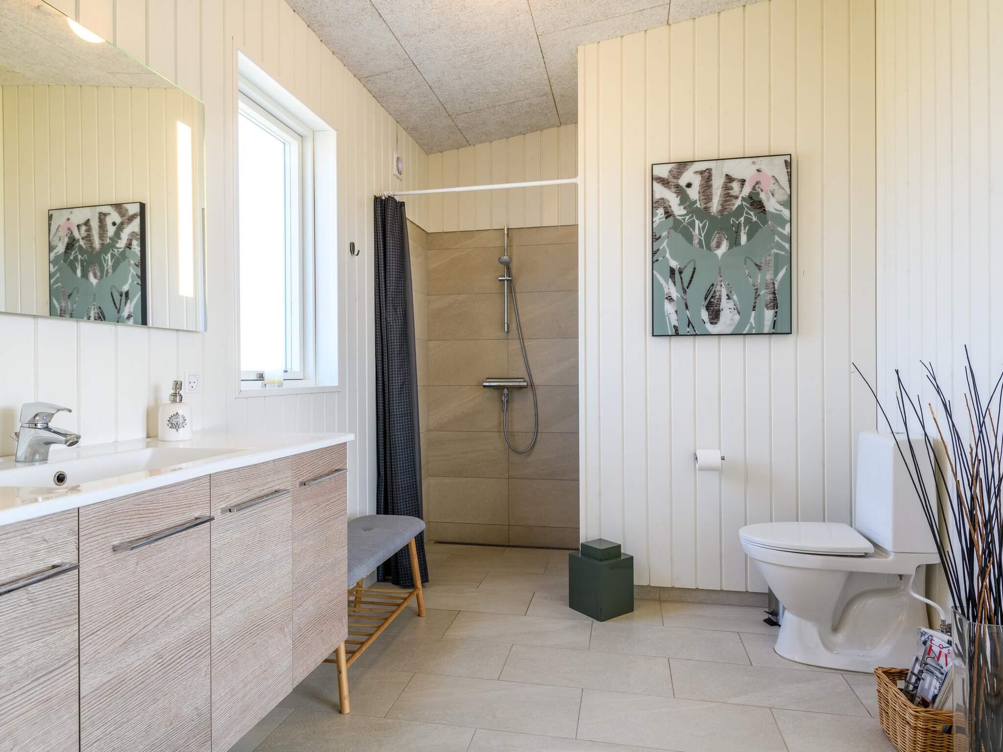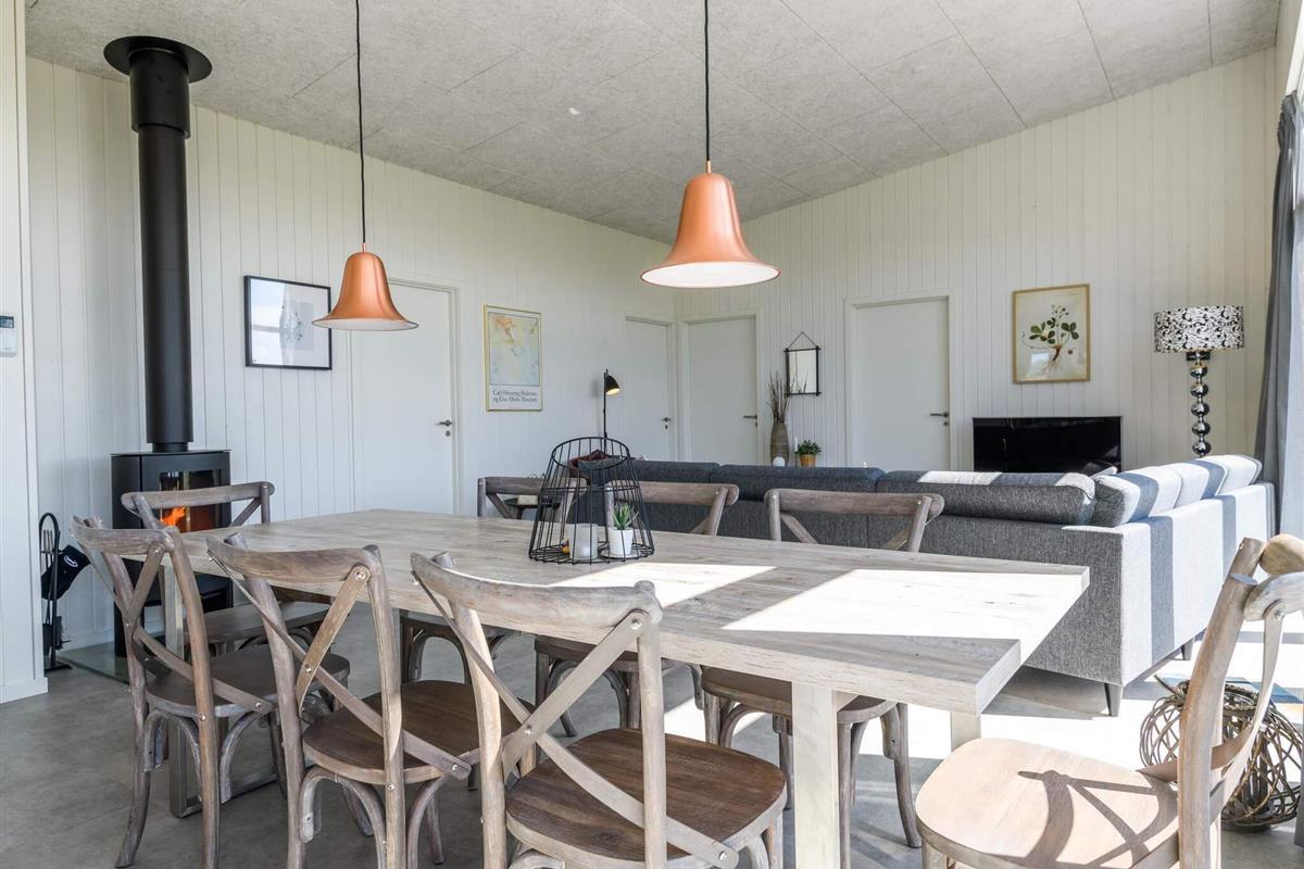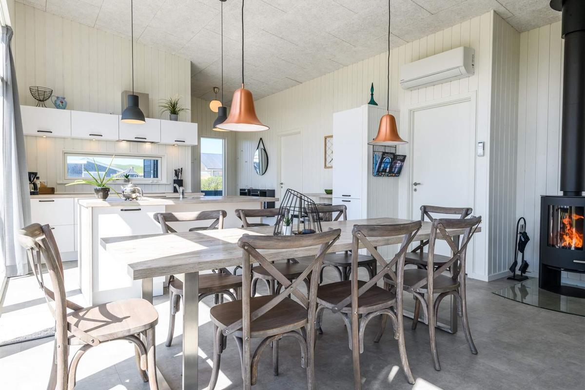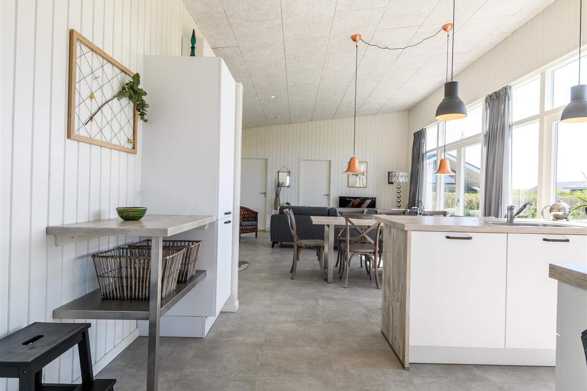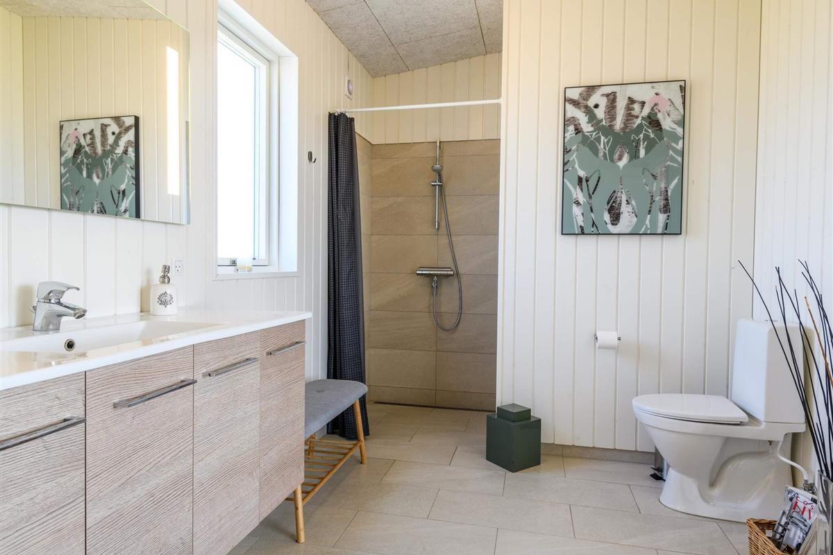 MAX 1 HUND - Unweit der Nordseeküste und des Strandes steht bei Søndervig dieses 2019 erbaute, geräumige Ferienhaus. Es ist innen hell und modern eingerichtet, das Mobiliar geschmackvoll zusammengestellt. Alle Zimmer sind hell und luftig gestaltet. Es gibt einen großen Küchen-/Wohnbereich für das Familienleben, mit bodentiefem Fensterbereich für viel Tageslicht und schönen Ausblick. Von hier aus haben Sie Zugang zu einer teilweise überdachten Terrassenfläche und zu einer Rasenfläche mit Spielgeräten für die Kinder. Alle vier Schlafzimmer im Haus bieten ausreichend Platz und sind mit guten Betten ausgestattet. Ein wirklich ansprechendes und wohnliches Ferienhaus, in reizvoller Umgebung nahe Strand und Nordsee gelegen.