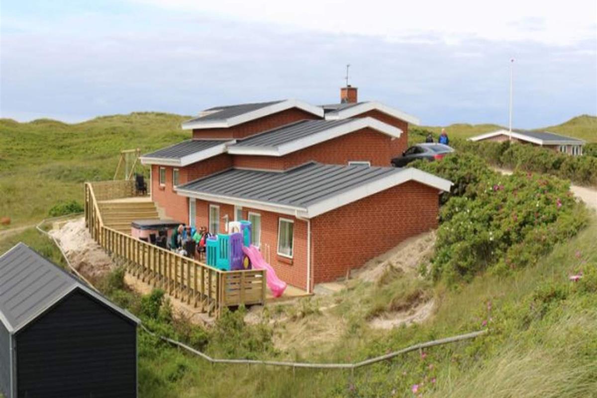 Das 1989 erbaute und 2012 komplett renovierte Ferienhaus steht auf einem 2.000 m² großen Dünengrundstück. Hier genießen Sie die herrliche Aussicht vom Wohnzimmer und der Terrasse, wo der einladende Outdoor-Spa zur Nutzung bereitsteht. Nach einem Strandausflug können Sie sich im ovalen Pool mit Wasserrutsche vergnügen oder im Whirlpool oder in der Sauna entspannen. Draußen auf der großen Terrasse, die mit Gartenmöbeln und Grill ausgestattet ist, kann sich die ganze Familie versammeln, für die Kinder gibt es eine Spielburg, Schaukel und Sandkasten.