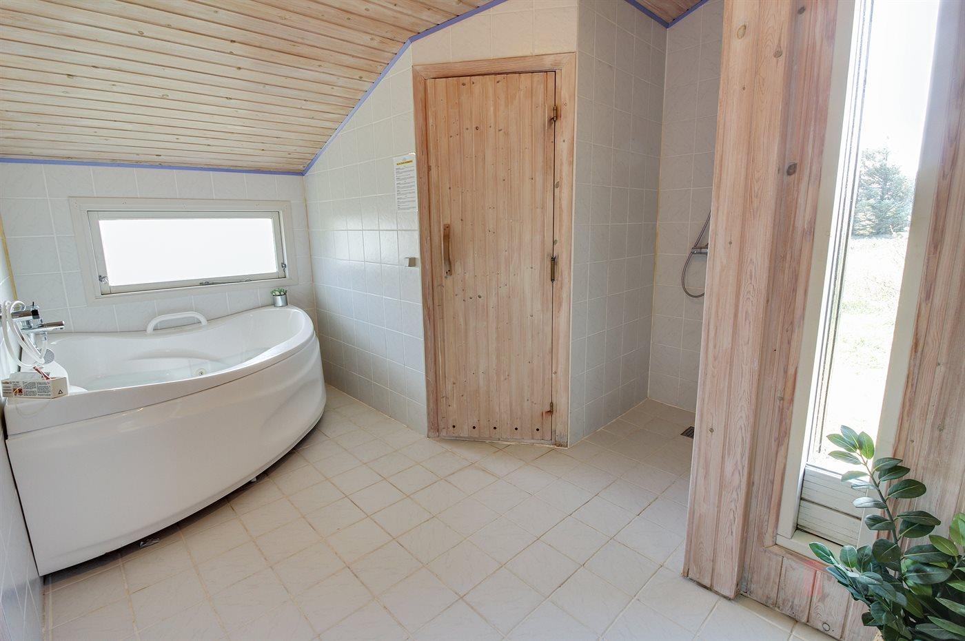 Er is 2 badkamers met douchehok en 1 toilet. De sauna biedt de gelegenheid tot ontspanning.