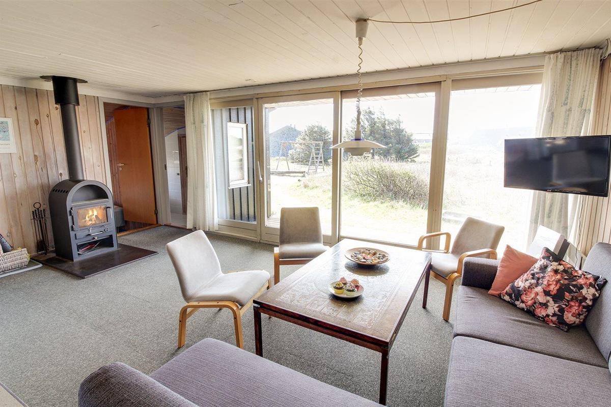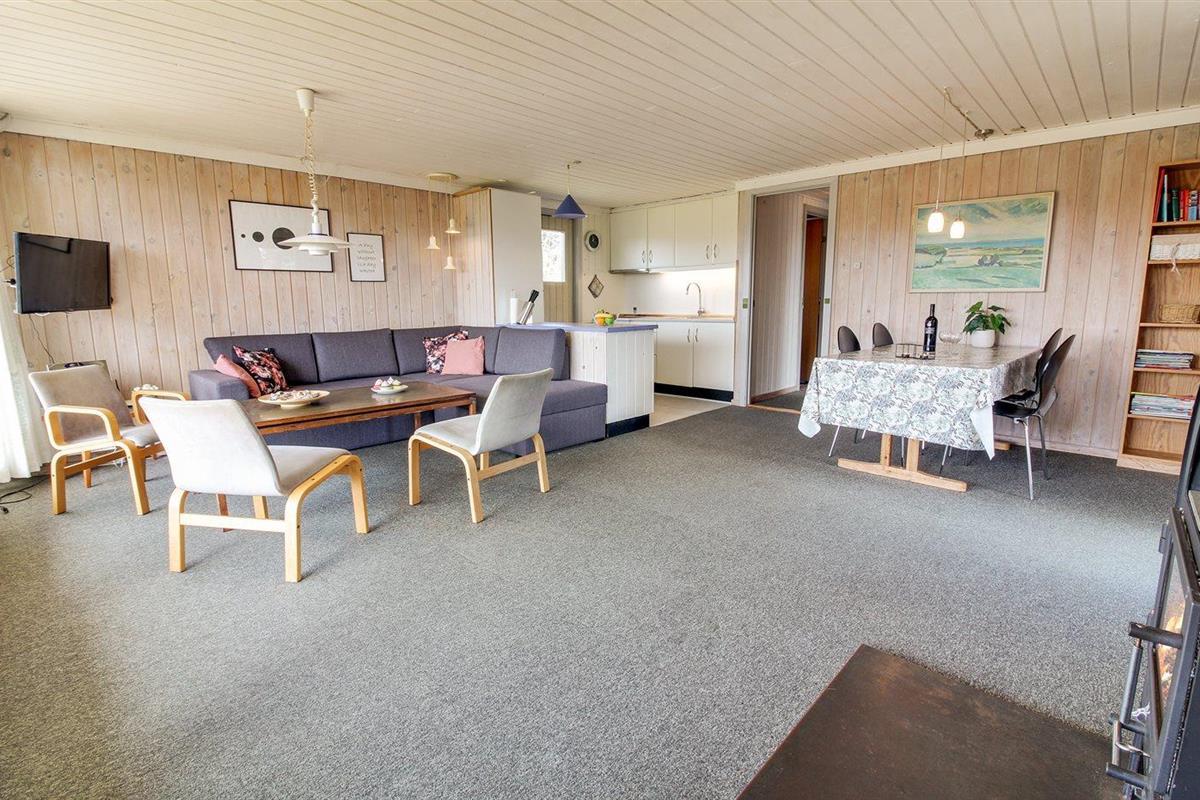 De vakantiewoning is gelegen op een 1200 m² groot natuural grond. Afstand tot de zee 400 m. Afstand tot de fjord 2000 m. Dichtstbijzijnde winkel 1000 m. Er is een golfbaan op een afstand van 900 m. Bij de vakantiewoning hoort 30 m² terras. Daarnaast is er een 15 m² groot overdekt terras. Schommel. Zandbak. Barbecue. Parkeerplaats bij het huis.