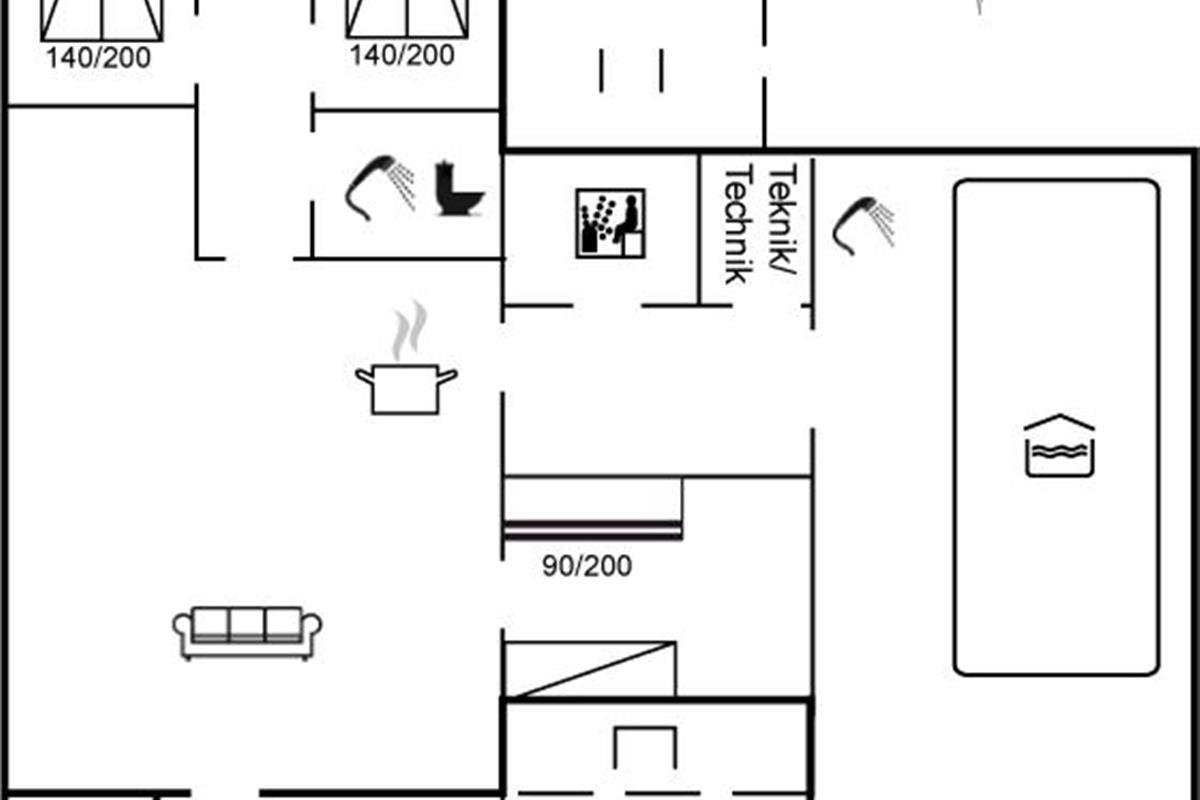 De vakantiewoning is gelegen op een 1290 m² groot natuural grond. Afstand tot de zee 900 m. Afstand tot de fjord 1500 m. Dichtstbijzijnde winkel 1100 m. Bij de vakantiewoning hoort 20 m² terras en 20 m² groot overdekt terras - waarvan in totaal 25 m² beschut terras. Schommel. Trampoline. Parkeerplaats bij het huis.