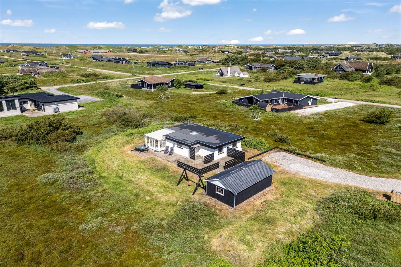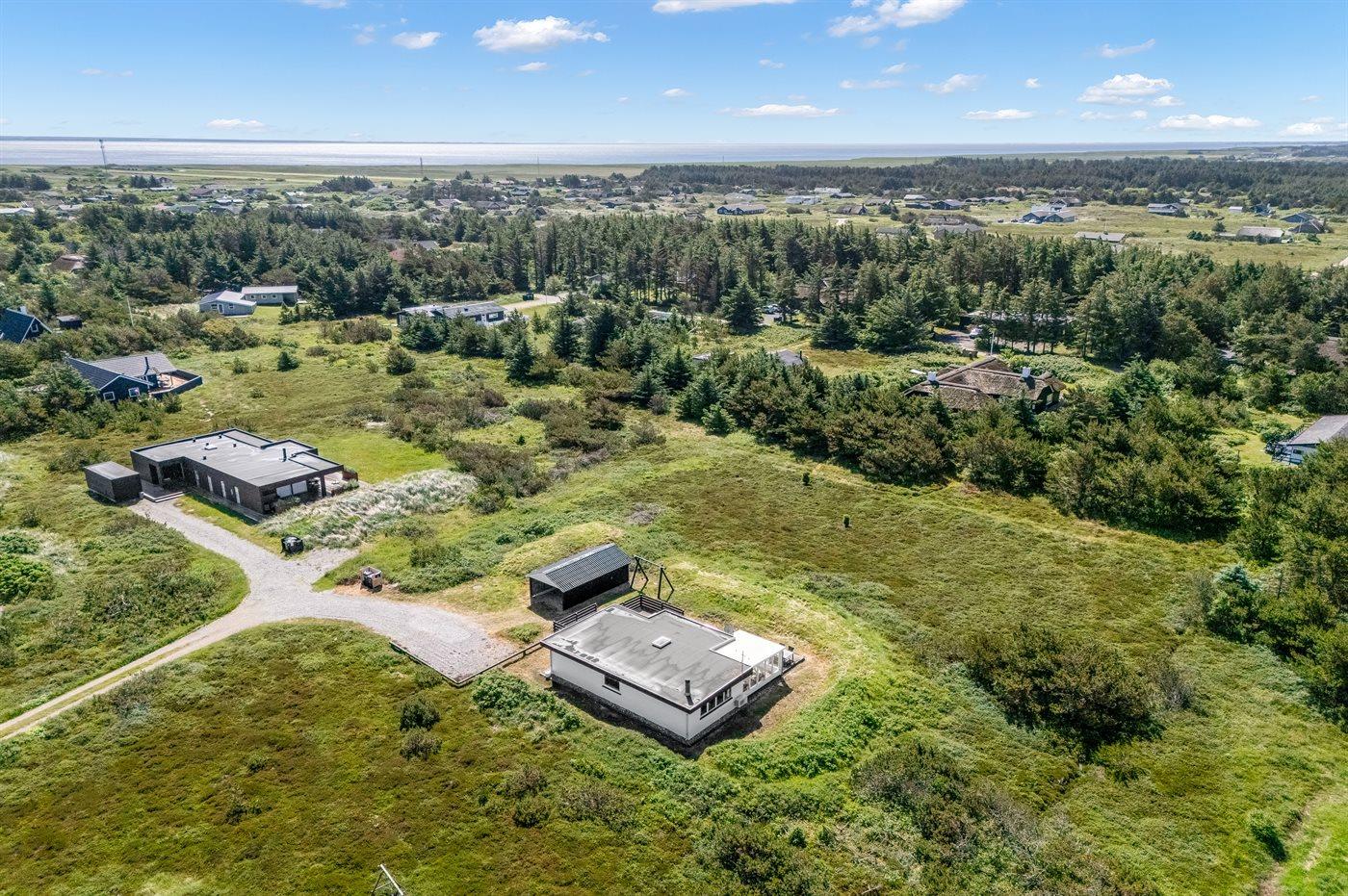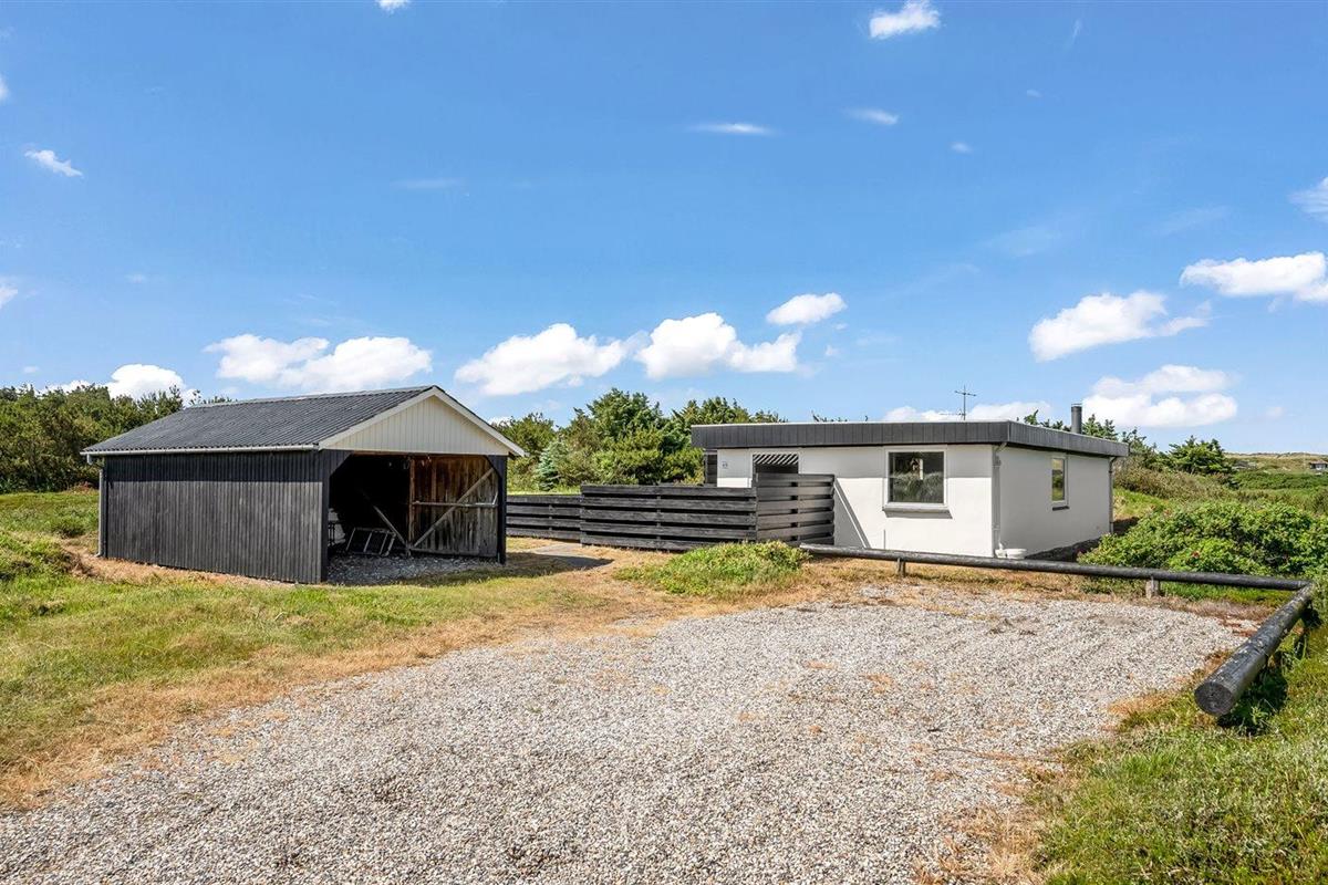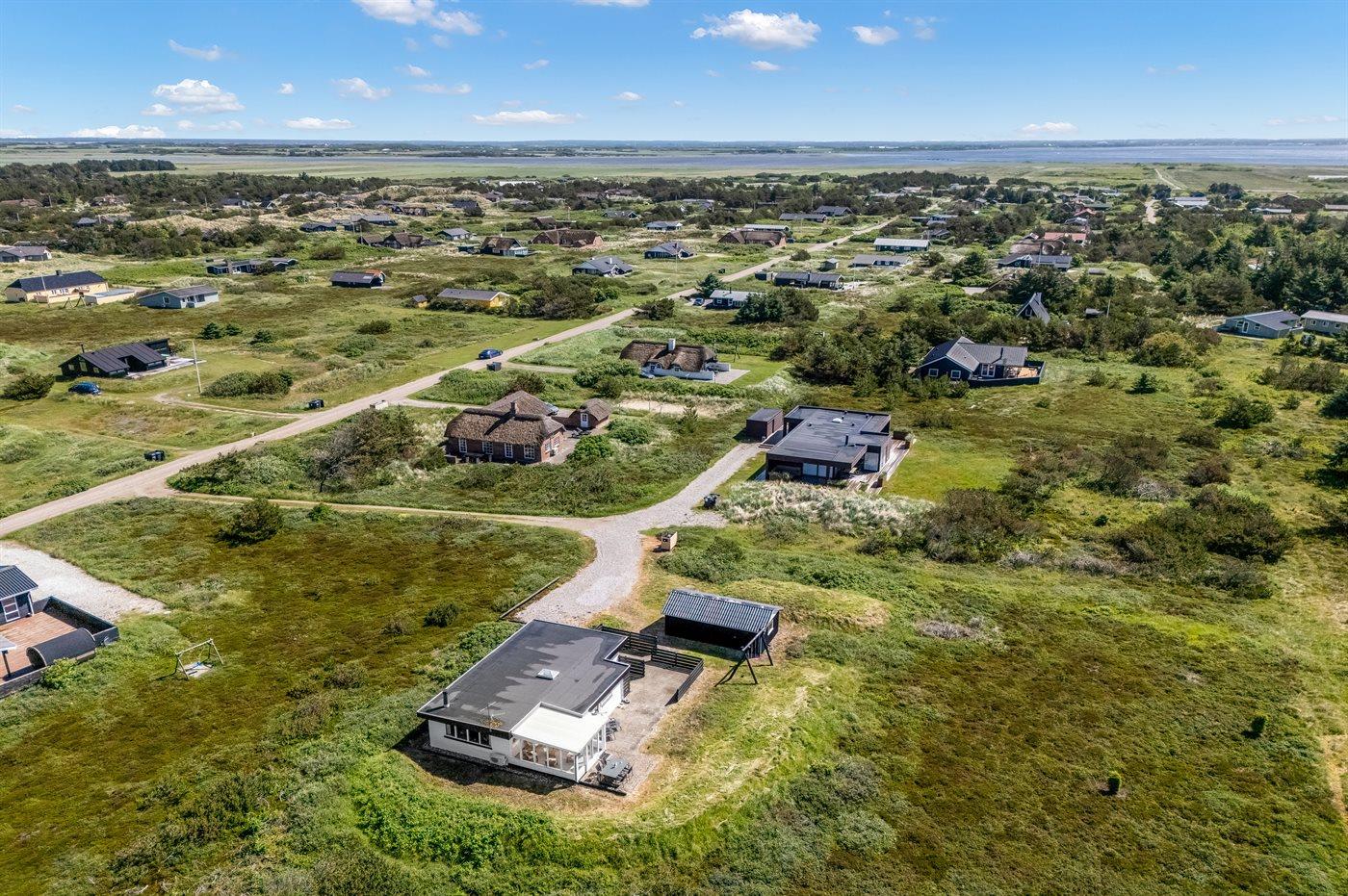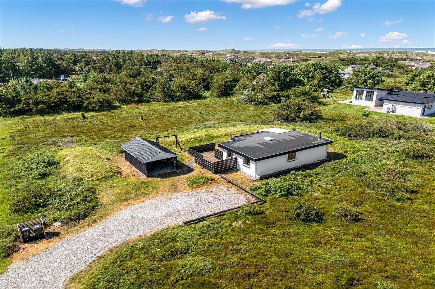 De vakantiewoning is gelegen op een 2500 m² groot natuural grond. Afstand tot de zee 700 m. Afstand tot de fjord 1500 m. Dichtstbijzijnde winkel 2000 m. Er is een golfbaan op een afstand van 3000 m. Bij de vakantiewoning hoort 40 m² terras. Schommel. Carport ter beschikking. Parkeerplaats bij het huis.