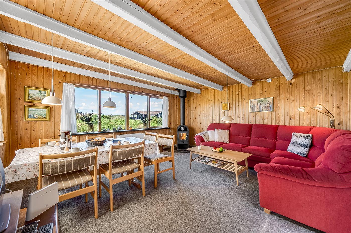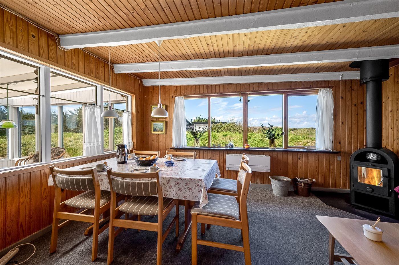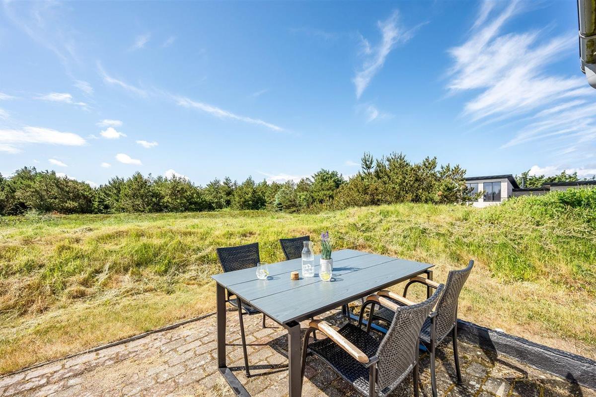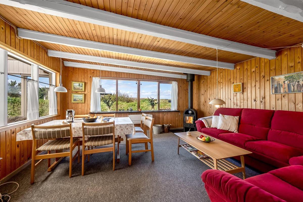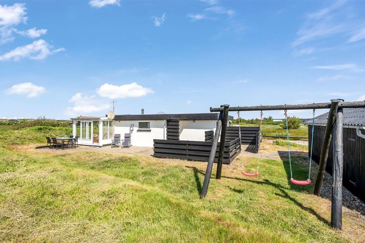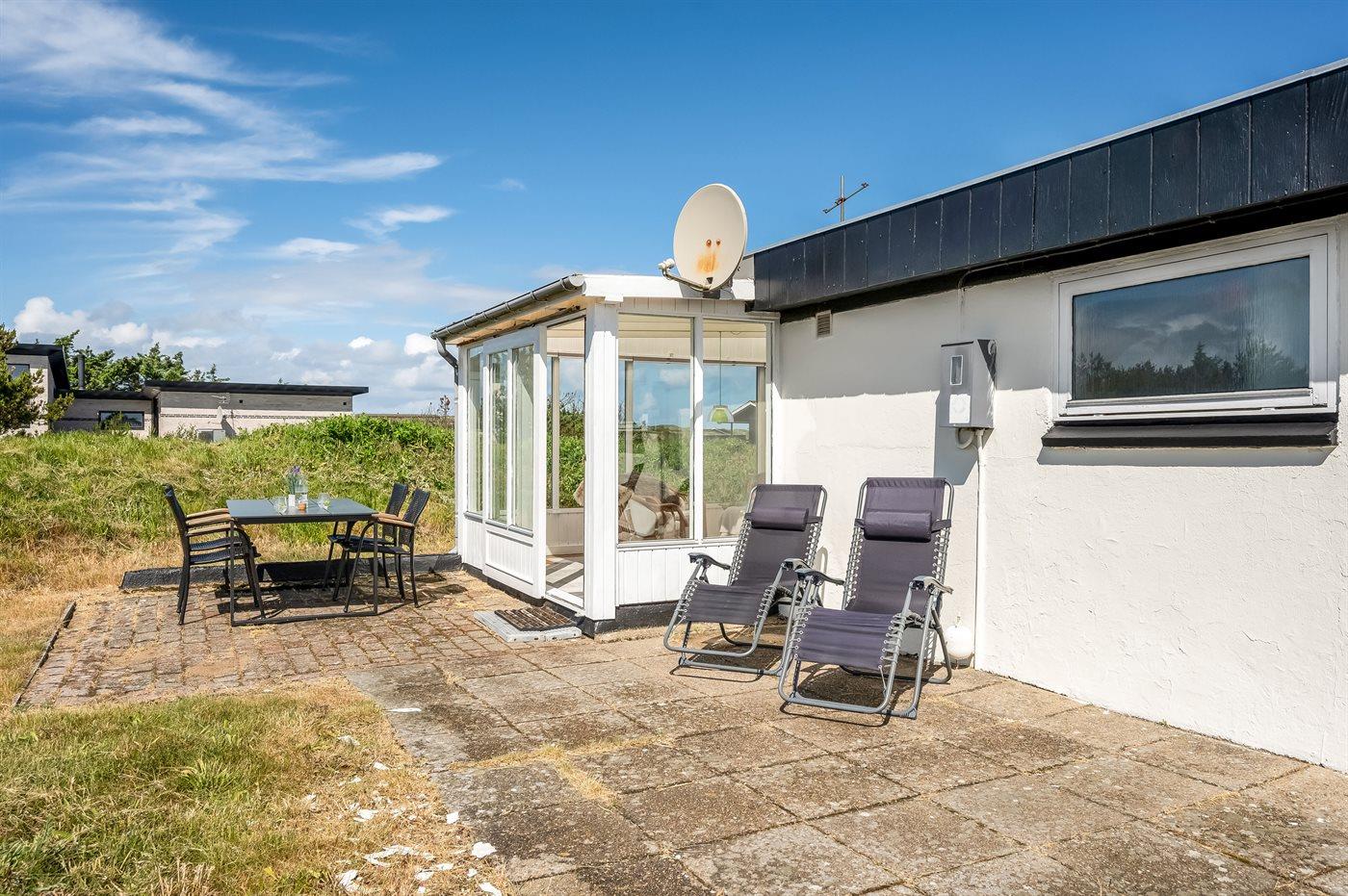 De vakantiewoning is gelegen op een 2500 m² groot natuural grond. Afstand tot de zee 700 m. Afstand tot de fjord 1500 m. Dichtstbijzijnde winkel 2000 m. Er is een golfbaan op een afstand van 3000 m. Bij de vakantiewoning hoort 40 m² terras. Schommel. Carport ter beschikking. Parkeerplaats bij het huis.