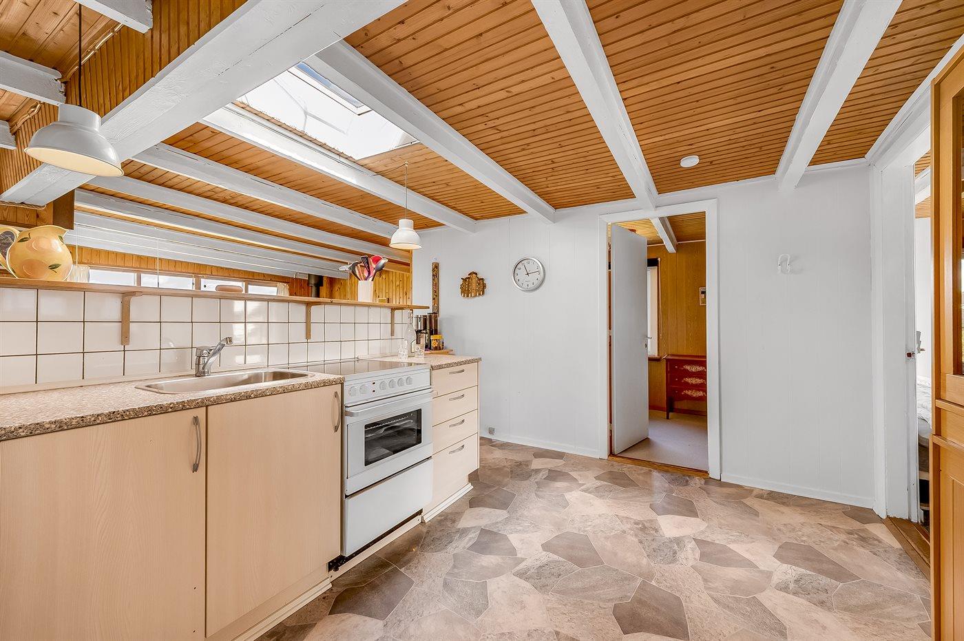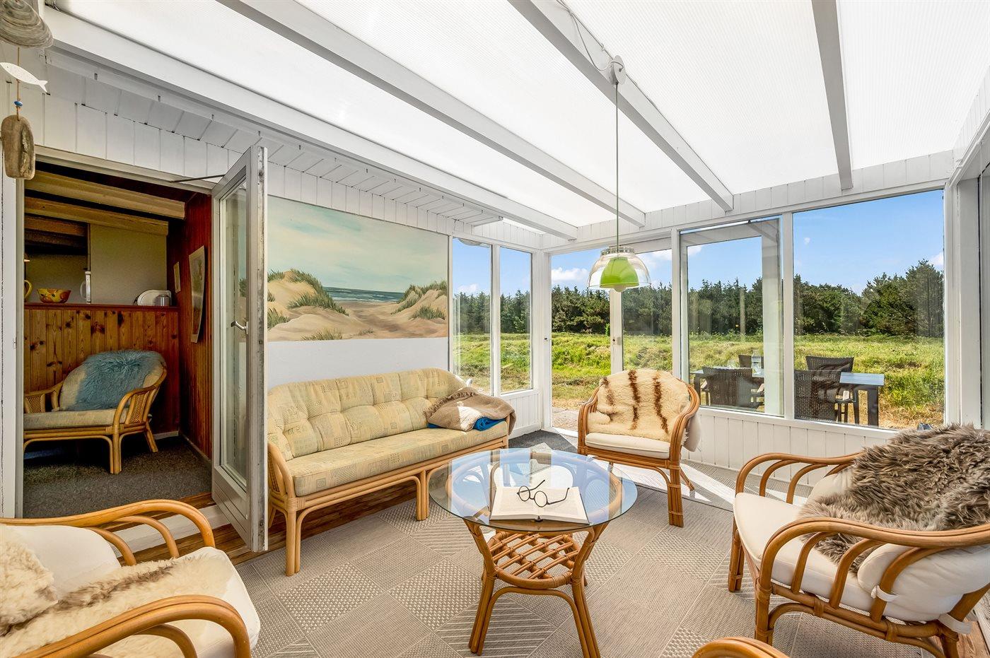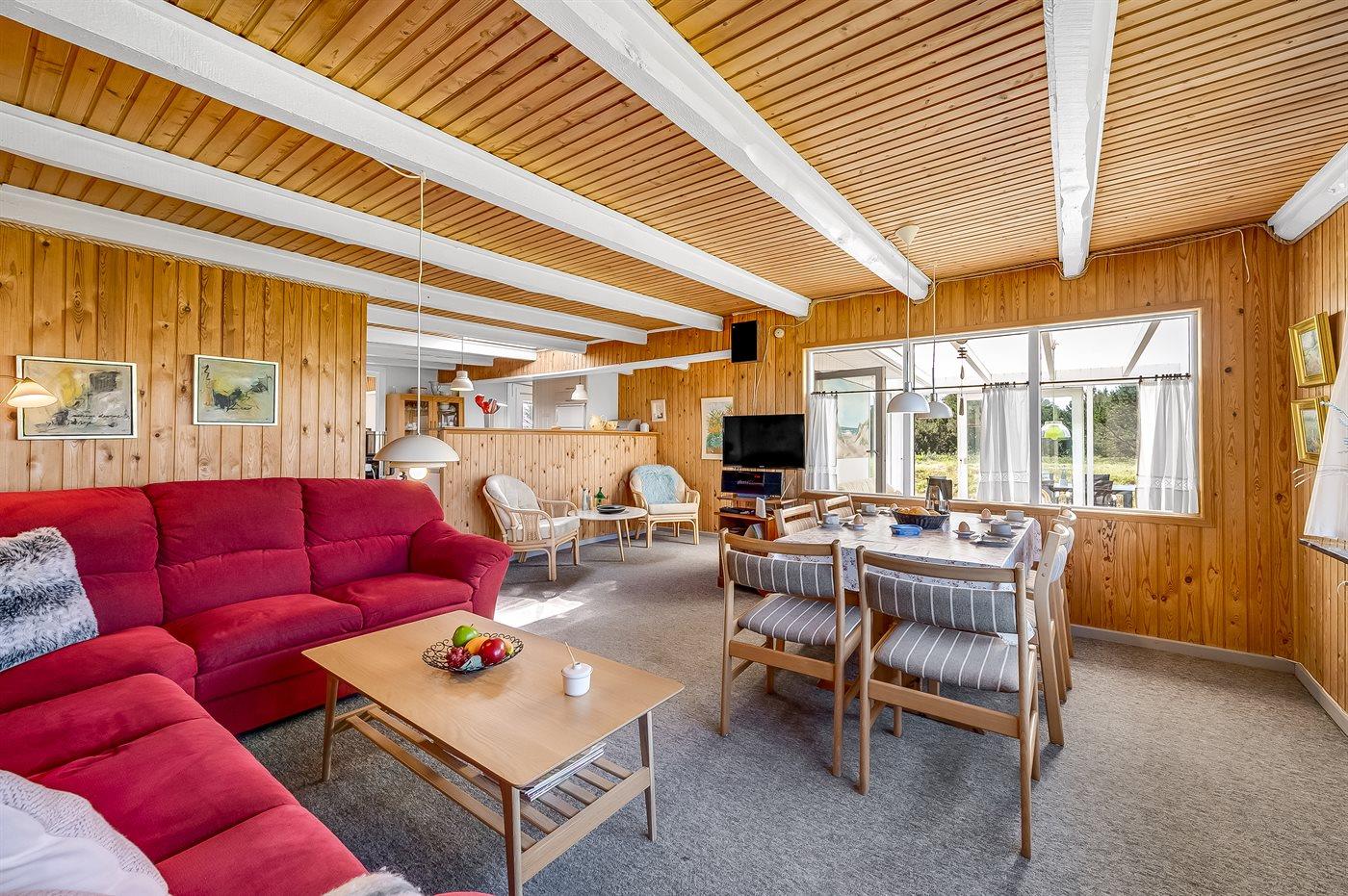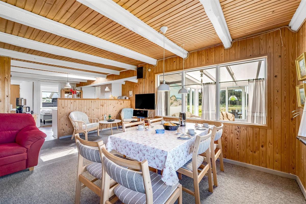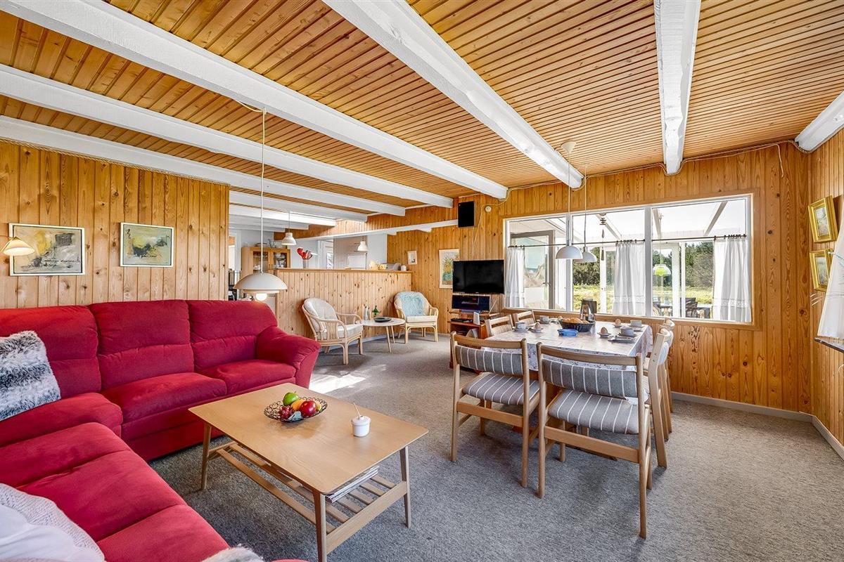 De vakantiewoning is gelegen op een 2500 m² groot natuural grond. Afstand tot de zee 700 m. Afstand tot de fjord 1500 m. Dichtstbijzijnde winkel 2000 m. Er is een golfbaan op een afstand van 3000 m. Bij de vakantiewoning hoort 40 m² terras. Schommel. Carport ter beschikking. Parkeerplaats bij het huis.