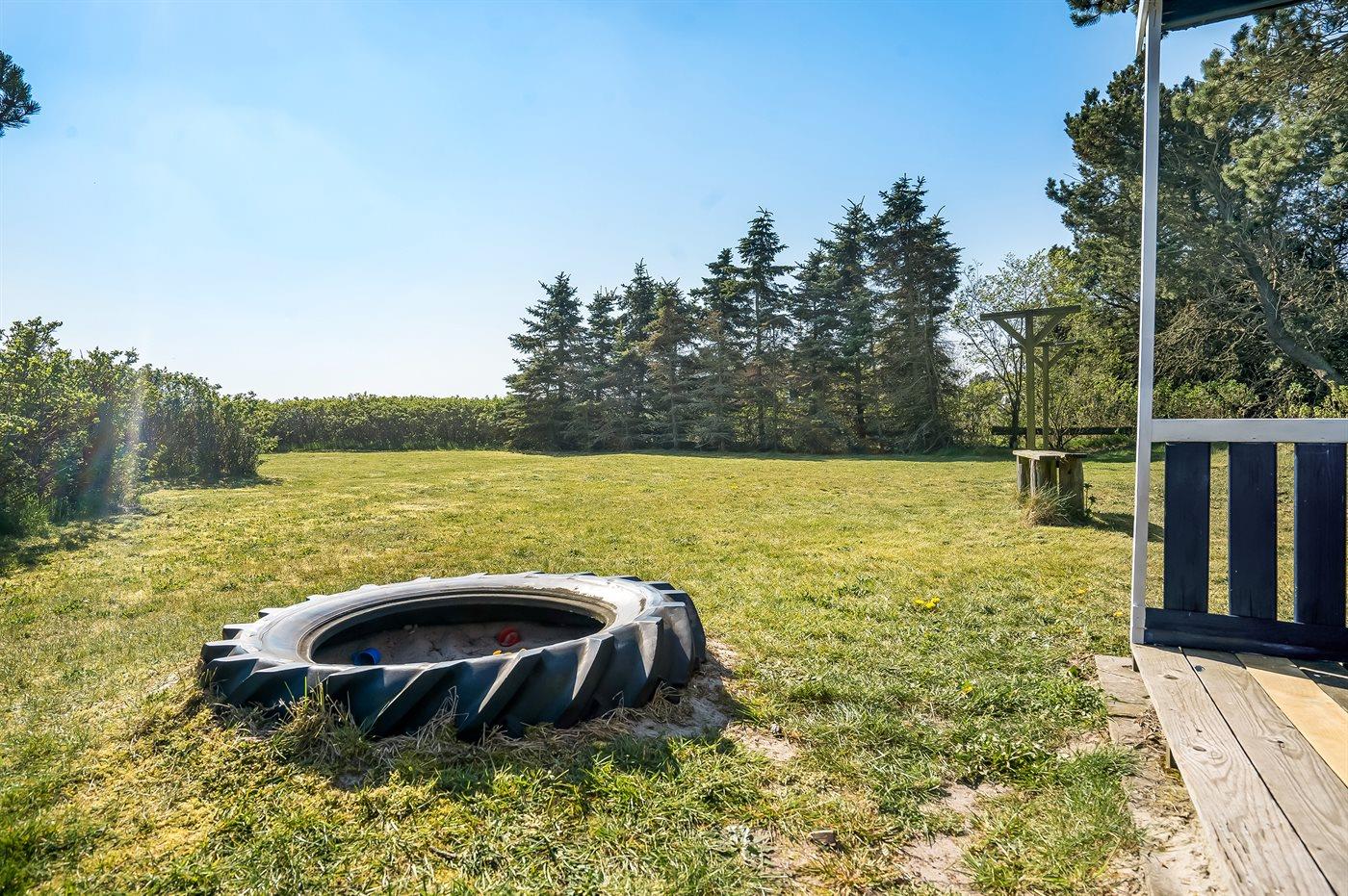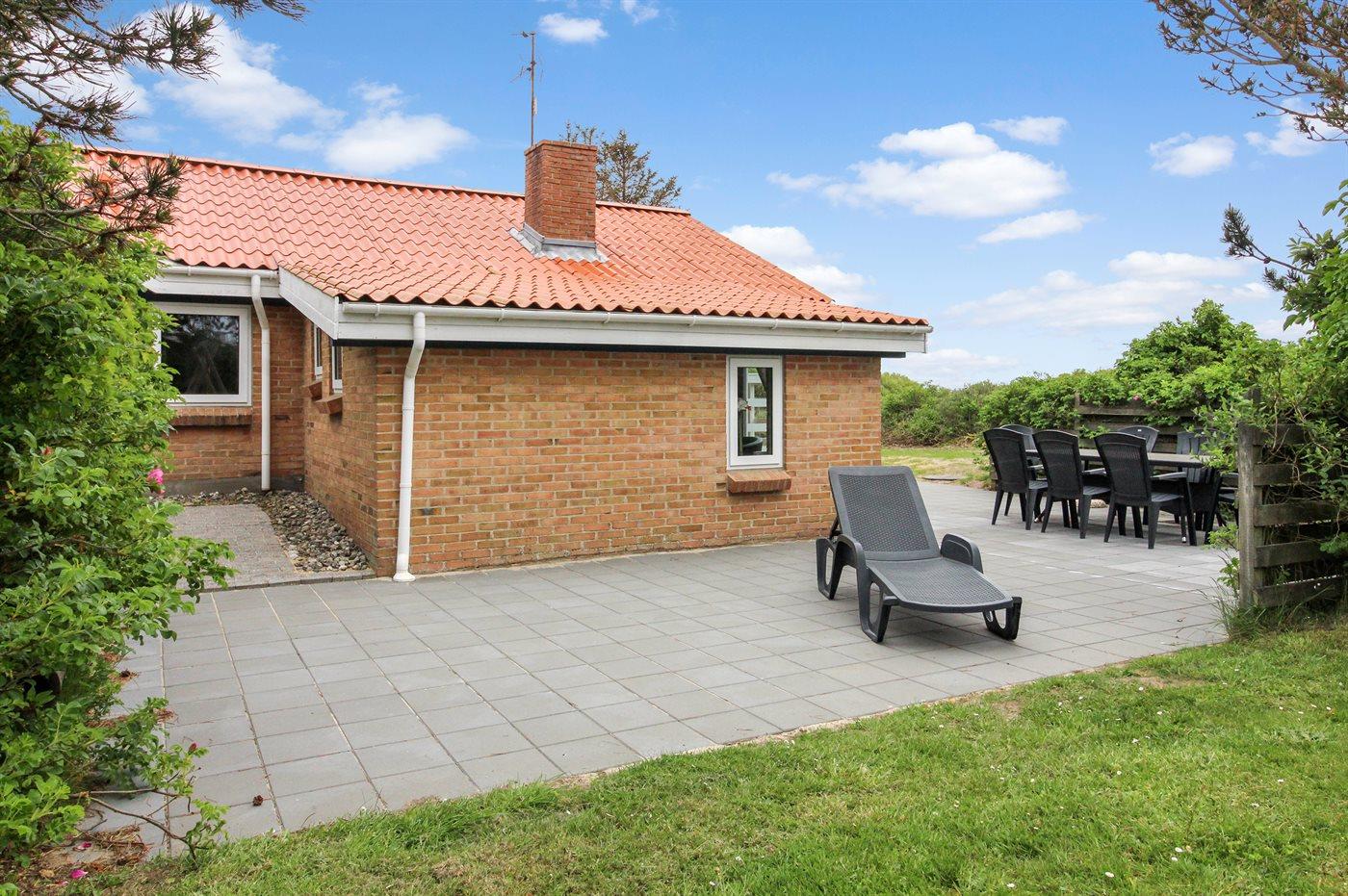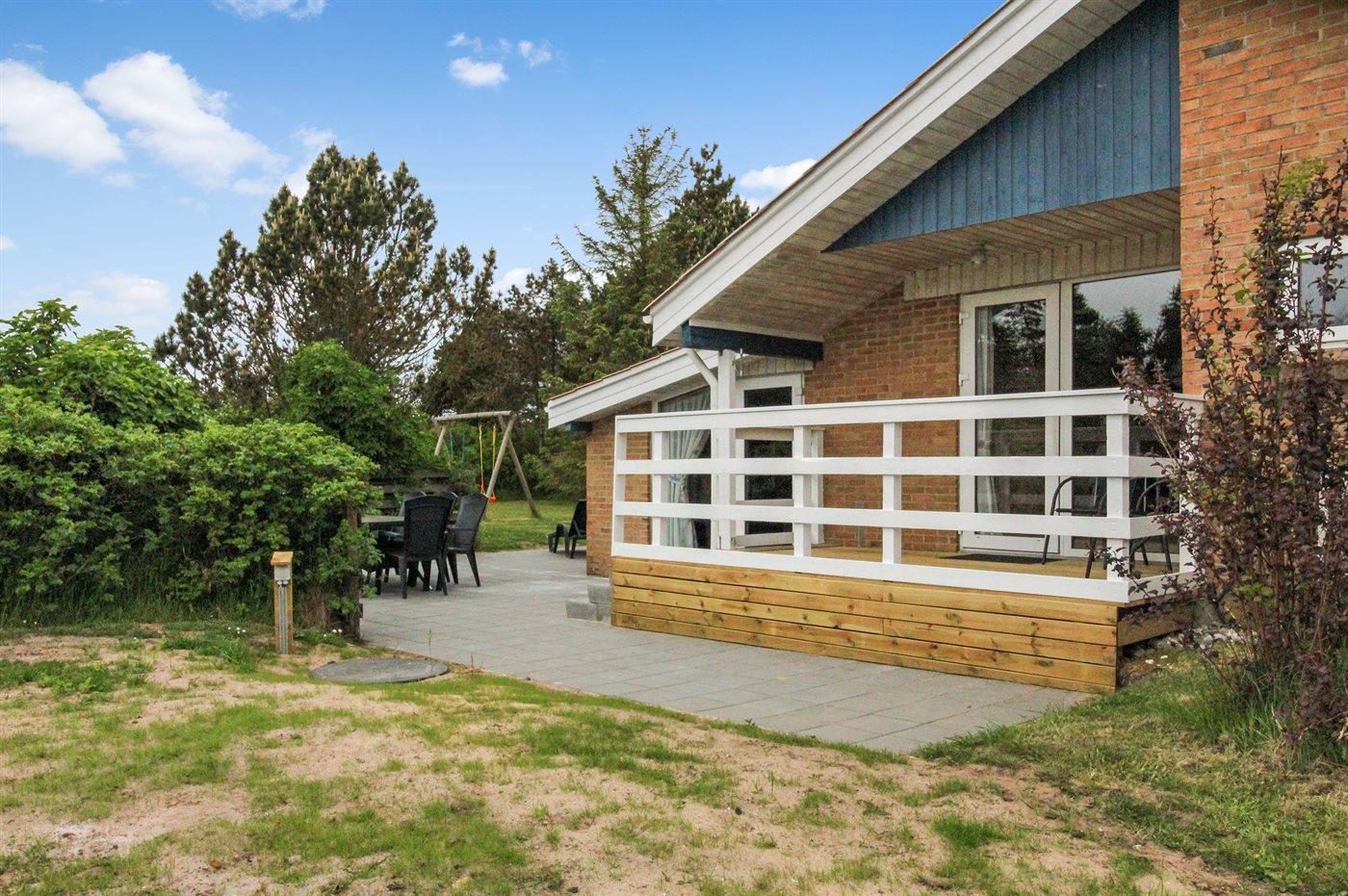 De vakantiewoning is gelegen op een 2500 m² groot natuural grond. Afstand tot de zee 1200 m. Dichtstbijzijnde winkel 2400 m. Bij de vakantiewoning hoort 50 m² terras. Daarnaast is er een 10 m² groot overdekt terras. Gereedschapsruimte. Schommel. Zandbak. Het huis heeft een stopcontact voor het opladen van een elektrische auto. Met 11 kW-laadvermogen. Parkeerplaats bij het huis.