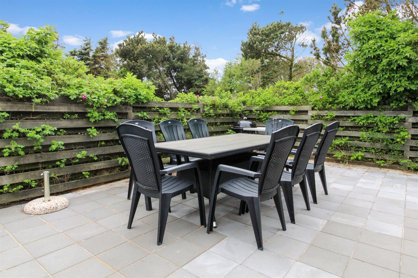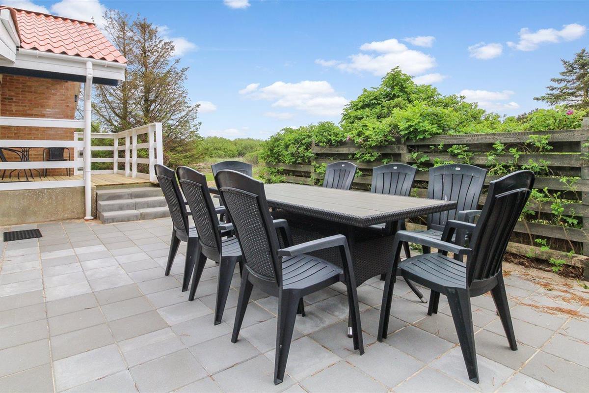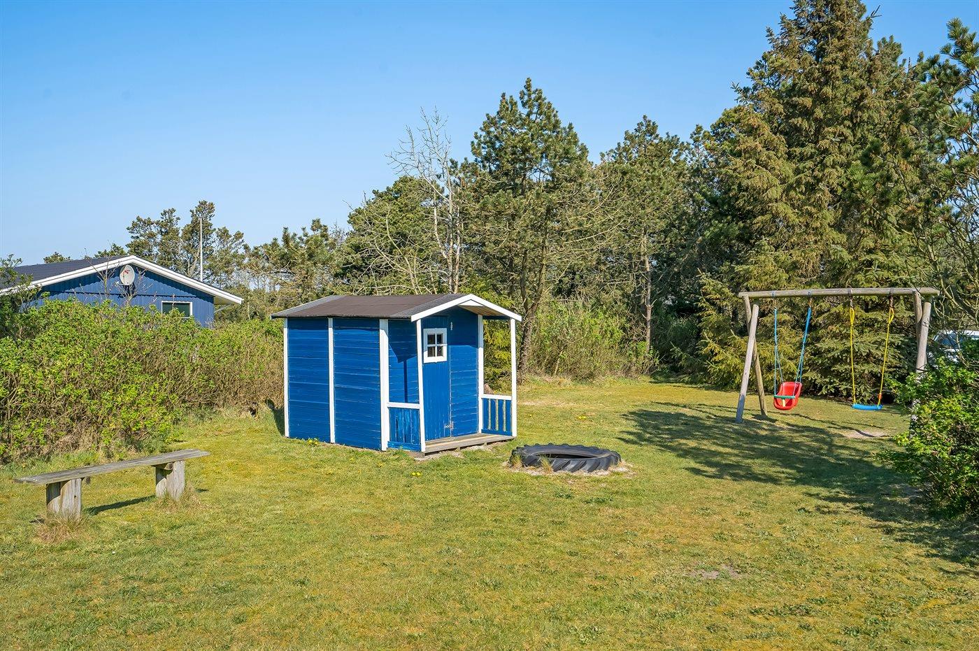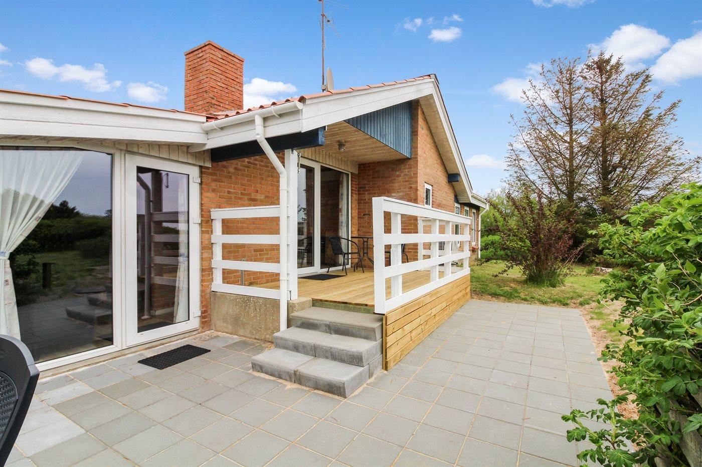 De vakantiewoning is gelegen op een 2500 m² groot natuural grond. Afstand tot de zee 1200 m. Dichtstbijzijnde winkel 2400 m. Bij de vakantiewoning hoort 50 m² terras. Daarnaast is er een 10 m² groot overdekt terras. Gereedschapsruimte. Schommel. Zandbak. Het huis heeft een stopcontact voor het opladen van een elektrische auto. Met 11 kW-laadvermogen. Parkeerplaats bij het huis.