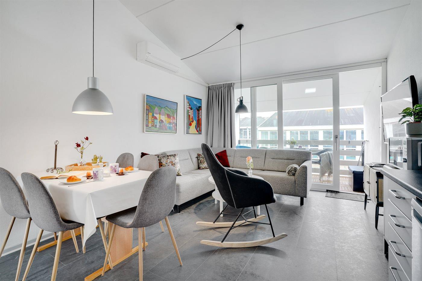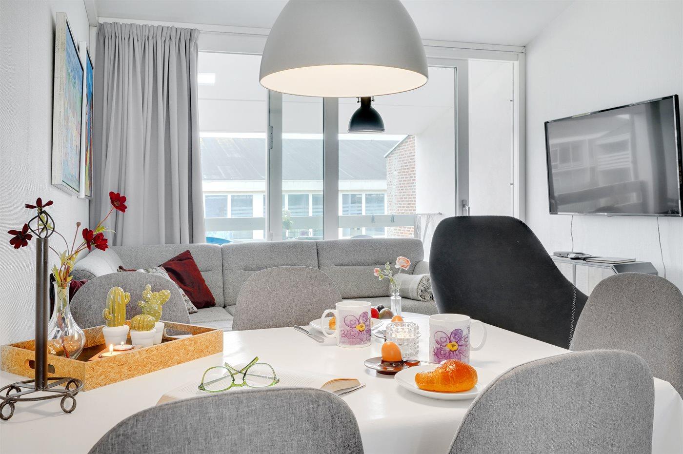 Gezellig vakantieappartement in Søndervig op 200 m van zee met balkon, smart-tv en warmtepomp, geschikt voor 6 personen.
