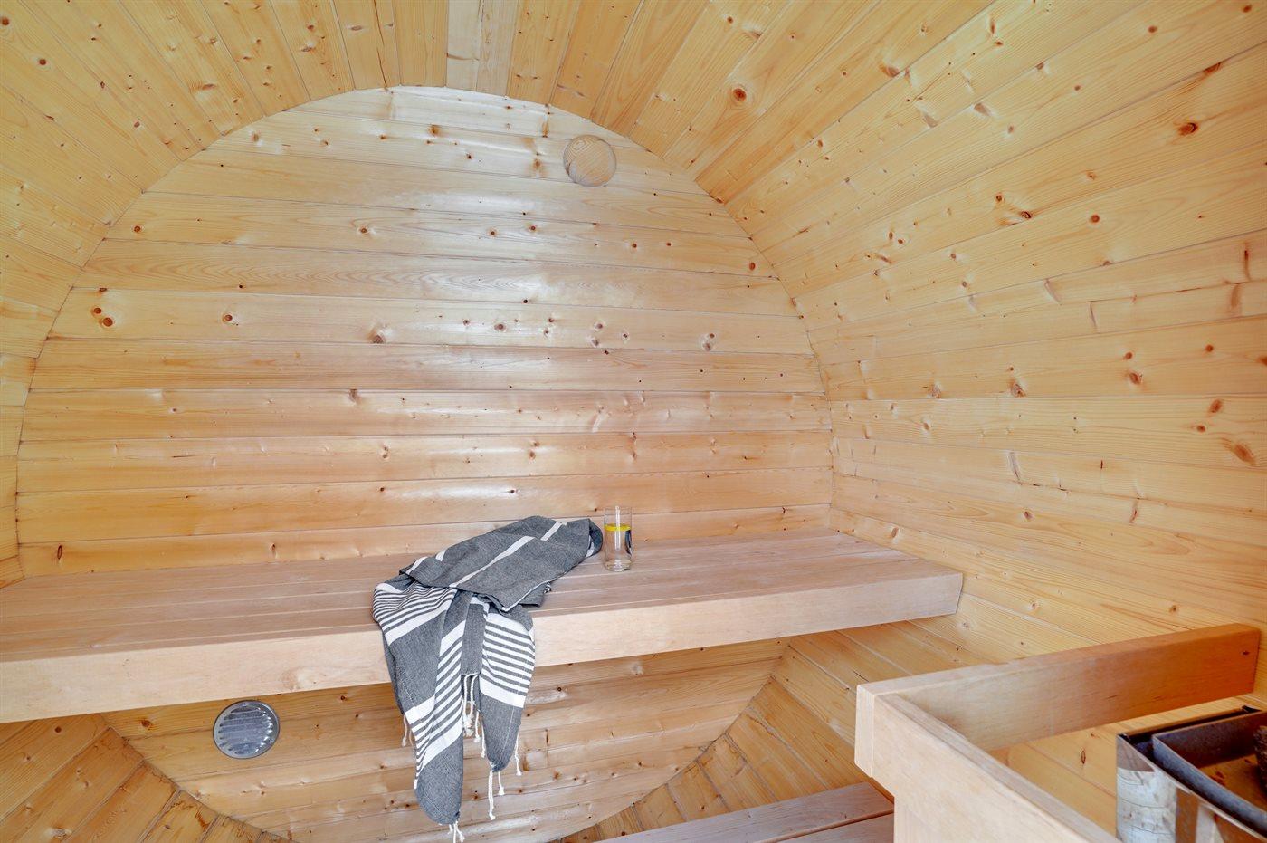 Het buitenbubbelbad (standwater) biedt ontspanning aan 6 personen.