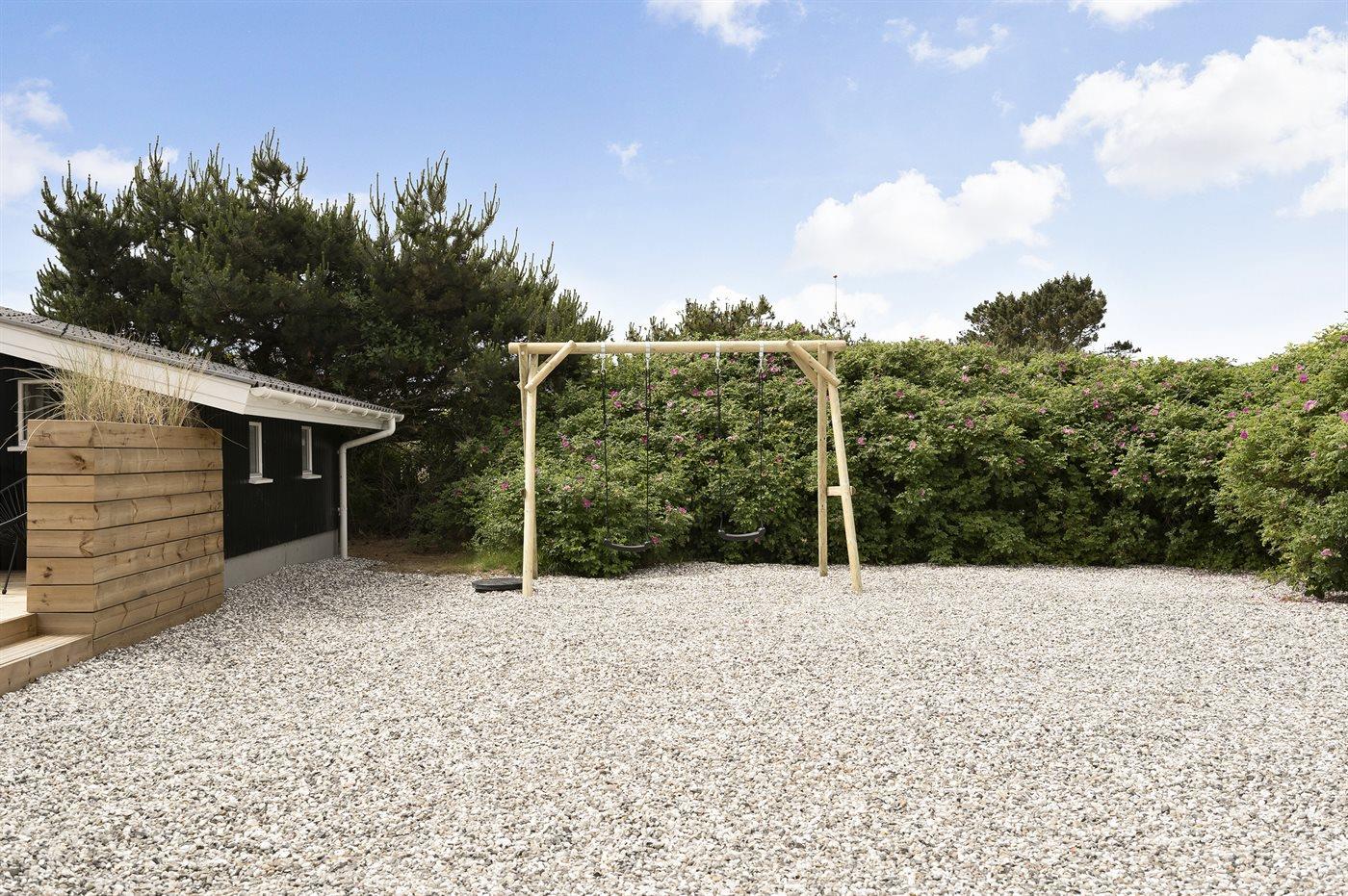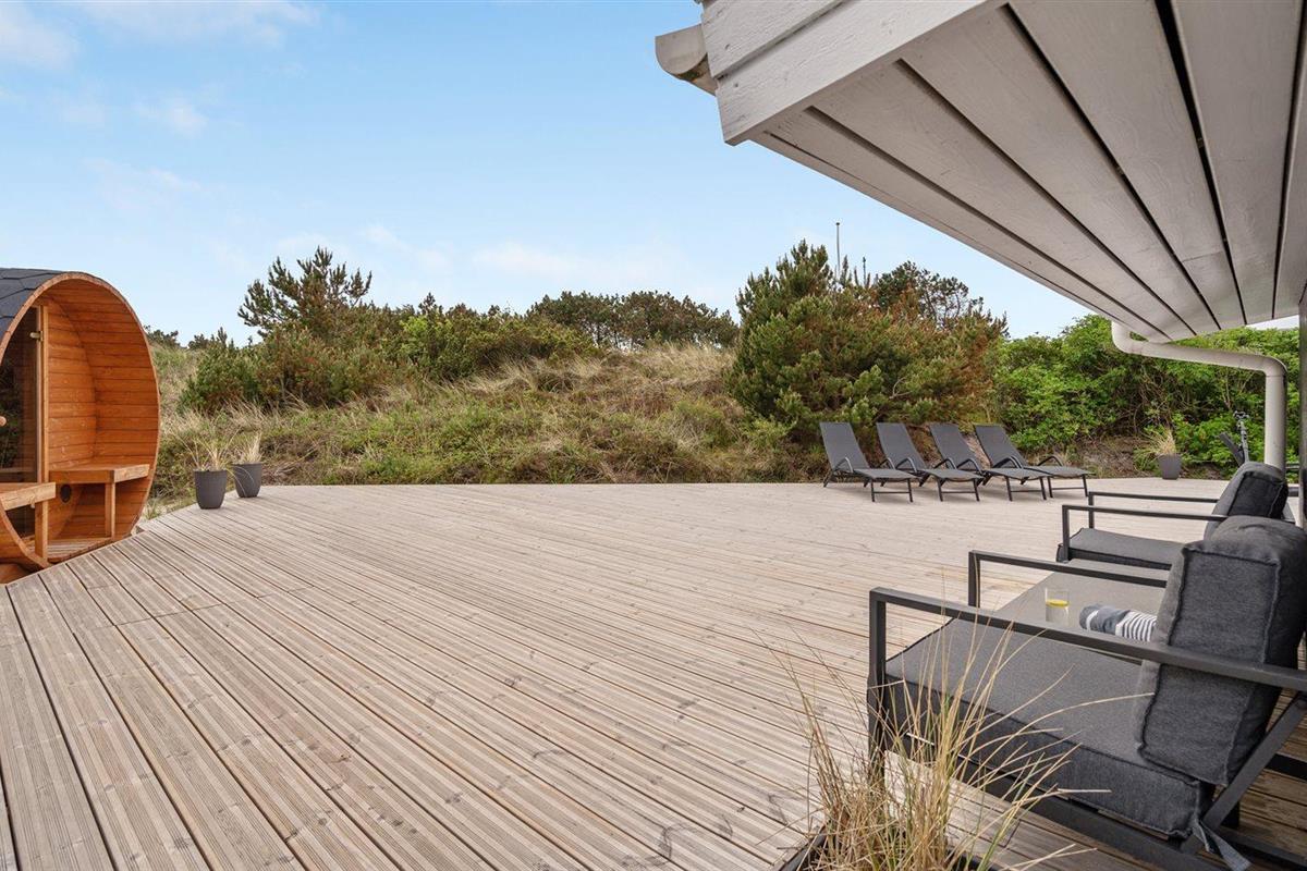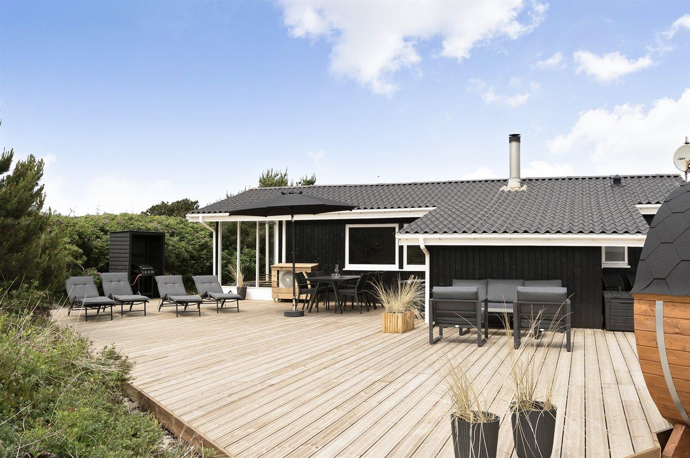 De vakantiewoning is gelegen op een 1206 m² groot natuural grond. Afstand tot de zee 500 m. Dichtstbijzijnde winkel 1000 m. Bij de vakantiewoning hoort 240 m² terras. Daarnaast is er een 10 m² groot overdekt terras. Schommel. Zandbak. Buitensauna. Buitendouche. Parkeerplaats bij het huis.