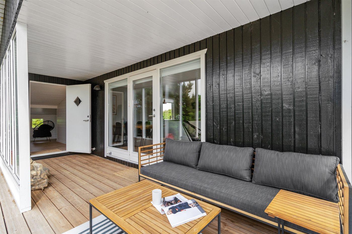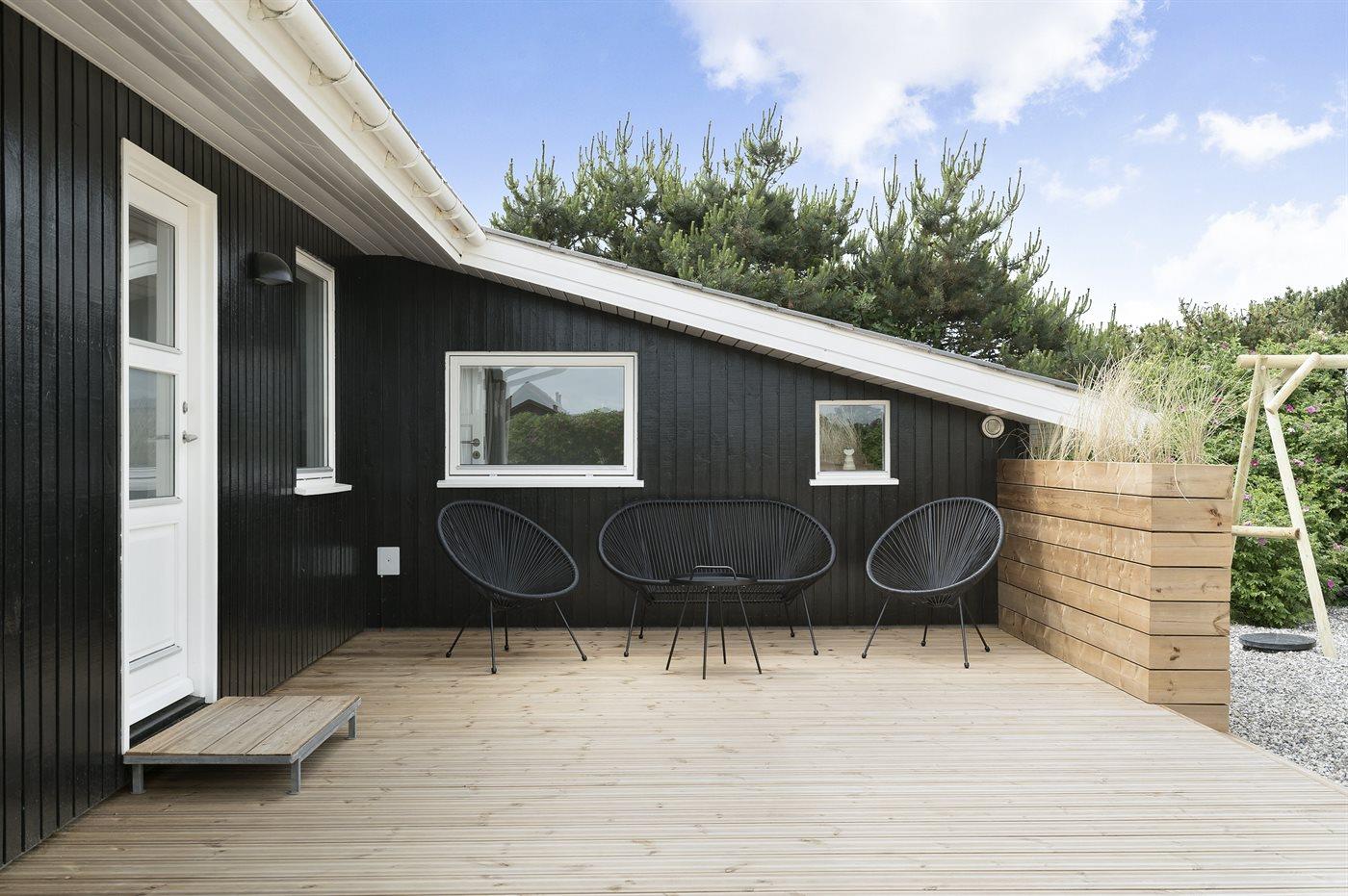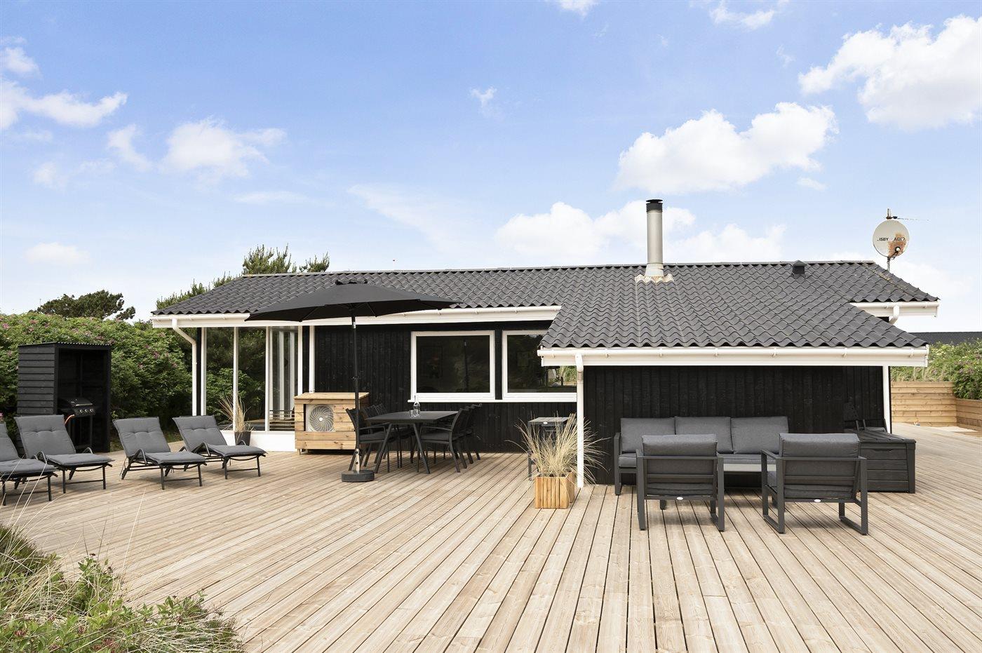 De vakantiewoning is gelegen op een 1206 m² groot natuural grond. Afstand tot de zee 500 m. Dichtstbijzijnde winkel 1000 m. Bij de vakantiewoning hoort 240 m² terras. Daarnaast is er een 10 m² groot overdekt terras. Schommel. Zandbak. Buitensauna. Buitendouche. Parkeerplaats bij het huis.