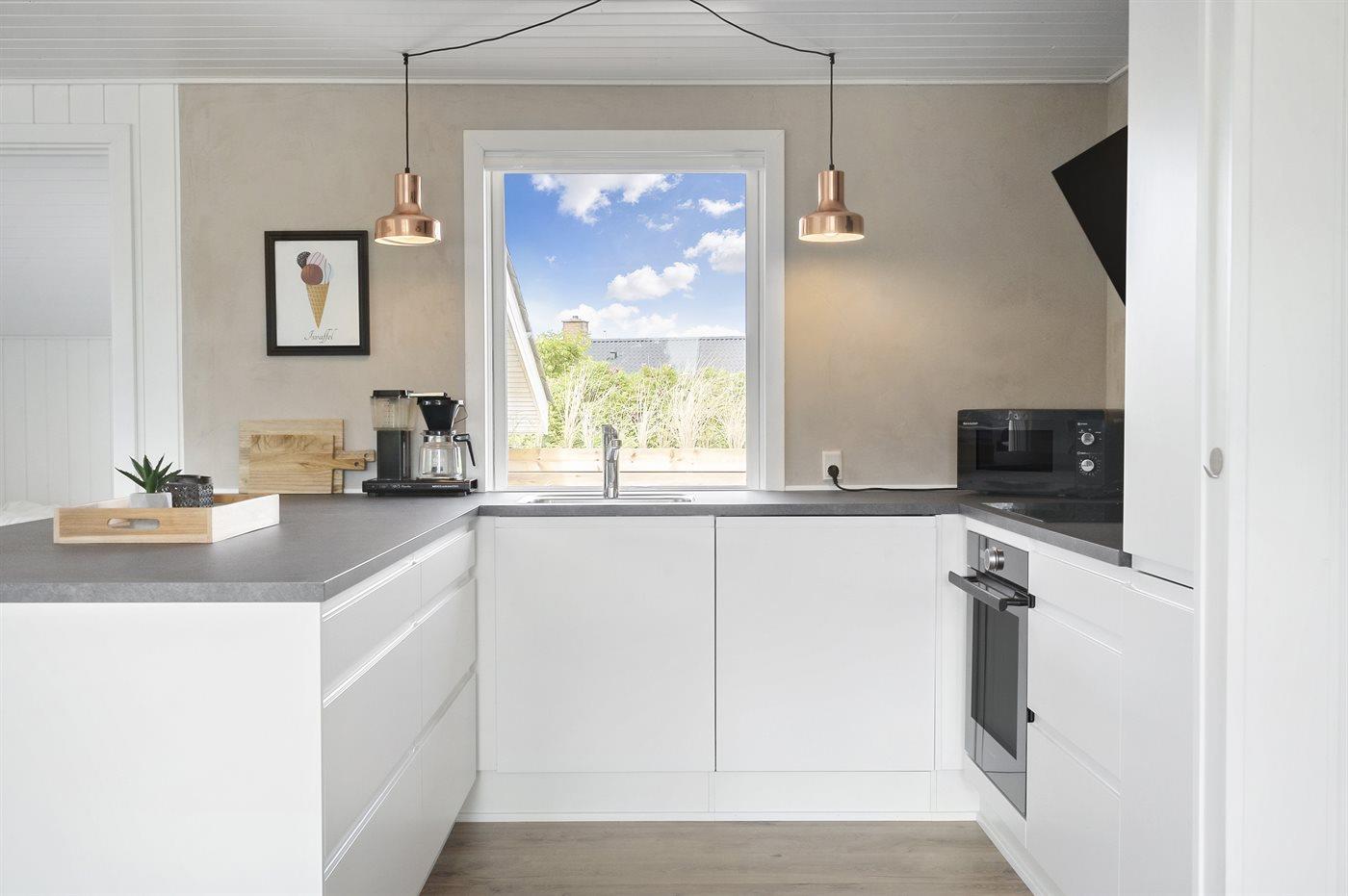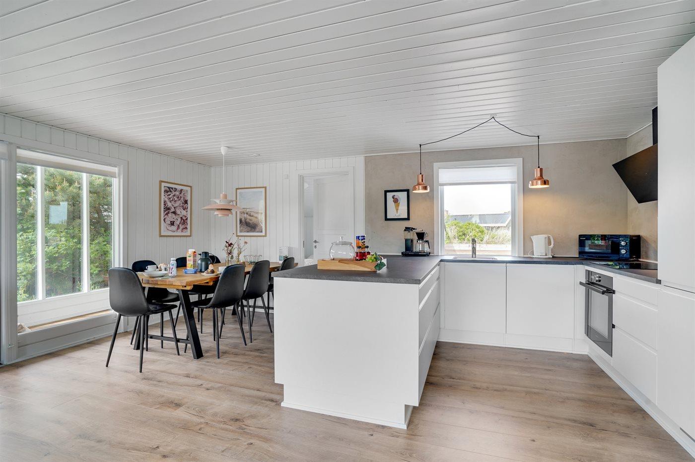 De keuken is uitgerust met koelkast Er is 4 inductiekookplaten, heteluchtoven, magnetron en vaatwasser.