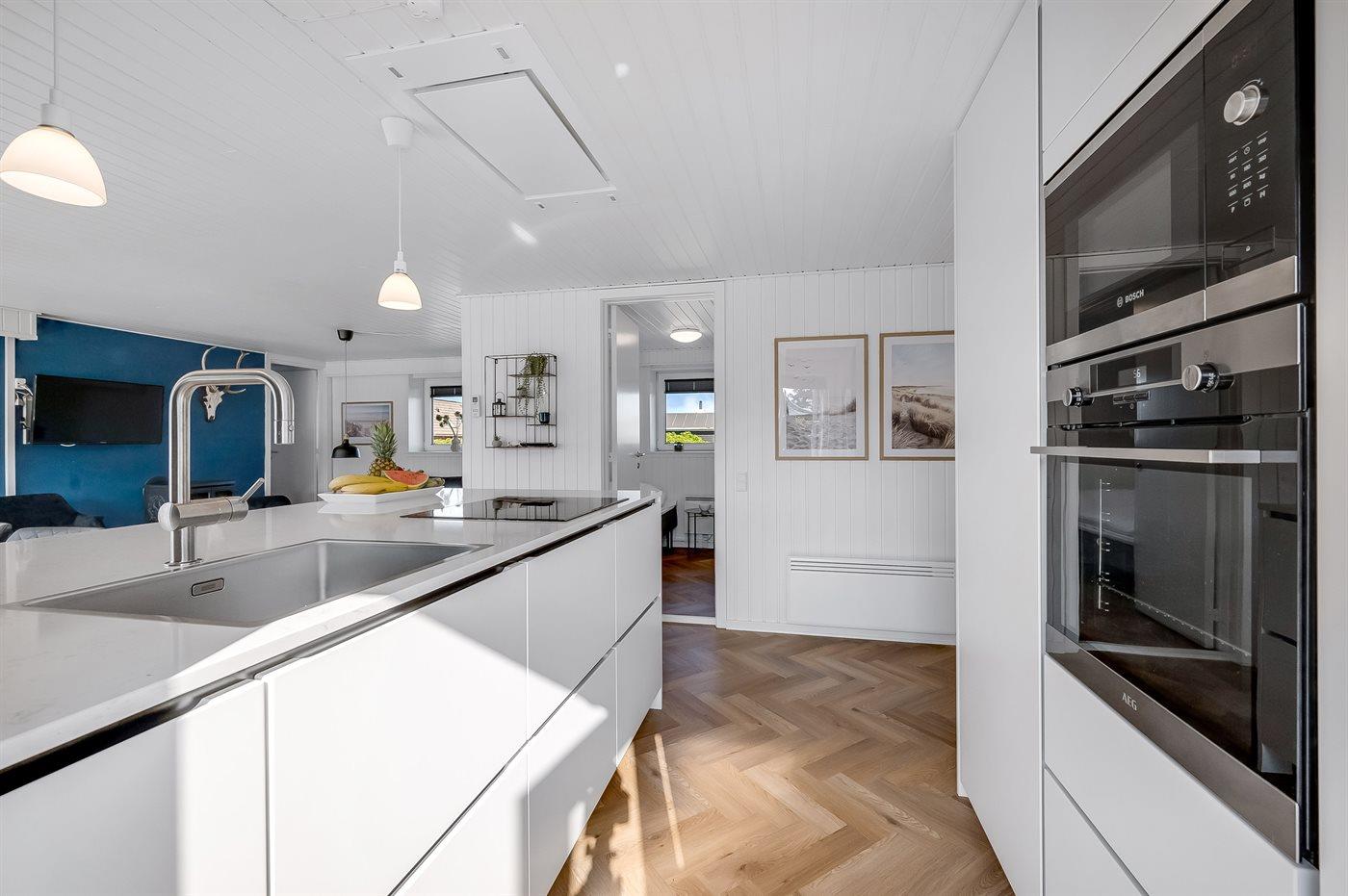 De keuken is uitgerust met koelkast Er is 4 inductiekookplaten, heteluchtoven, magnetron en vaatwasser.