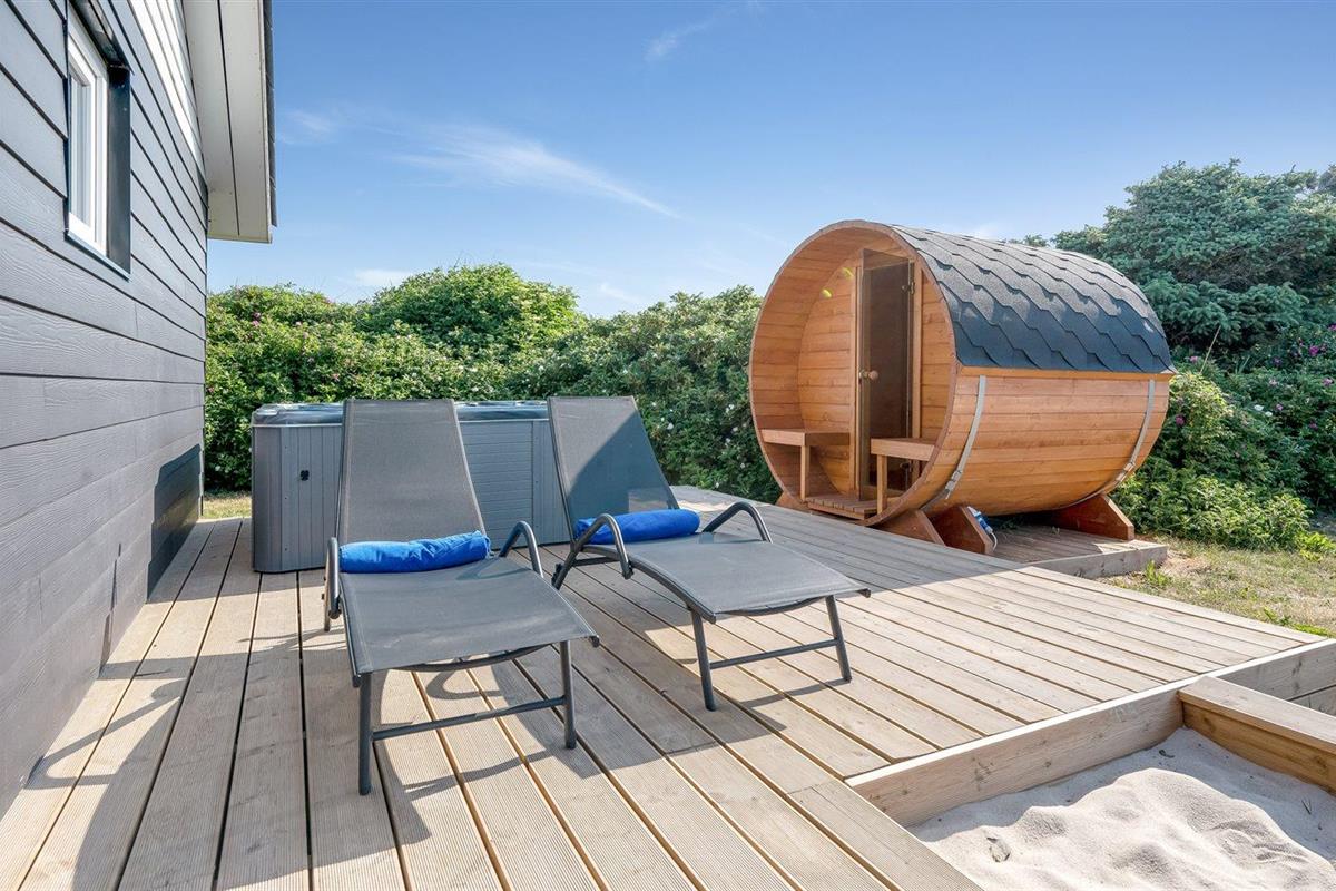 Ruim vakantiehuis nabij zee met sauna, bubbelbaden en groot terrein voor ontspanning.